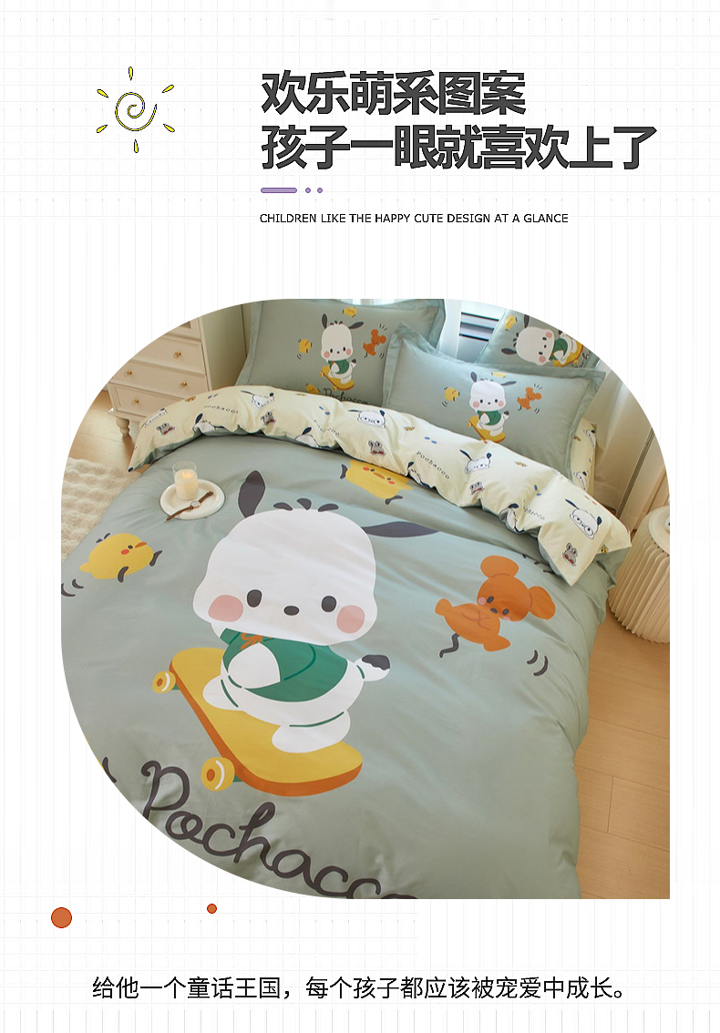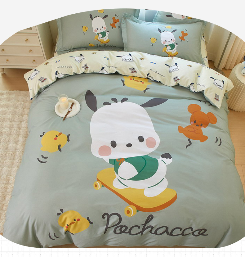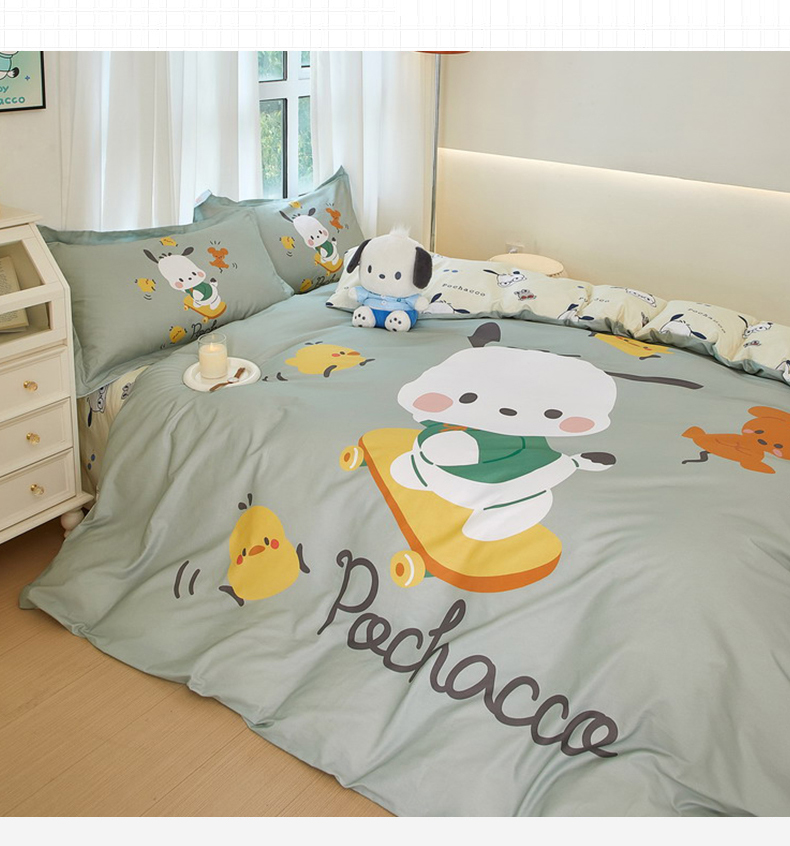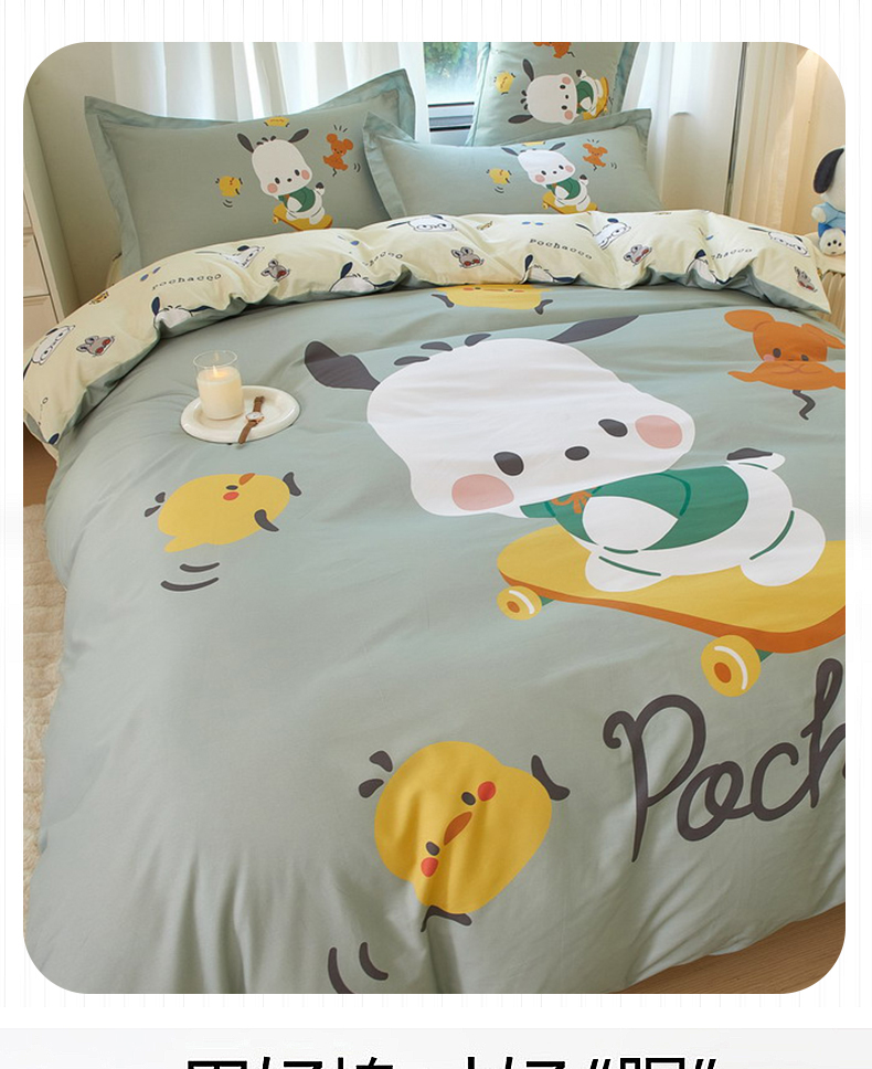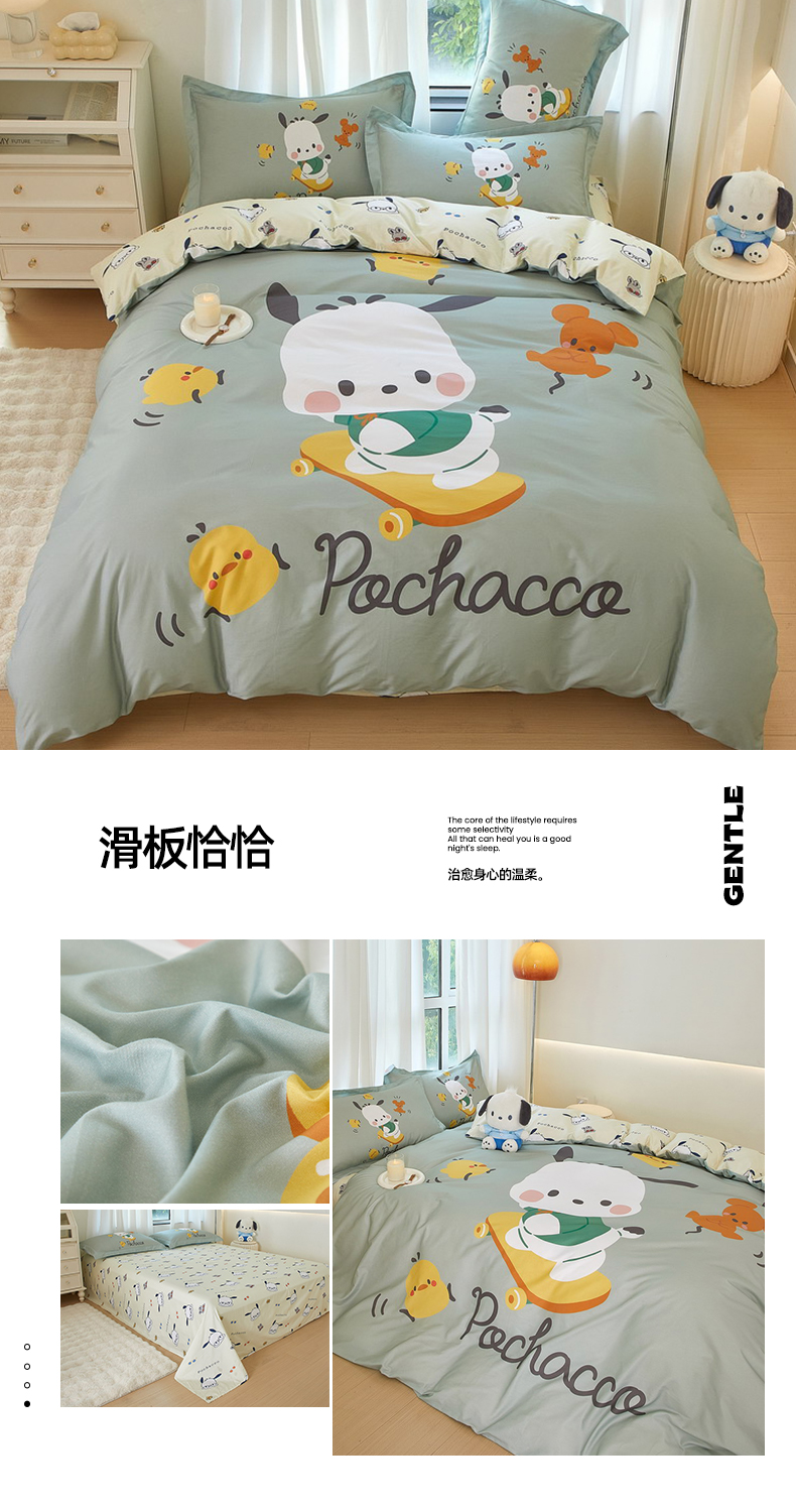 商品名称:蘭菲家纺 2024新款全棉大版卡通三丽鸥四件套 滑板恰恰