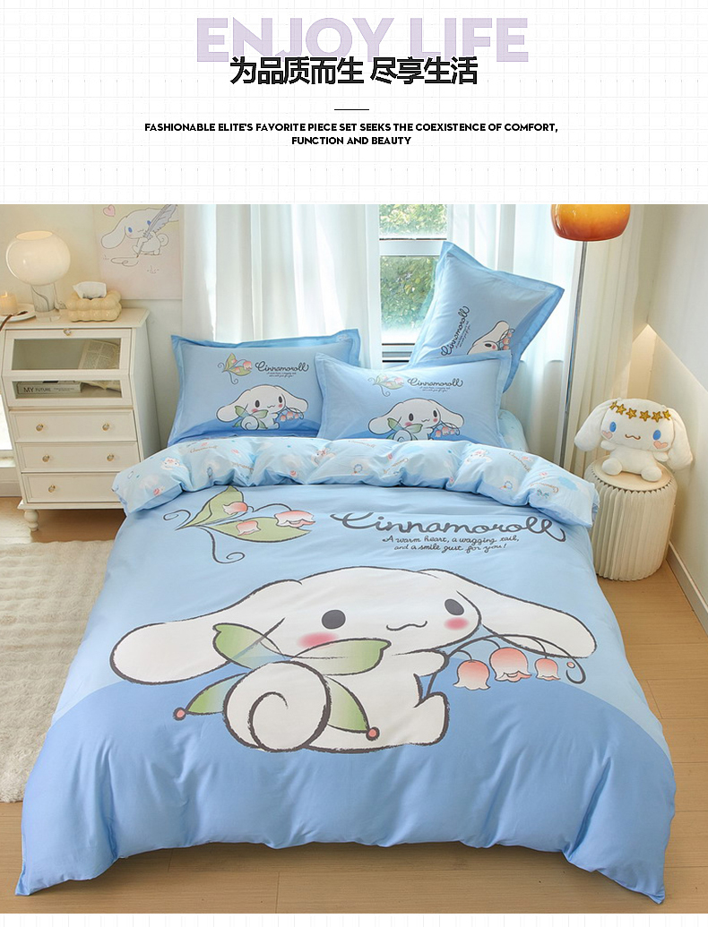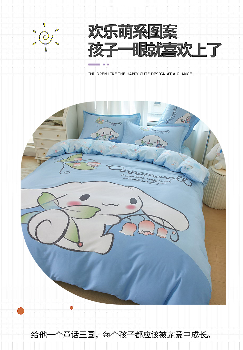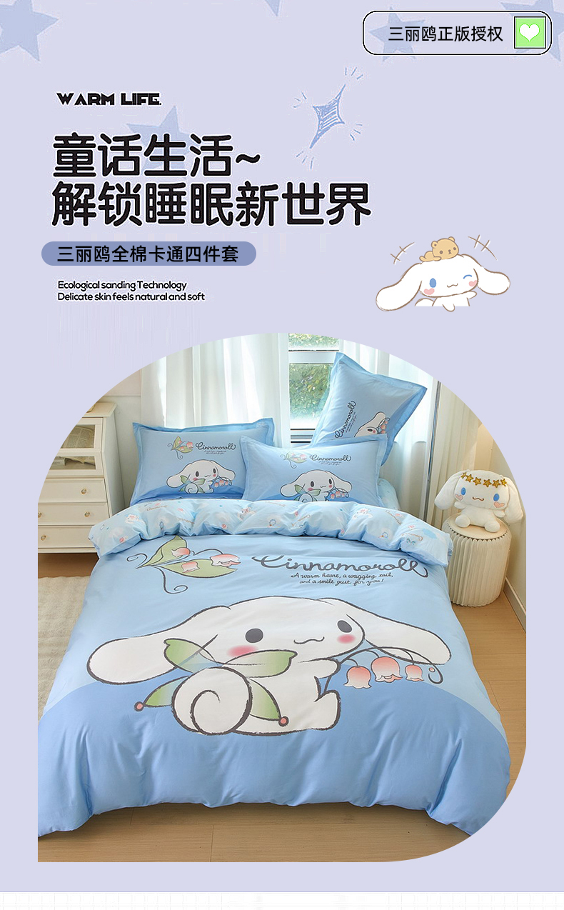 蘭菲家纺 2024新款全棉大版卡通三丽鸥四件套 清新