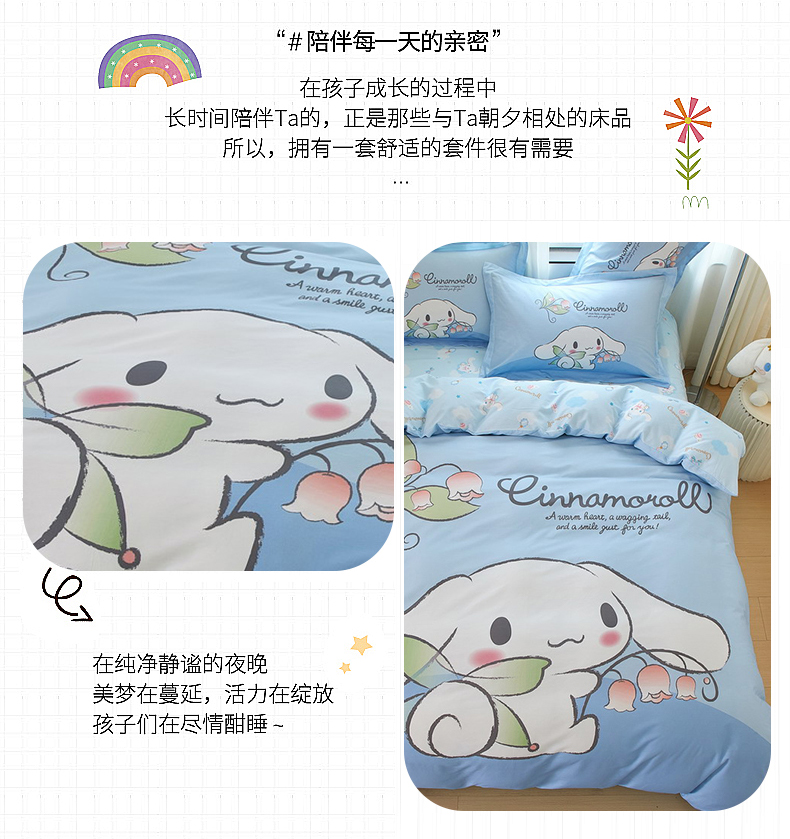 商品名称:蘭菲家纺 2024新款全棉大版卡通三丽鸥四件套 清新