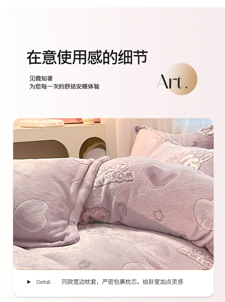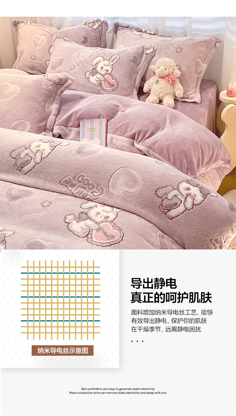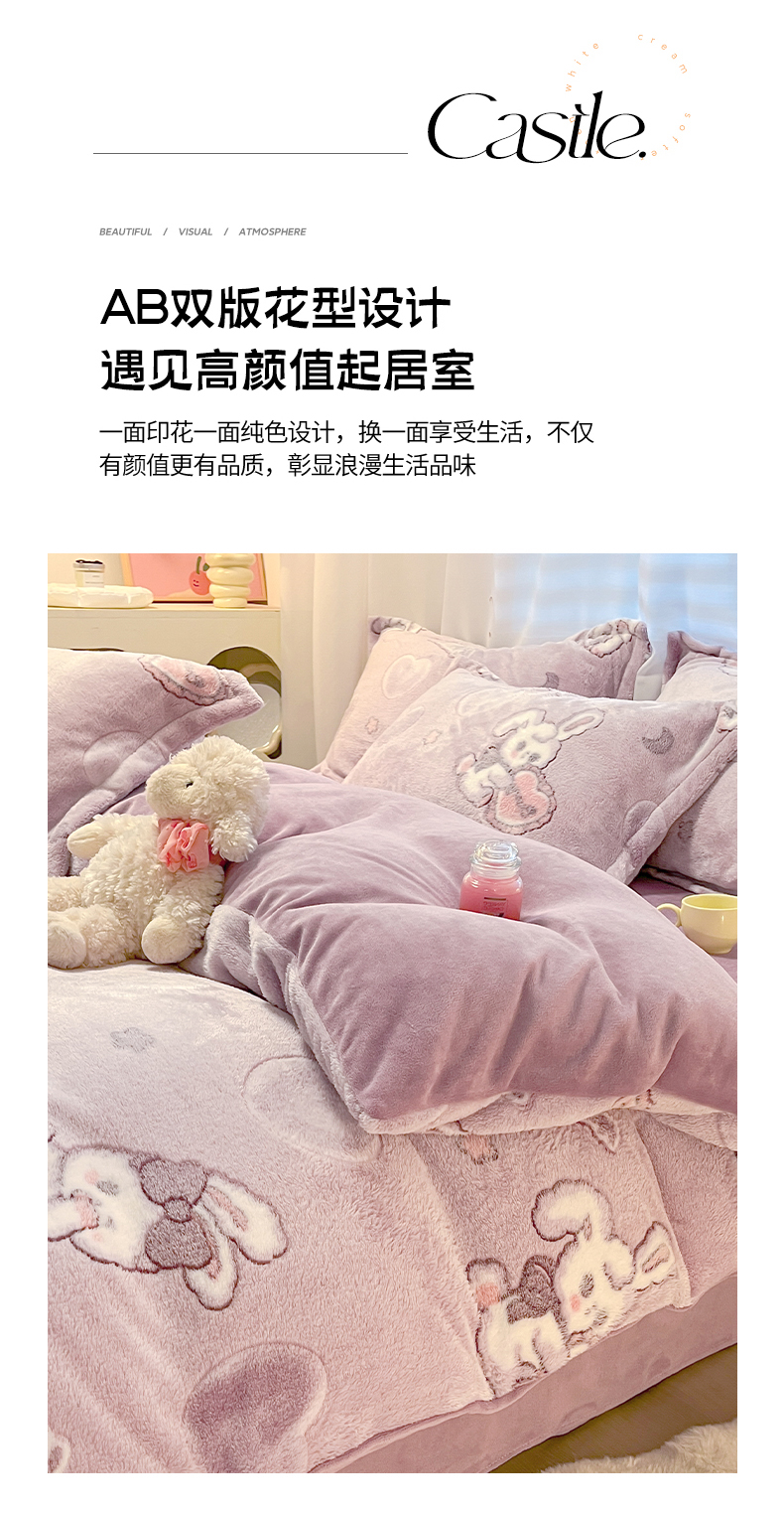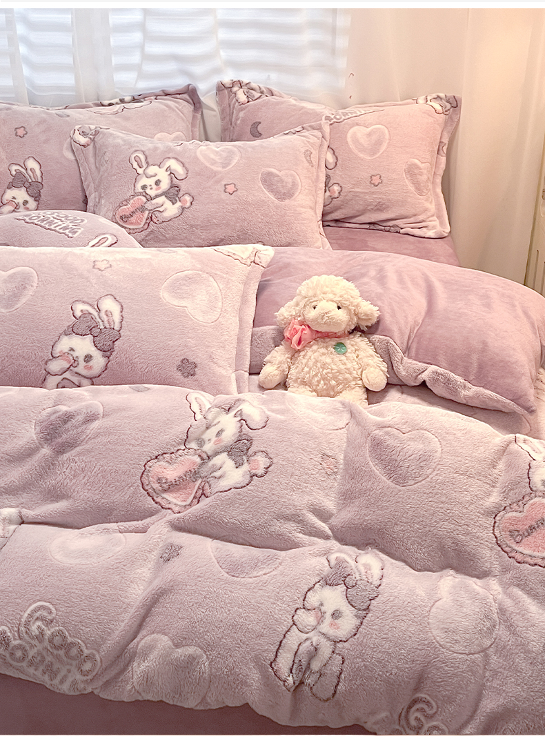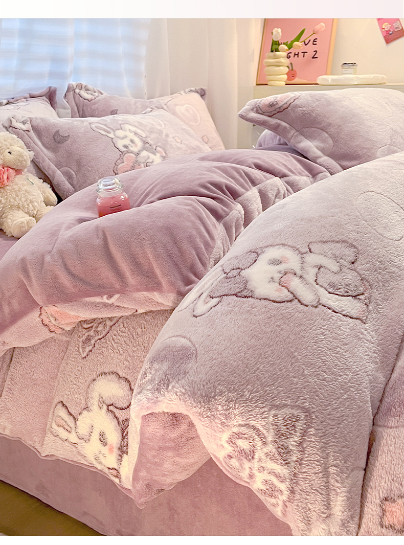 当前位置: 91家纺网 > 商品网购 > 床品套件 > 四件套 > 其它四件套 > 韩巢家纺 2024新款加厚雪花绒印花四件套-风格一(提供卖家秀) 爱心免(紫)