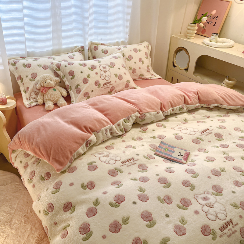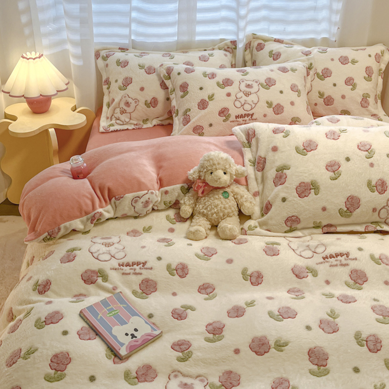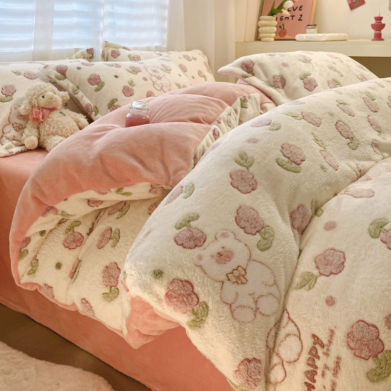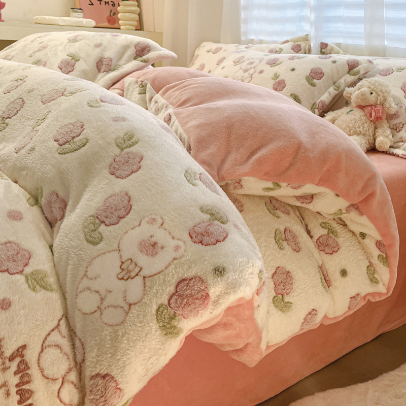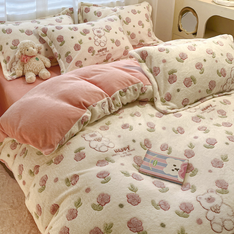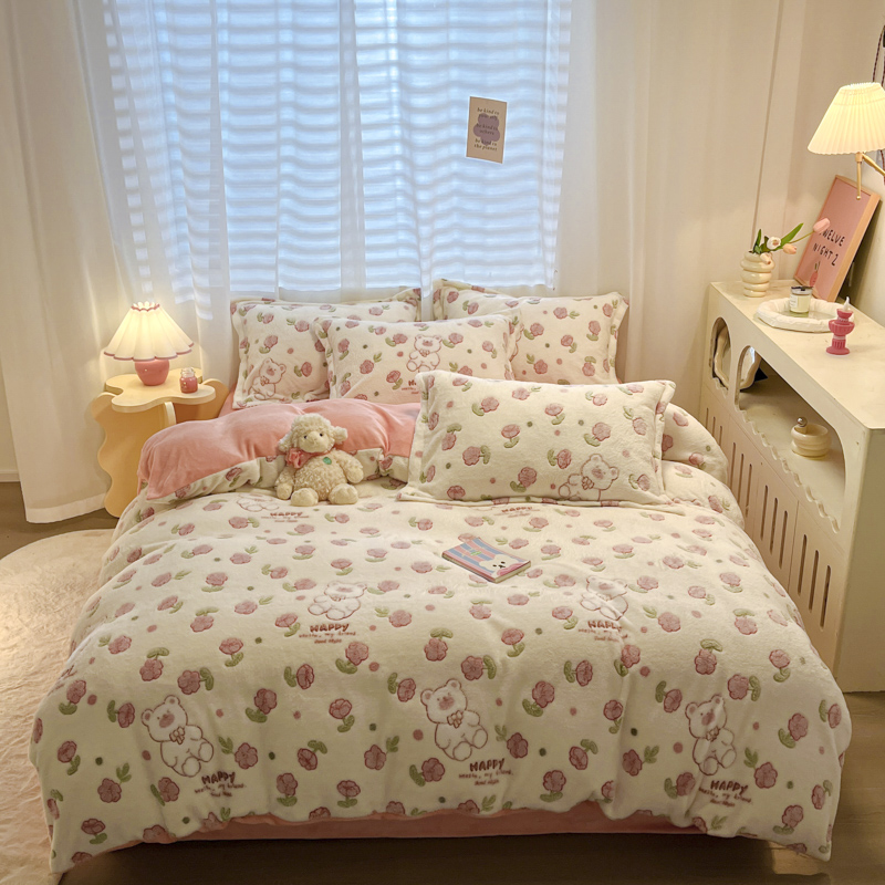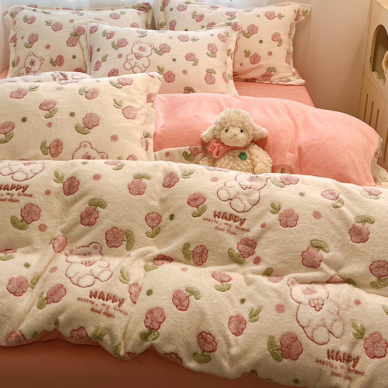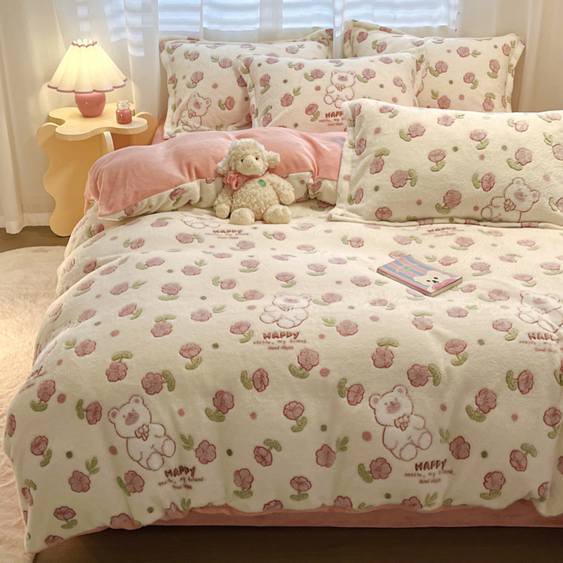(总)韩巢家纺 2025新款高克重雪花绒牛奶绒四件套系列,郁金香,爱心熊(绿),巴丽娜,大白鹅,大耳朵兔,蝶雅,花花世界,灰色轨迹,米菲,七彩,田园兔(黄),小怪兽,幸运兔,英伦熊