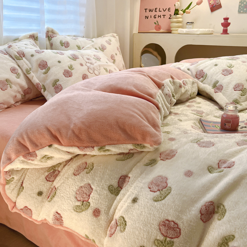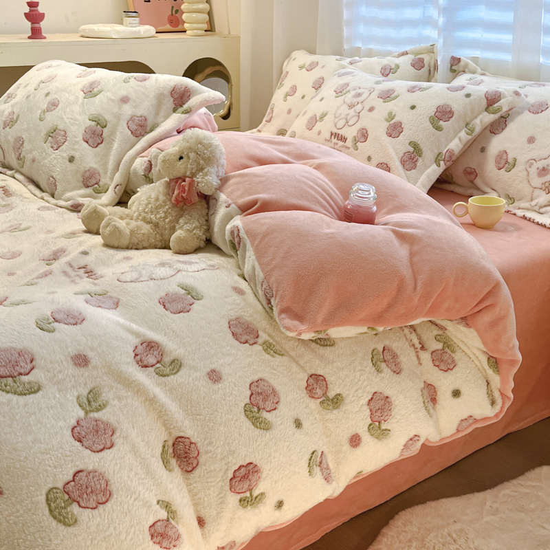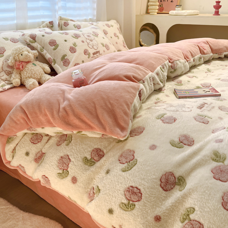 韩巢家纺 2024新款加厚雪花绒印花单件被套-风格一(提供卖家秀 ) 花花世界