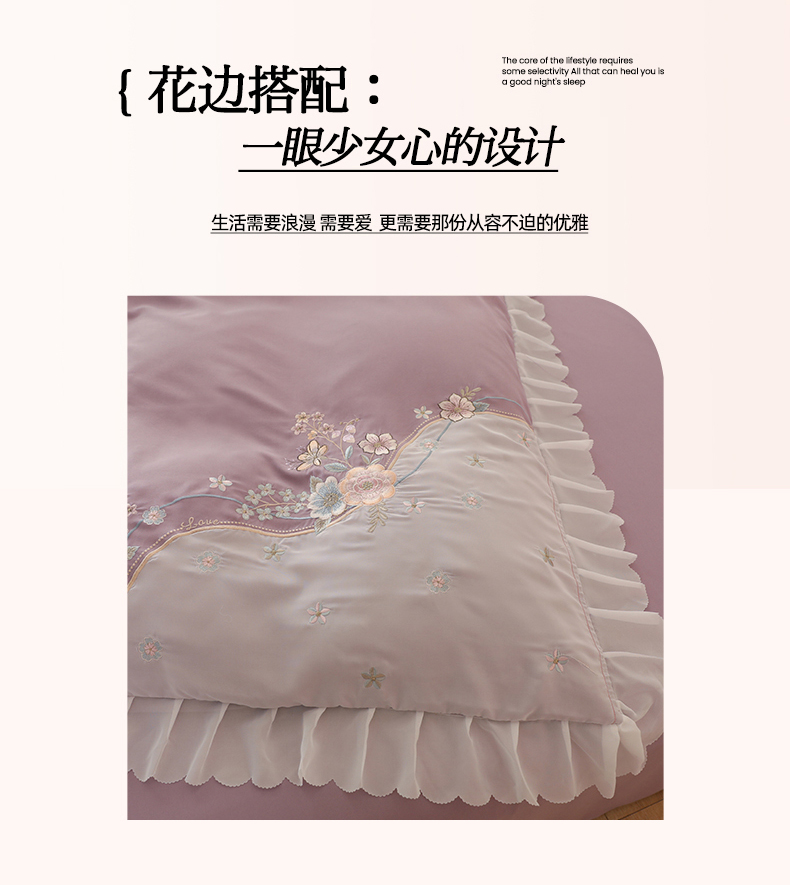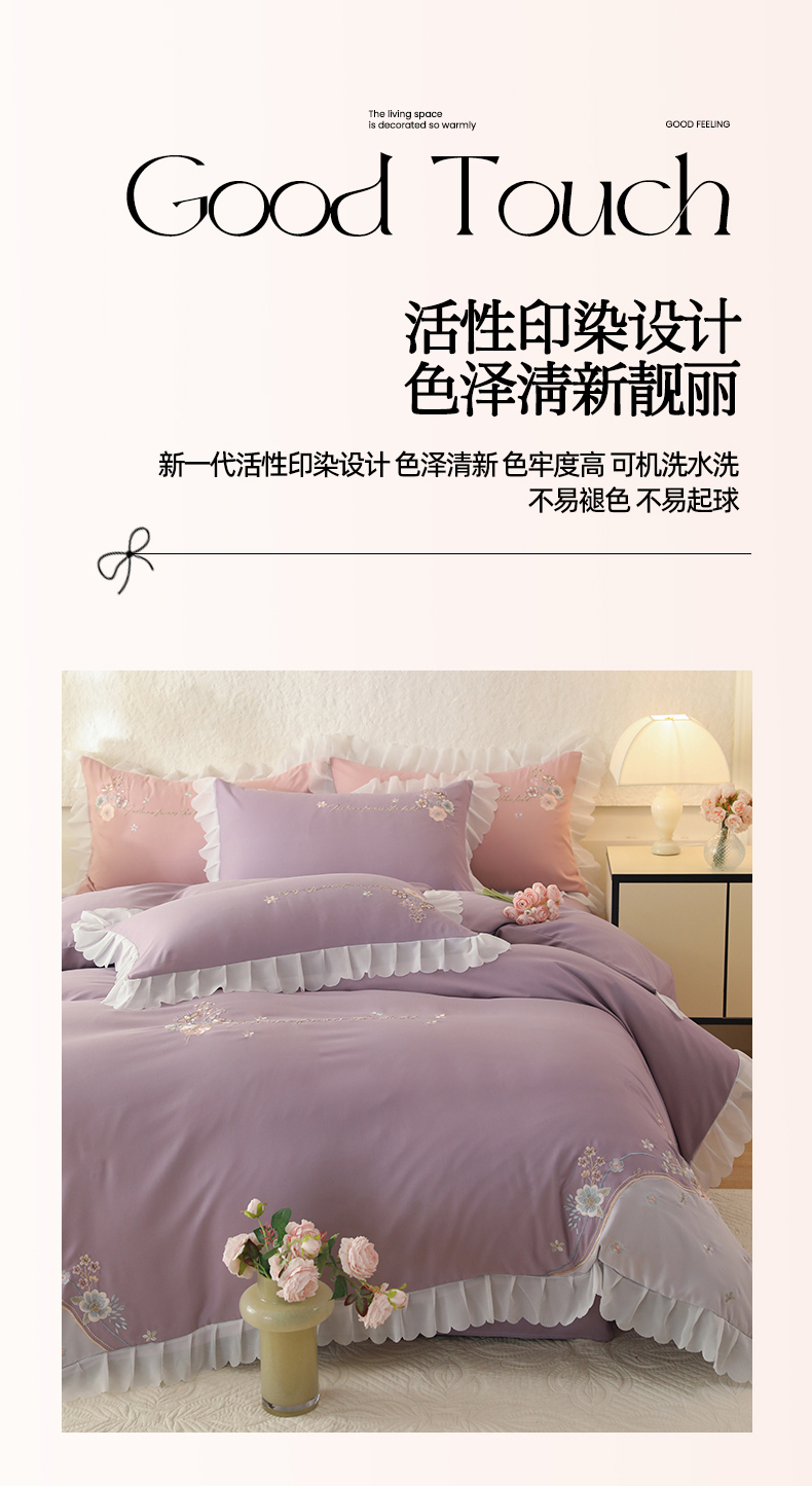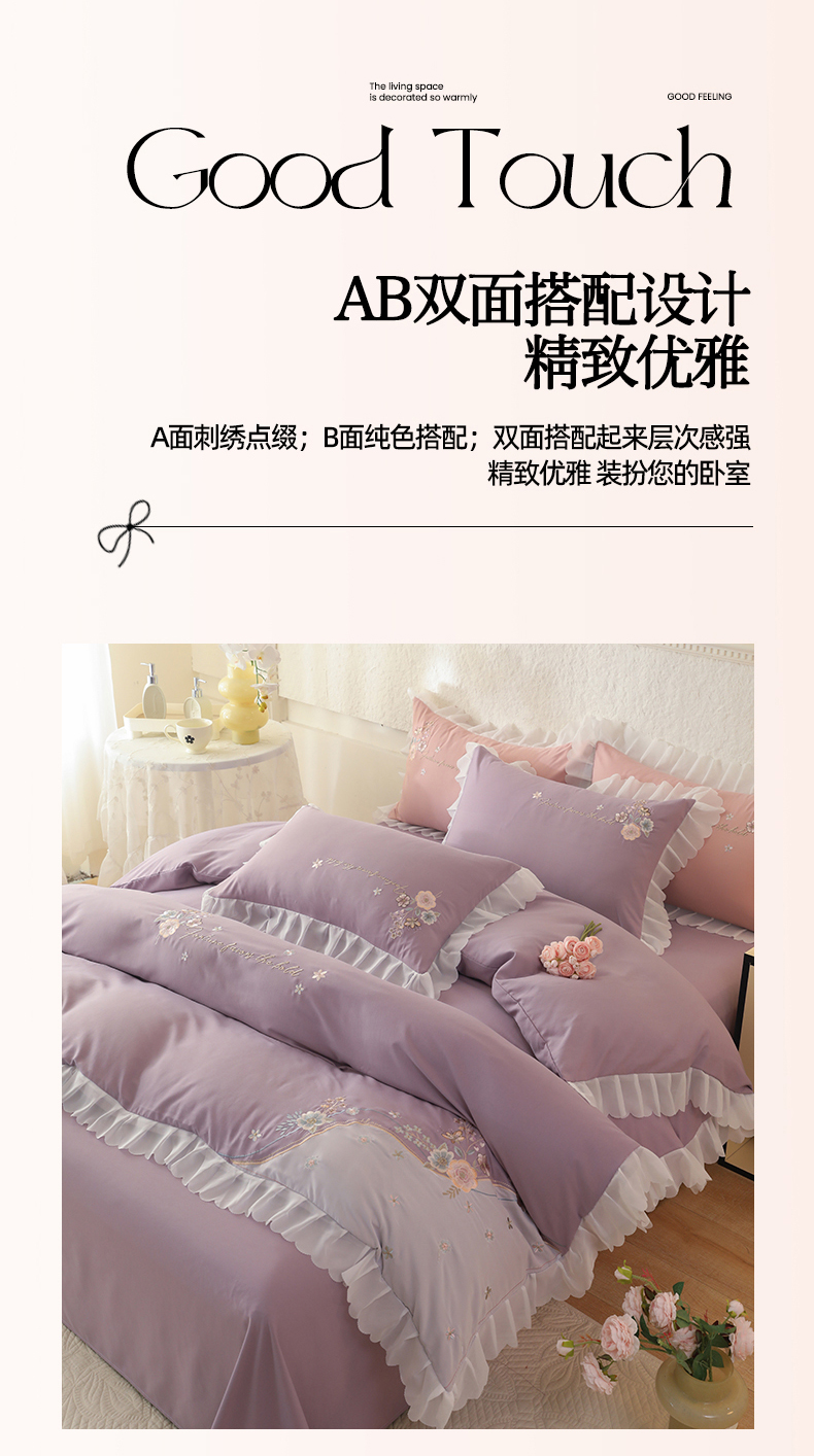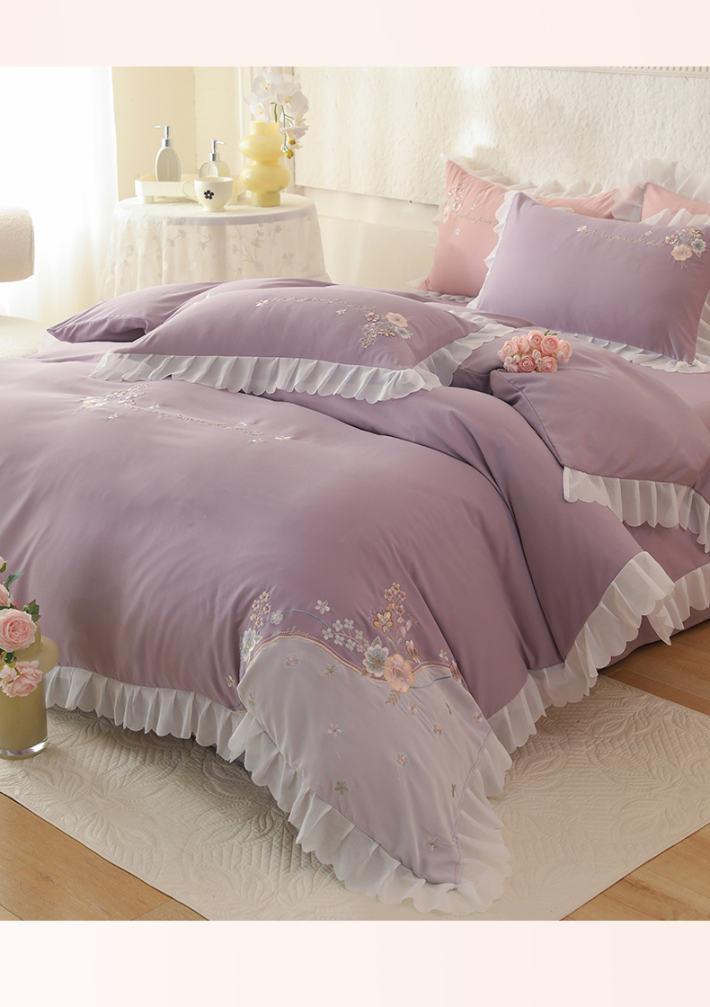艾米家居 2025新款秋冬加厚铂金磨毛刺绣花边四件套-花涧 花涧-香芋紫