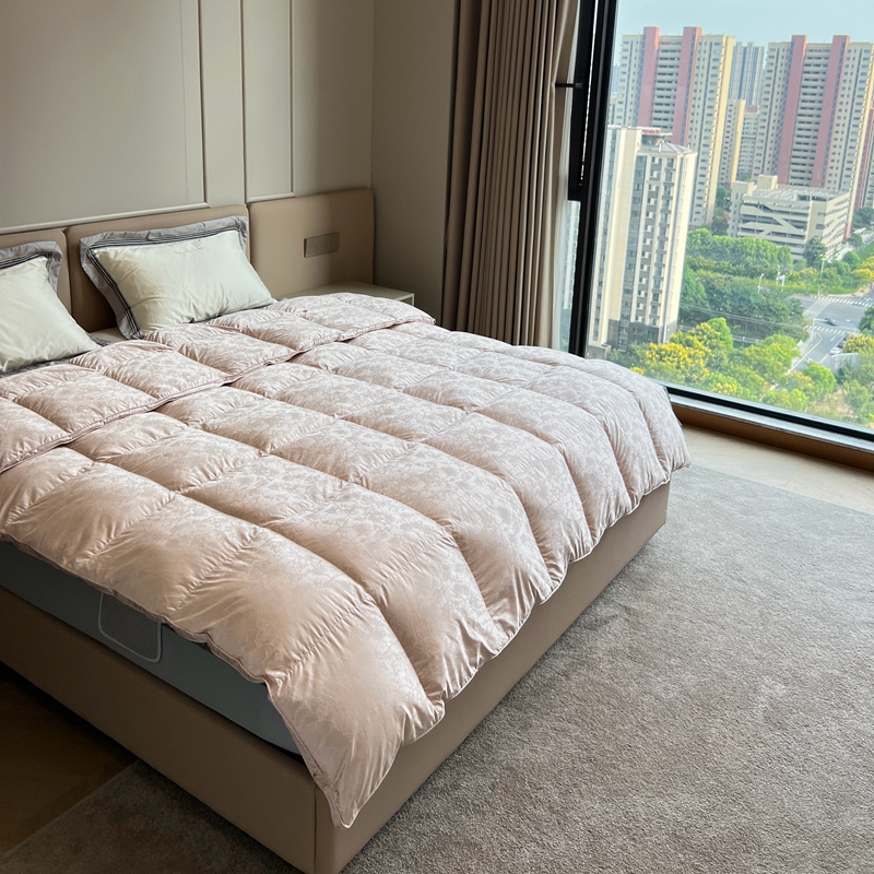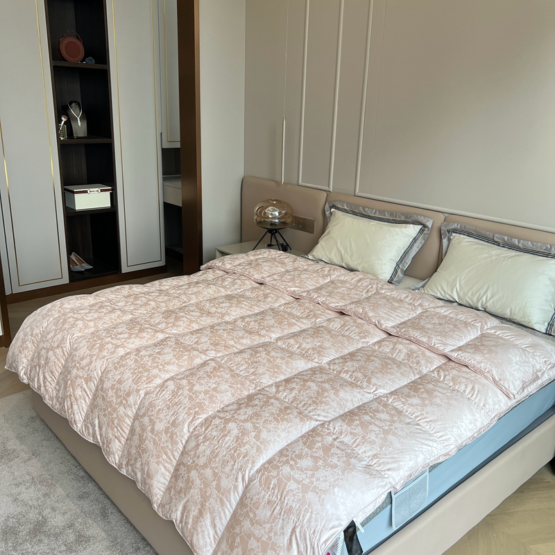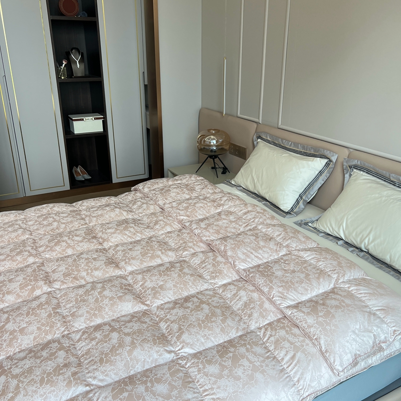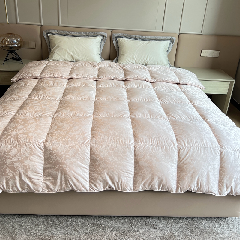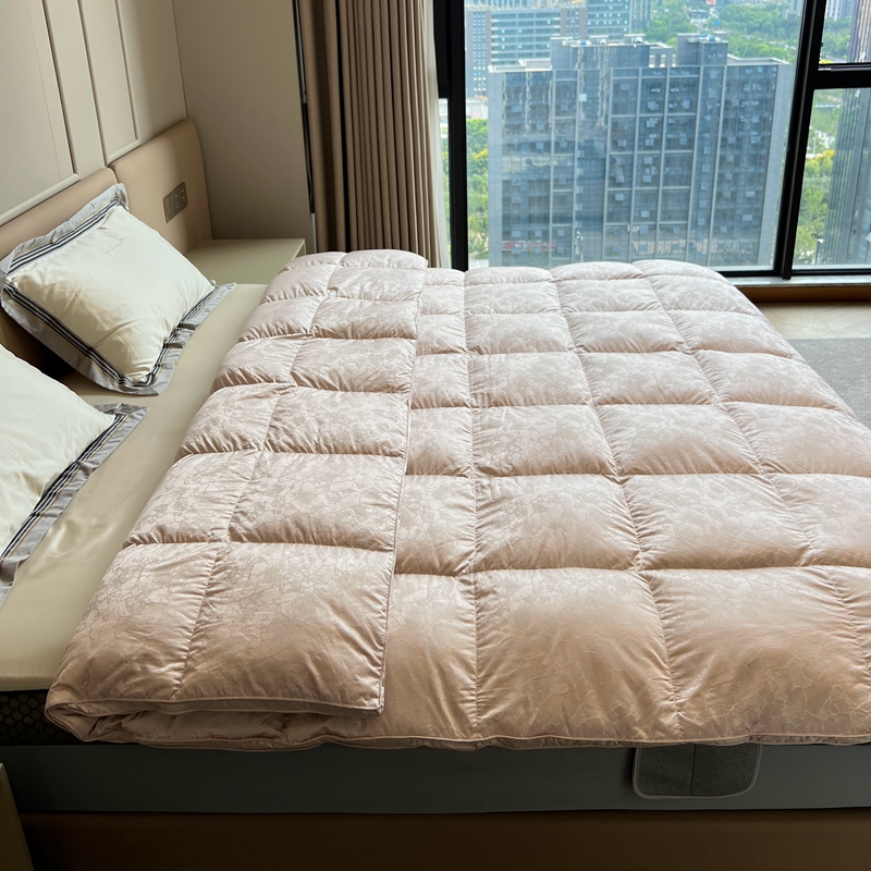(总)静若居 2025新款高端提花羽绒被鸭绒被贡缎提花单层羽绒被壳,飘颜粉,飘金色,飘高级灰
