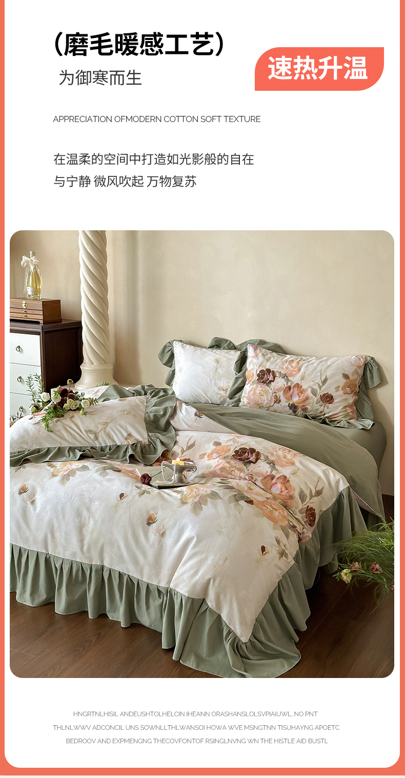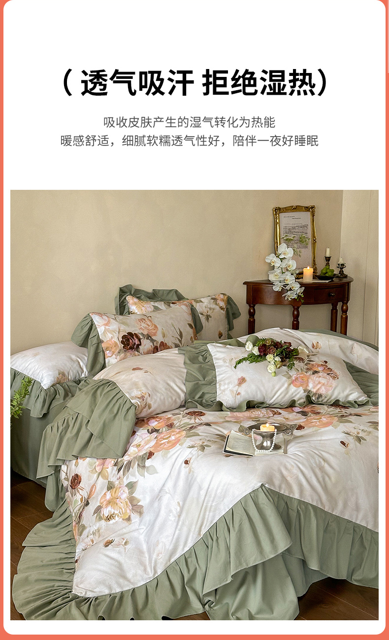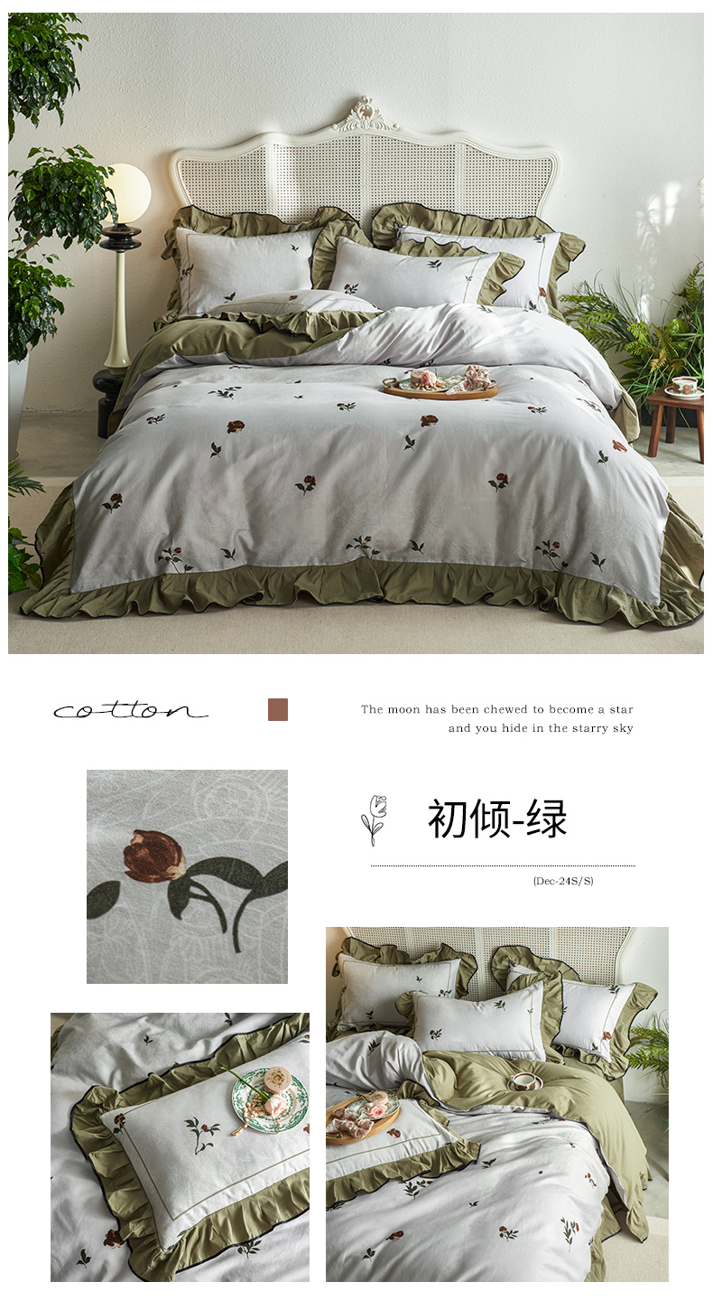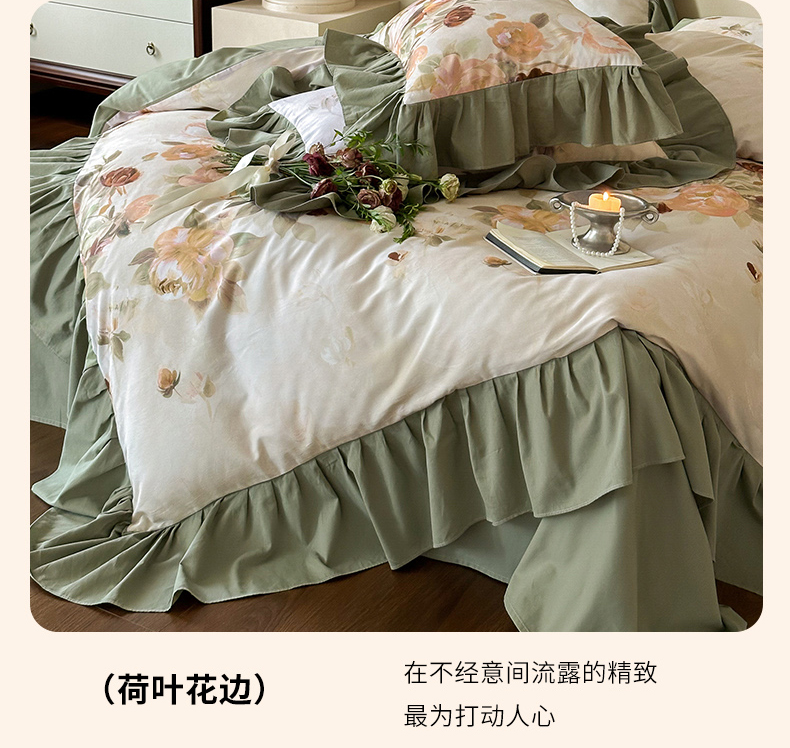 商品名称:宜代光年 2024新款法式花边全棉磨毛工艺款四件套 艾洛蒂-绿