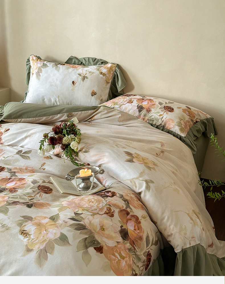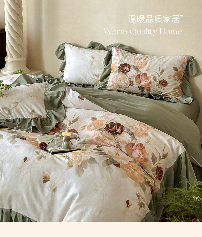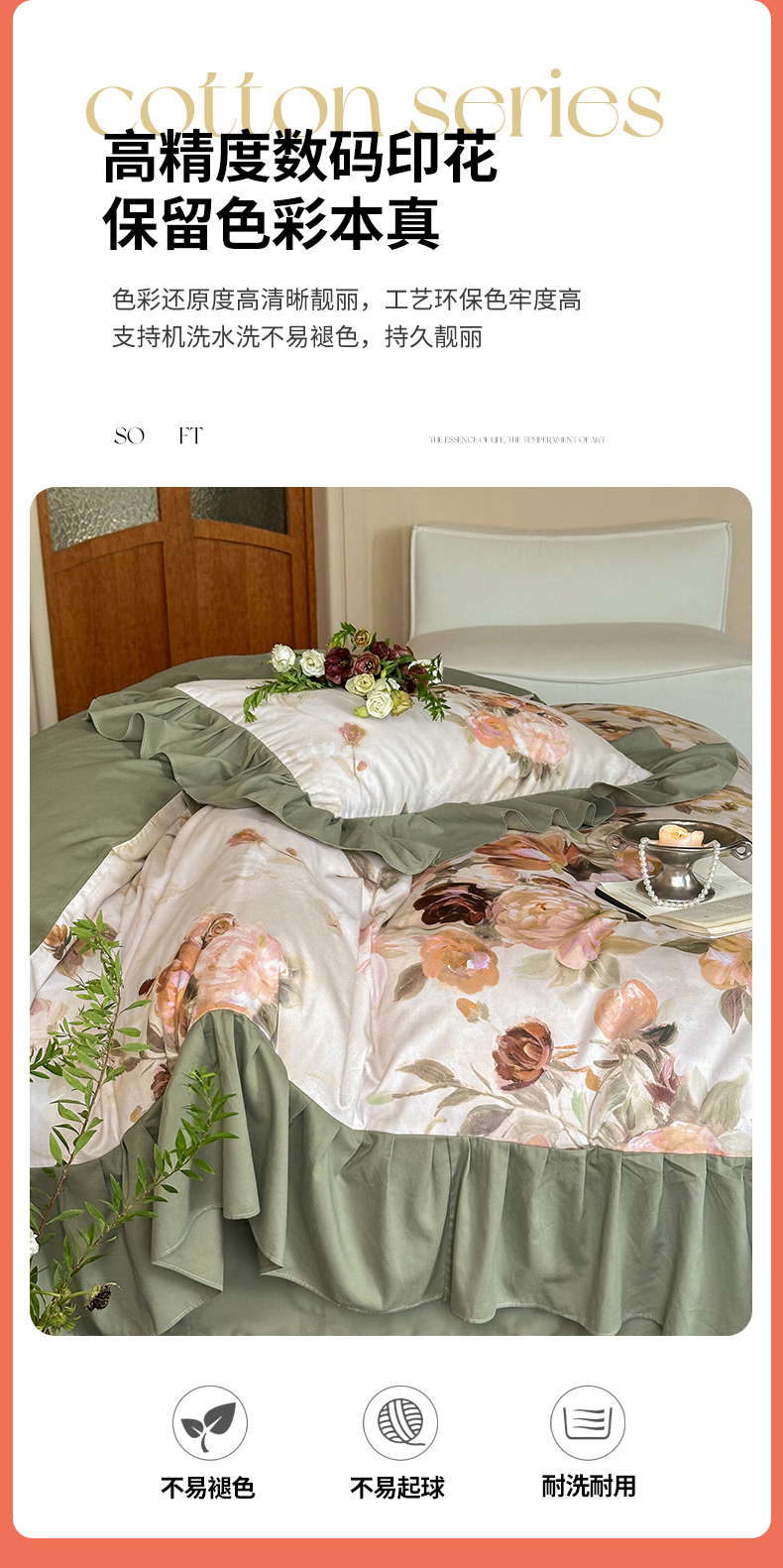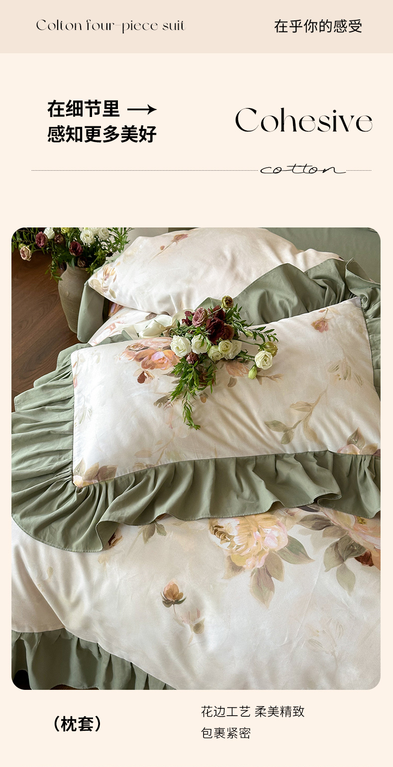 商品名称:宜代光年 2024新款法式花边全棉磨毛工艺款四件套 艾洛蒂-绿