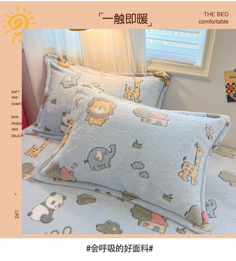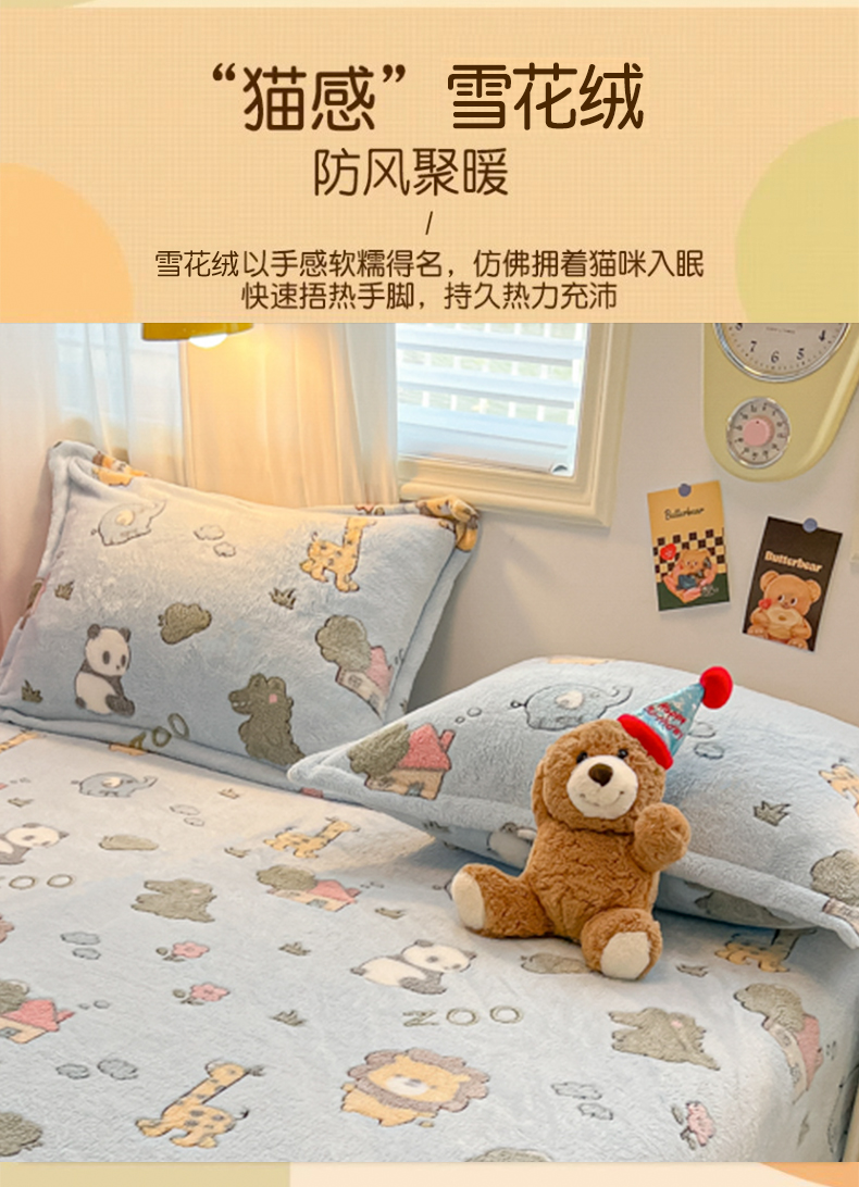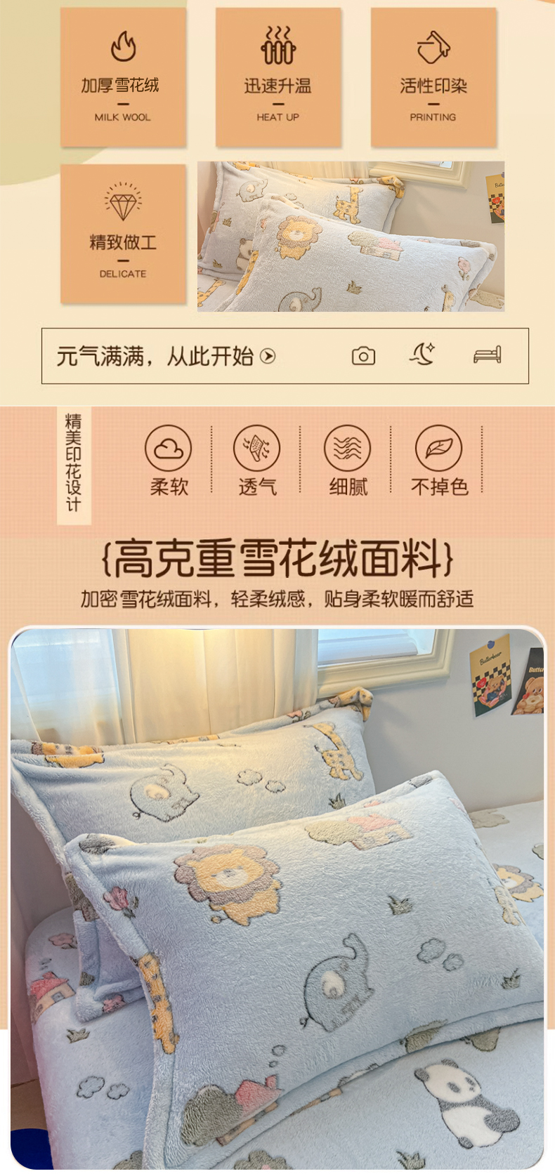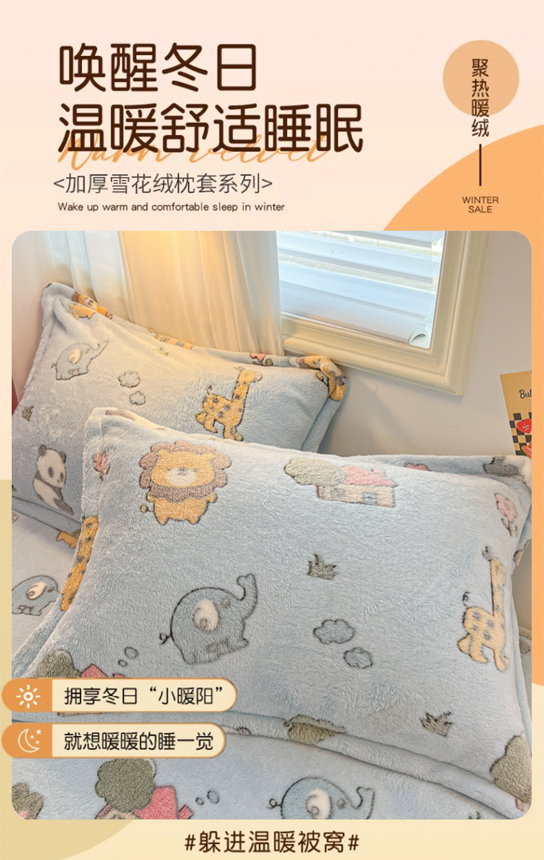 韩巢家纺 2024新款雪花绒枕套一对装 动物世界