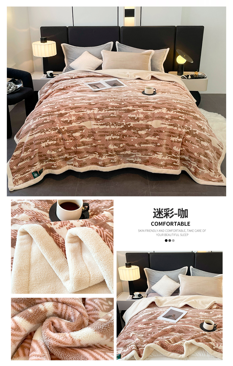 凯轩毛毛毯毯子网销专供 2024新款雪绒棉四季毛毯毯子盖毛毯毯子毛毯毯子子 迷彩-咖