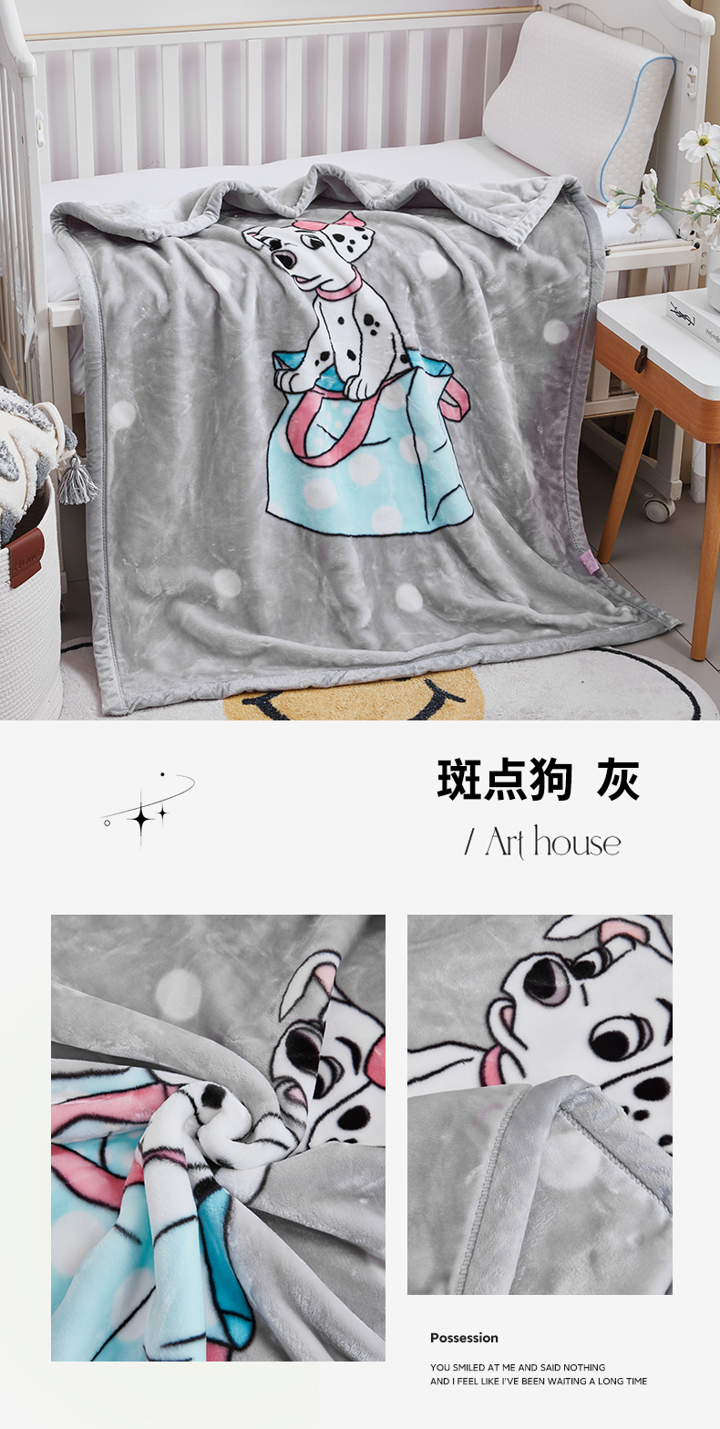 商品名称:凯轩毛毛毯毯子网销专供 2024新款加厚保暖儿童印花云毛毯毯子系列 斑点狗 灰