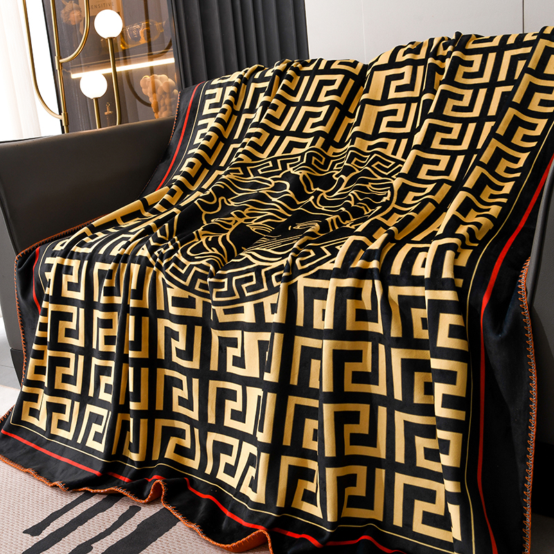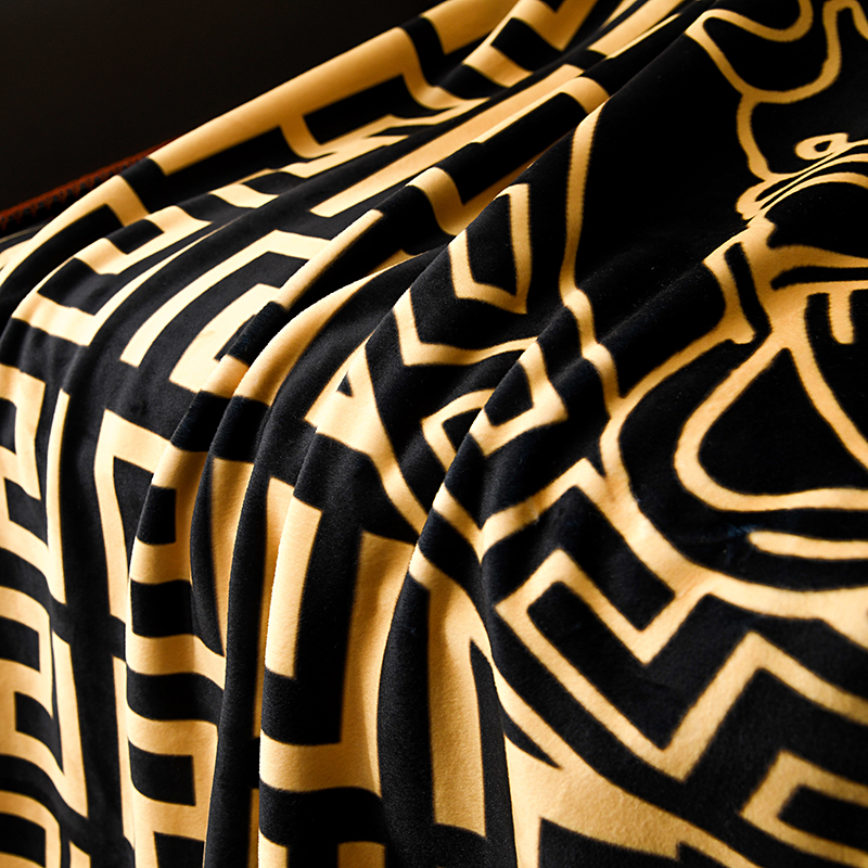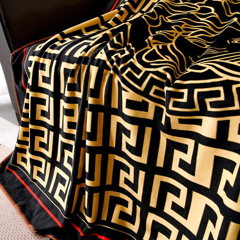 爵仕 2024高档锦狐绒毛毯复合毯奢华复古绒毯爱马风格 黑范思哲