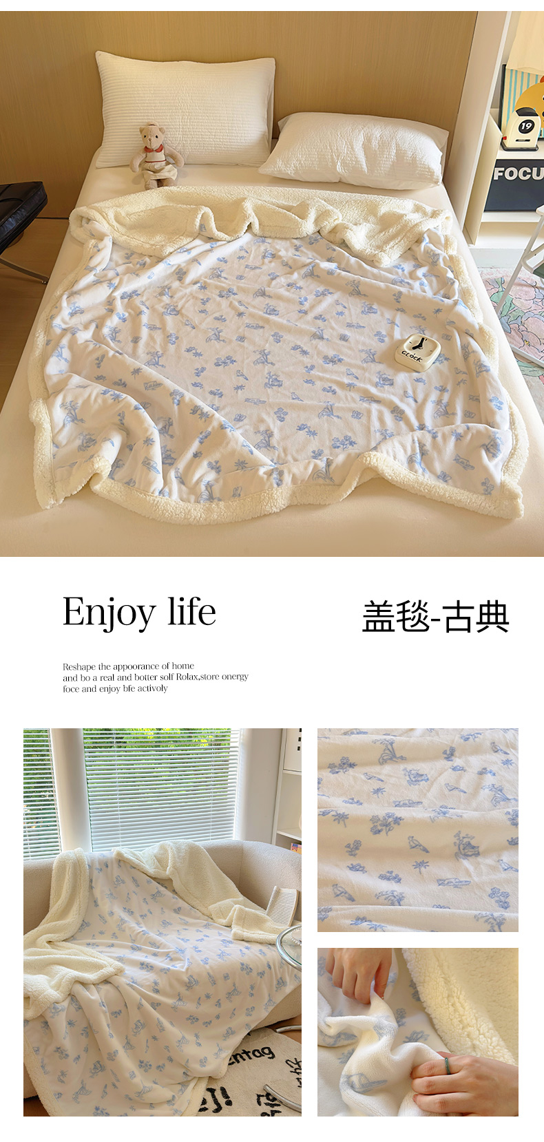 商品名称:山茶家纺 2024新款多功能羊羔绒双层大版牛奶绒盖毯 盖毯-古典
