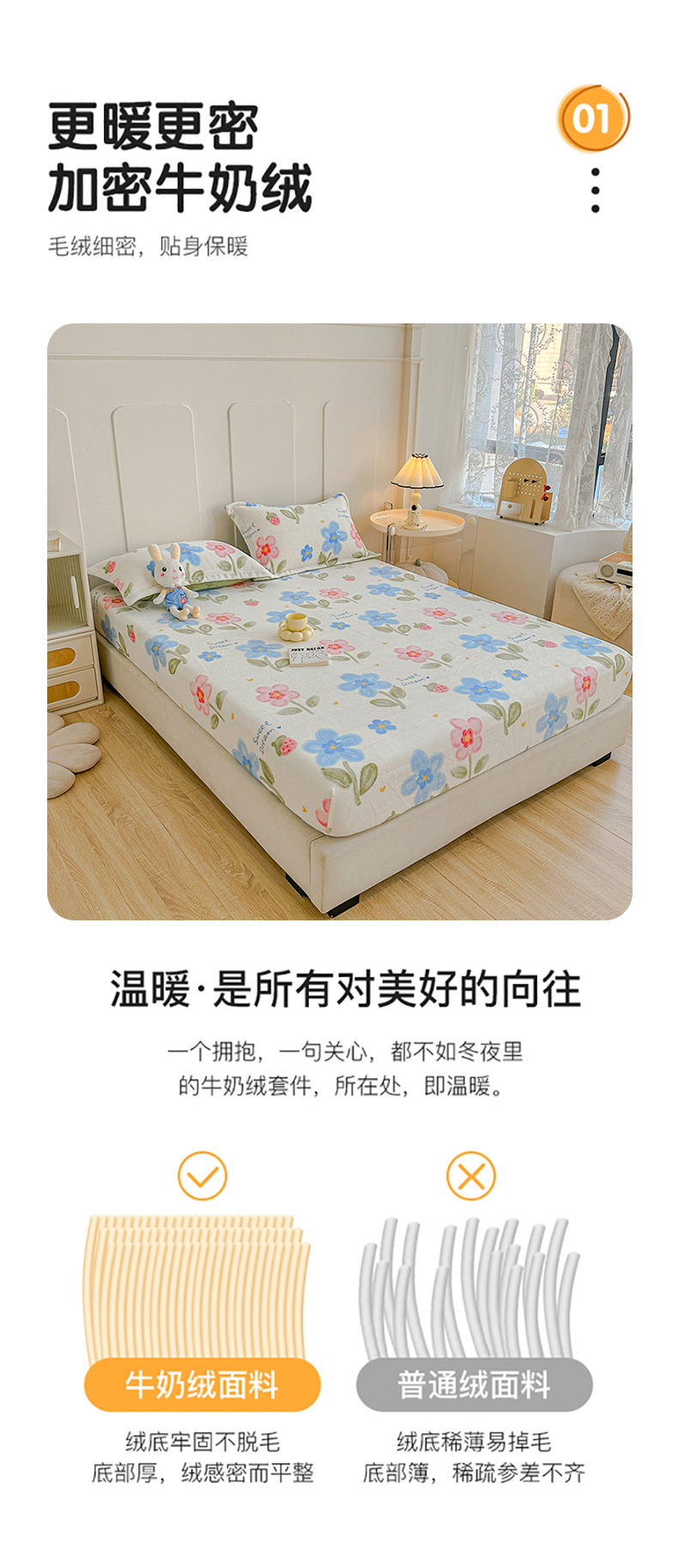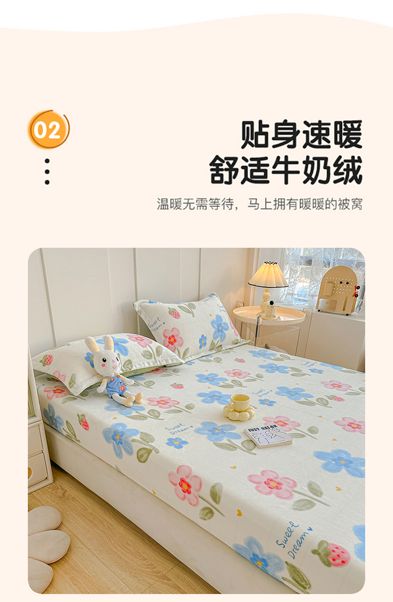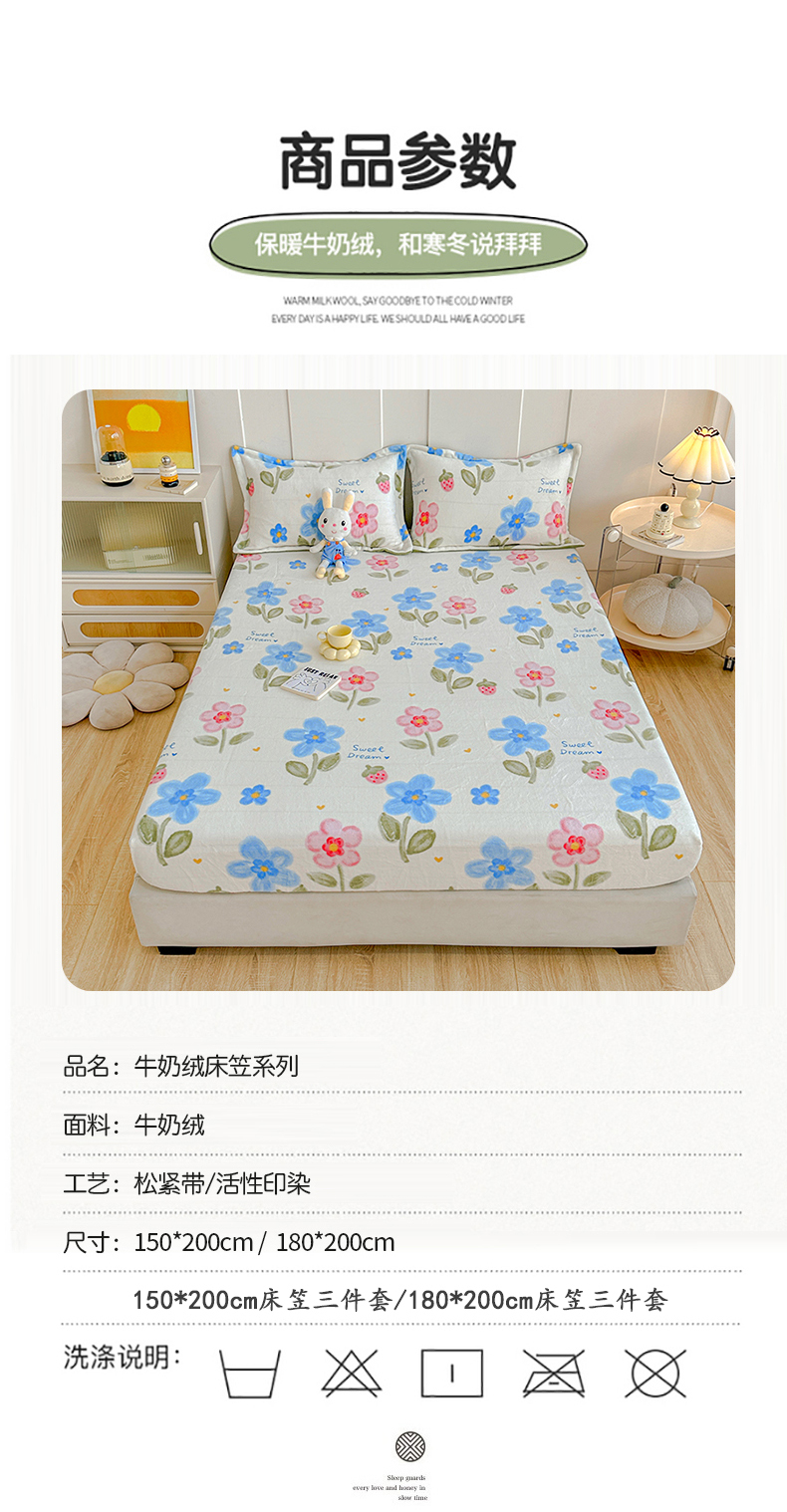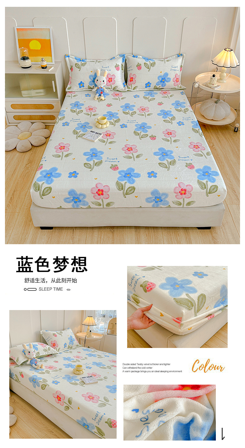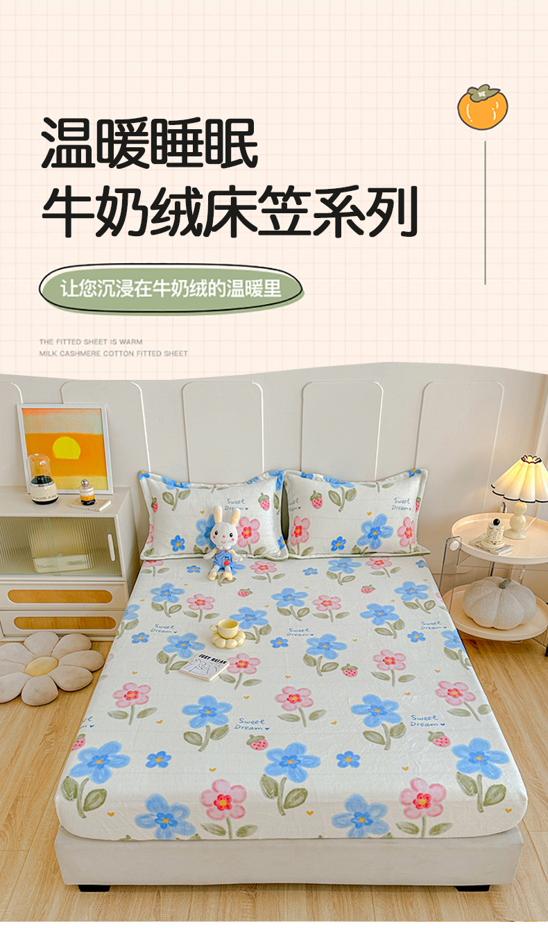 卡普二店 2024新款牛奶绒印花单床笠 蓝色梦想
