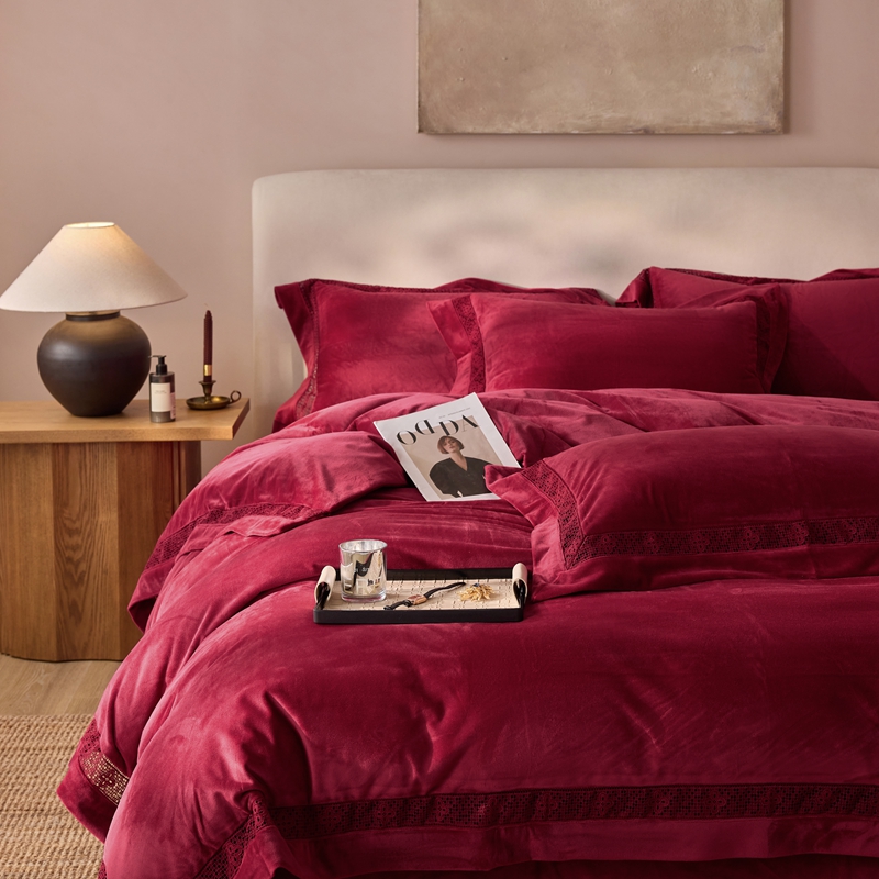 时亿家居 2024新款300g婴肤绒四件套-爵士系列 爵士 酒红