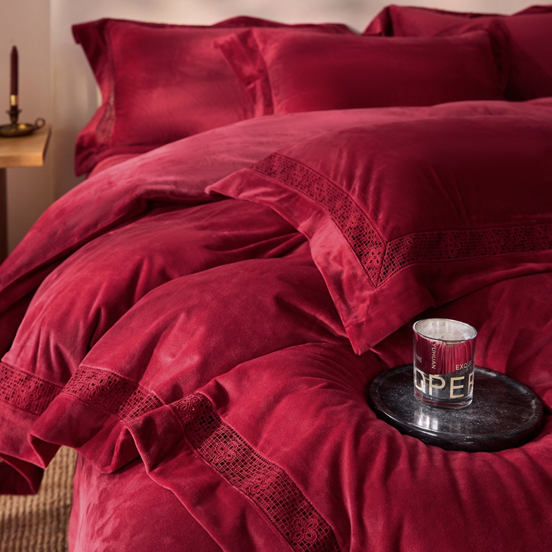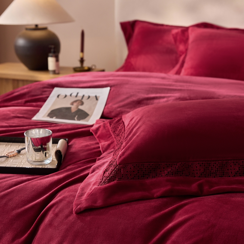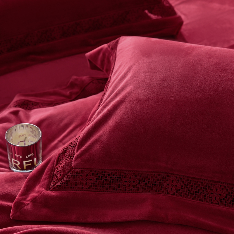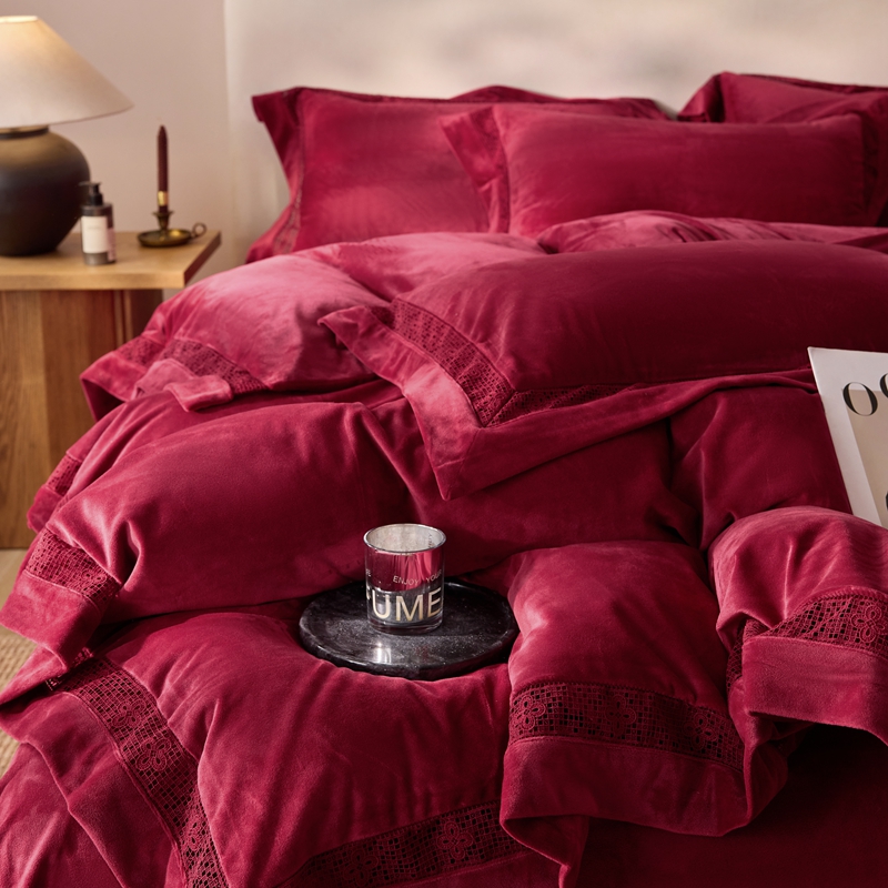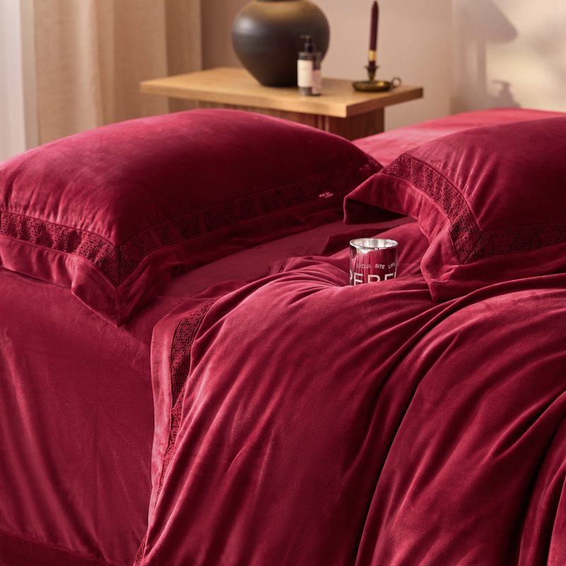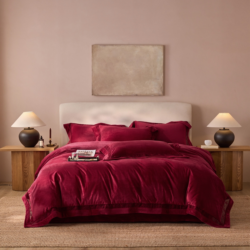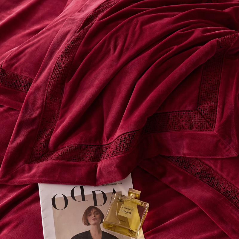商品名称:时亿家居 2024新款300g婴肤绒四件套-爵士系列 爵士 酒红