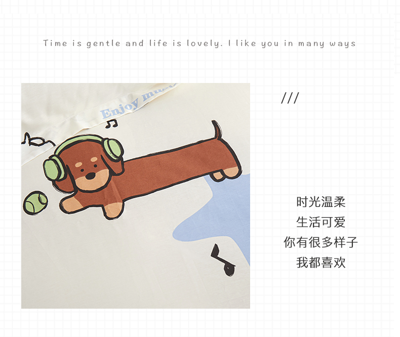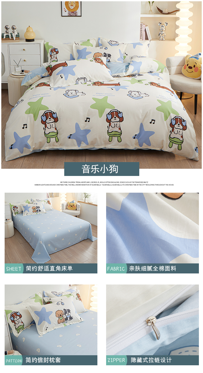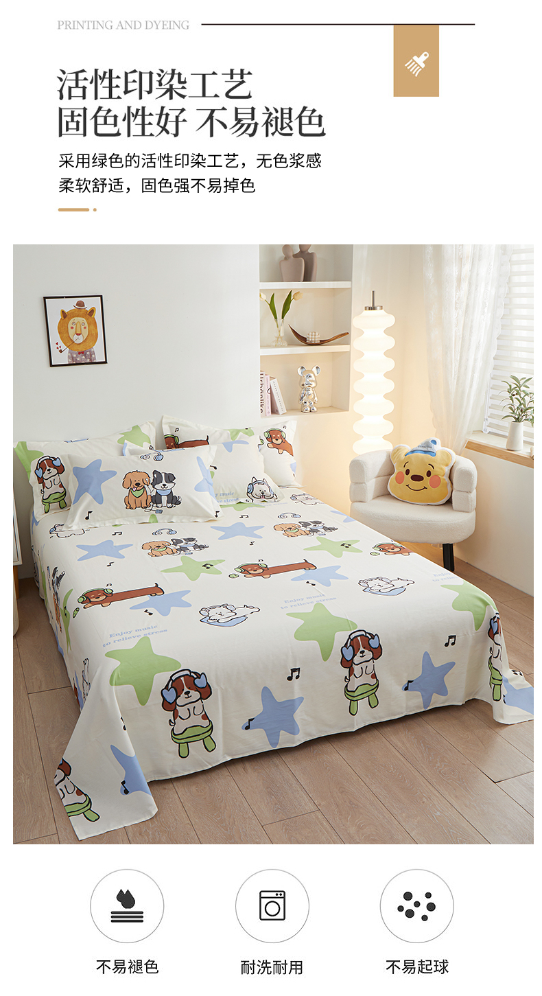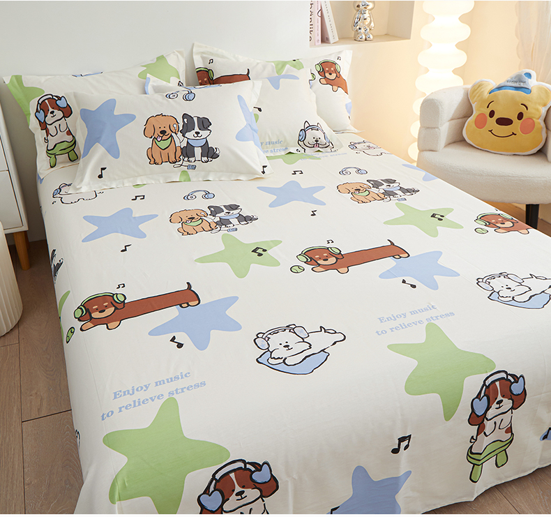 商品名称:钰伶 2025新款全棉简约12868纯棉单床单 音乐小狗A版