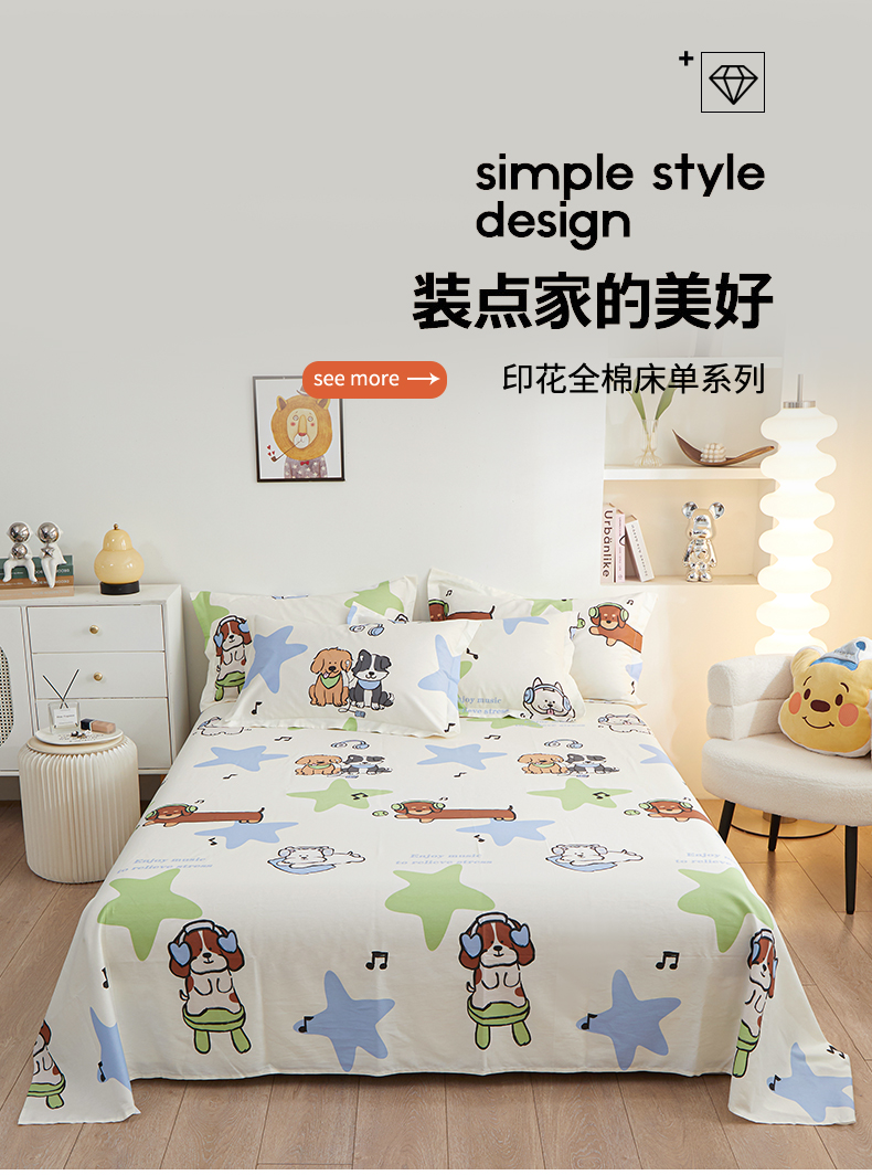 钰伶 2025新款全棉简约12868纯棉单床单 音乐小狗A版