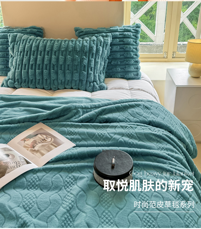 商品名称:(总)尚品绵羊毛毯 2025新款轻奢高档仿皮草婚庆盖毯双层加厚毛毯-奢想空间