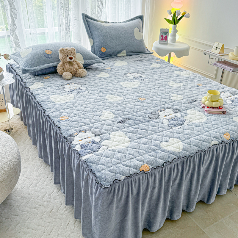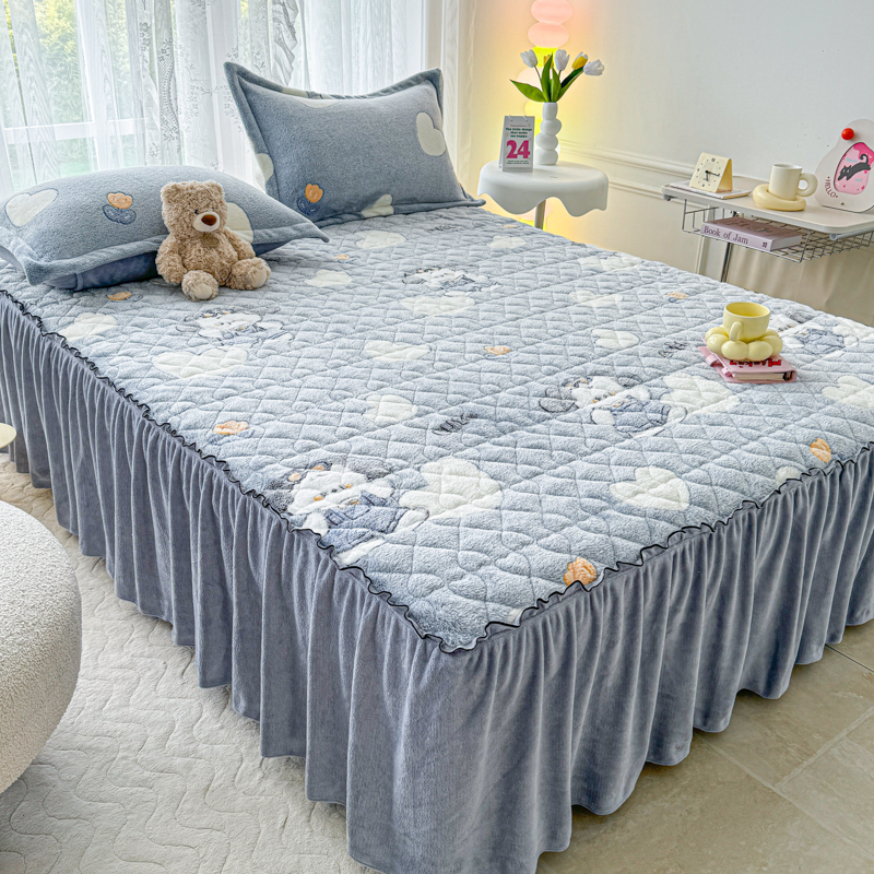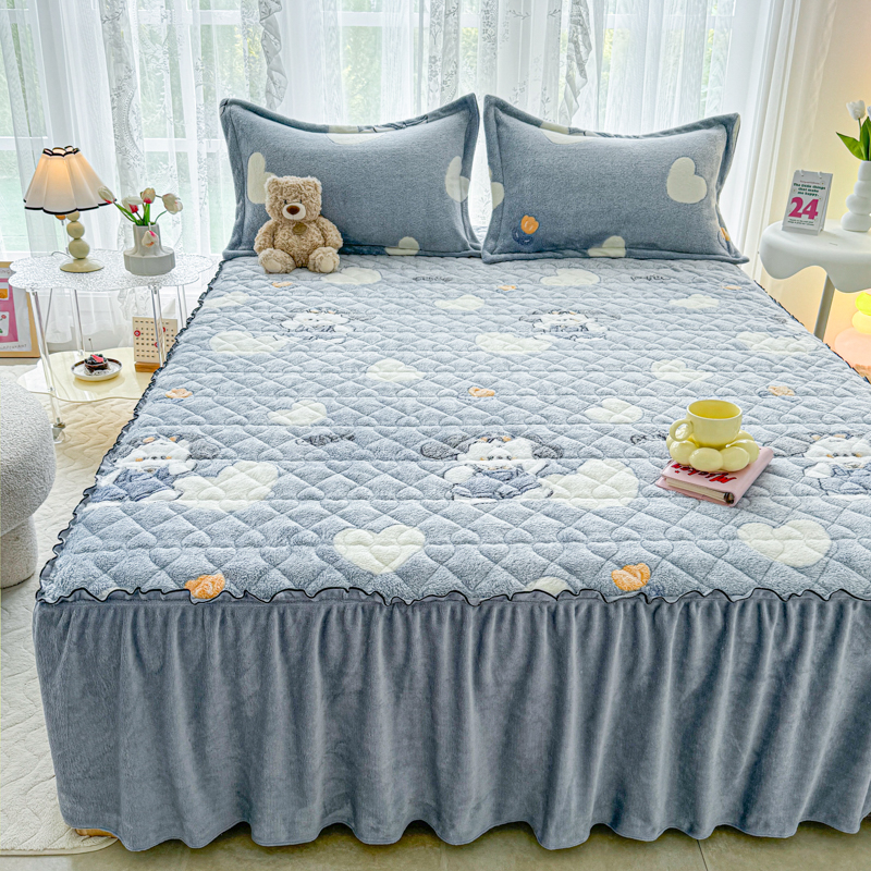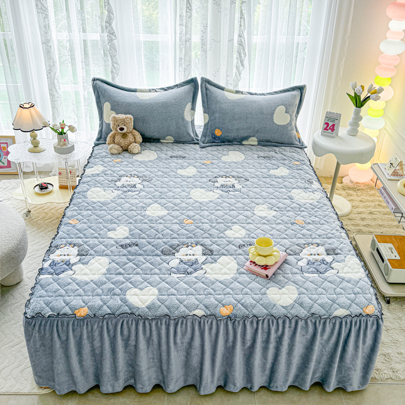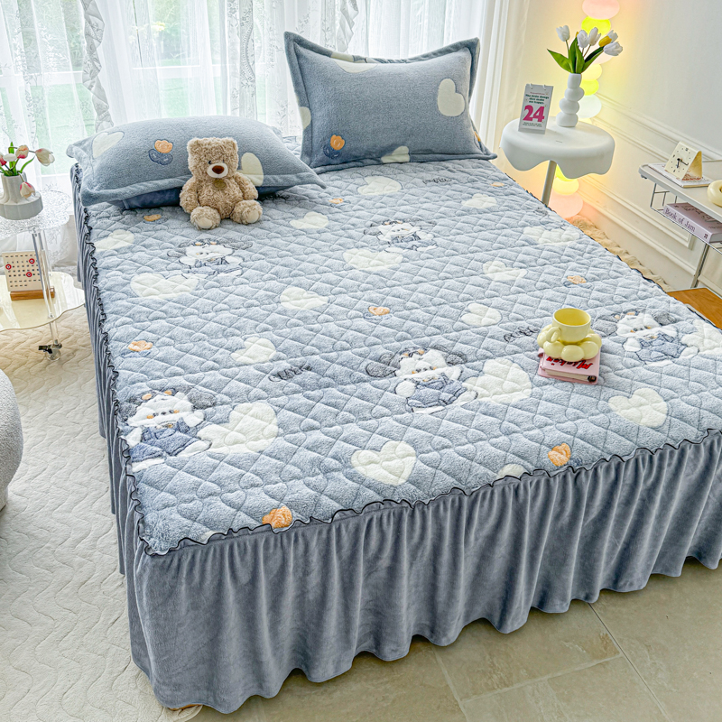商品名称:恋佳居 2025新款雪花绒夹棉绗缝床裙 爱心小狗