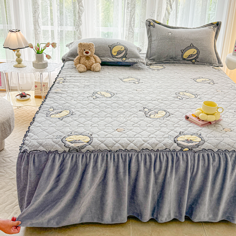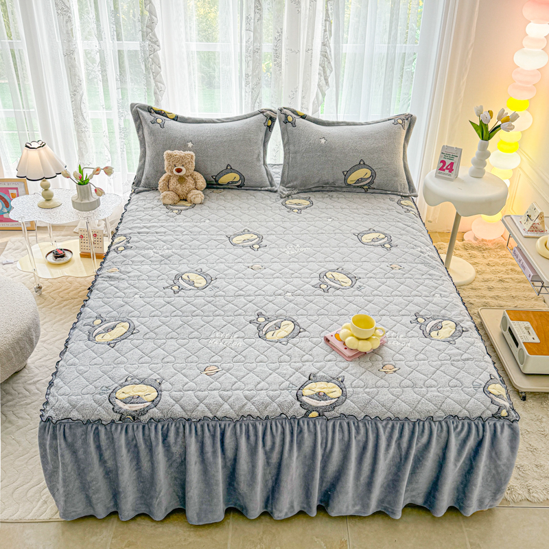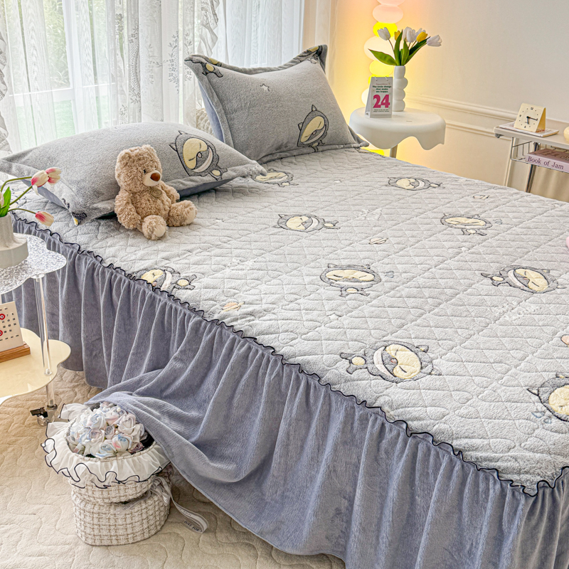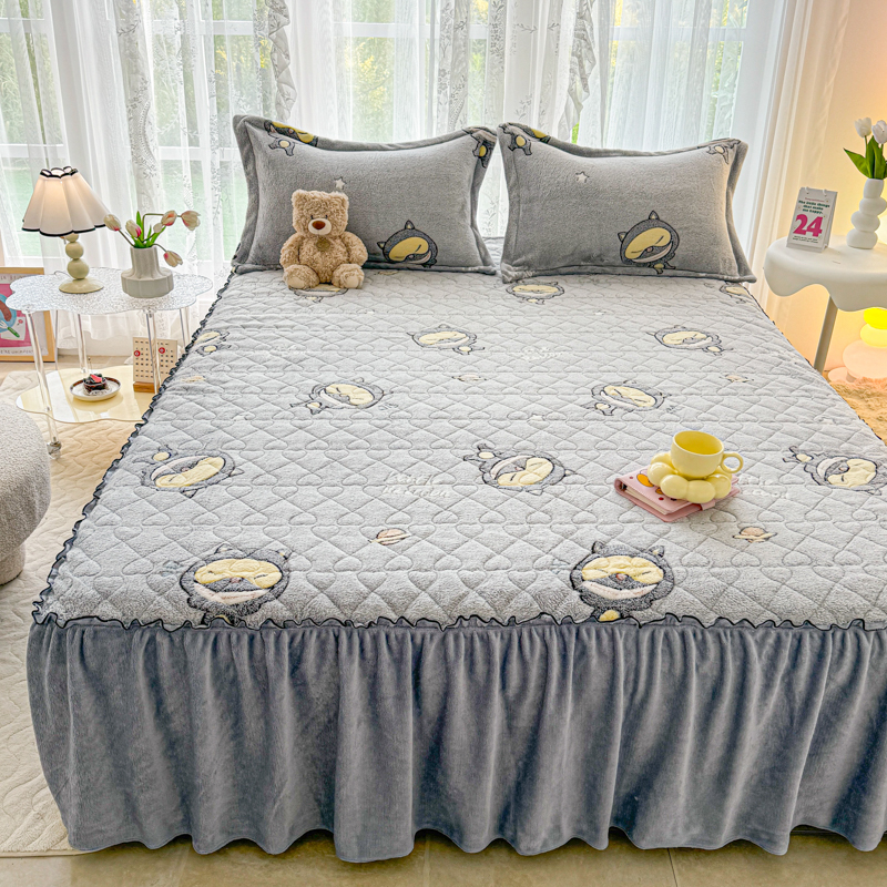 恋佳居 2025新款雪花绒夹棉绗缝床裙 种哥