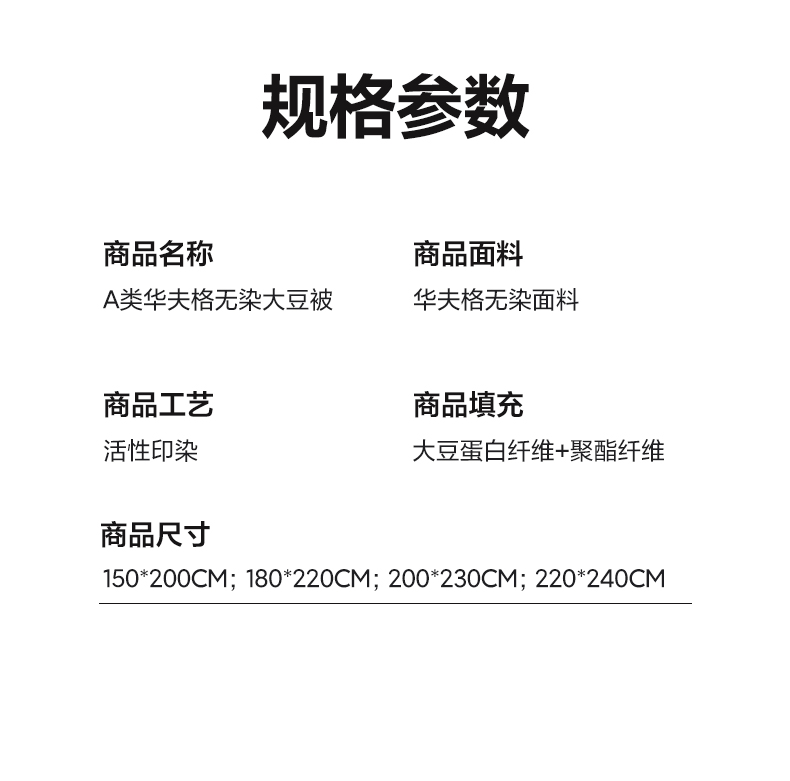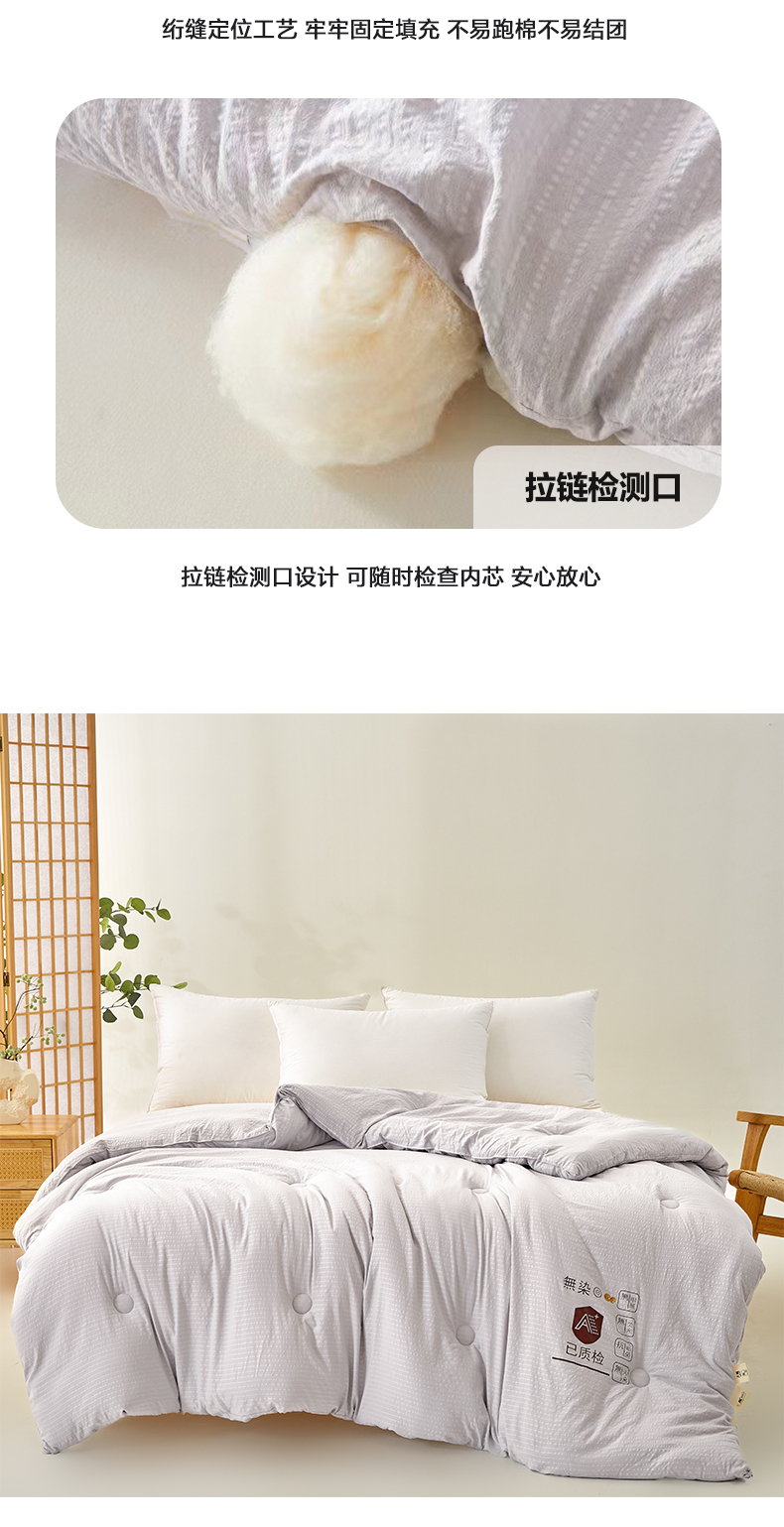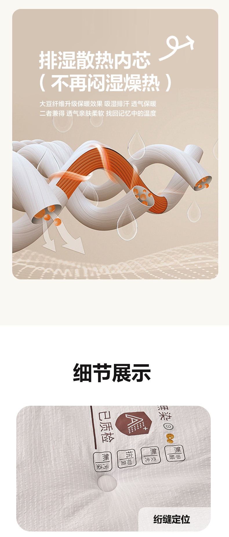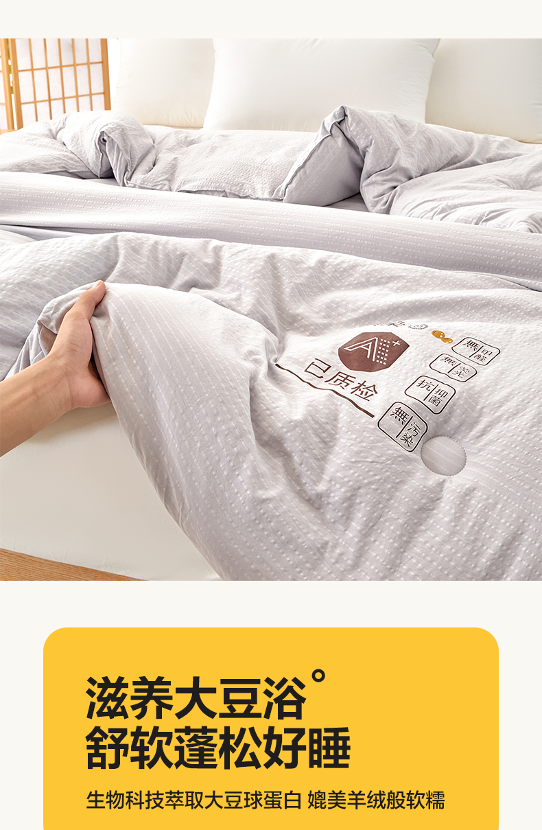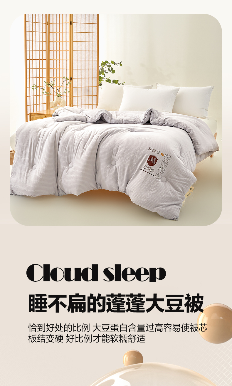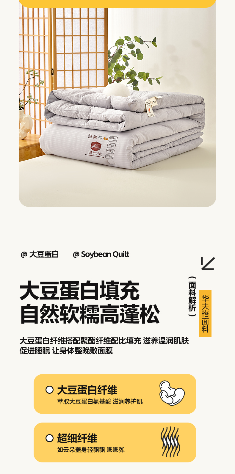 • 填充纤维种类: 大豆蛋白改性聚酯纤维