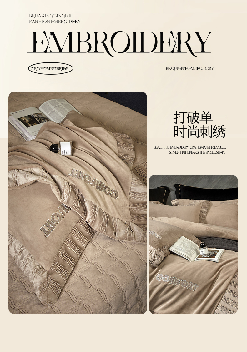 2024新款高克重牛奶绒刺绣四件套-巴黎印象 巴黎印象-暖卡其