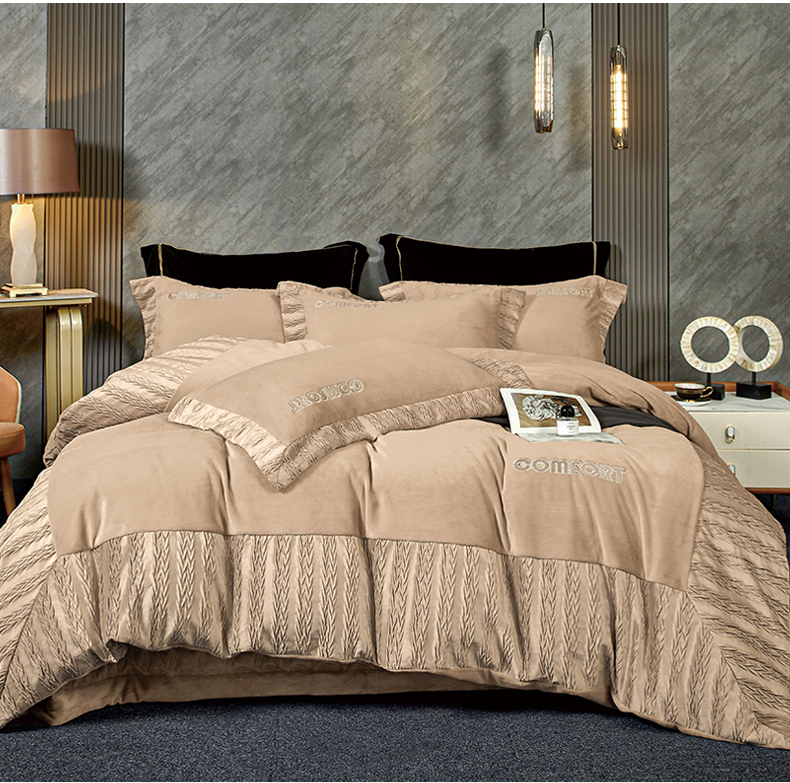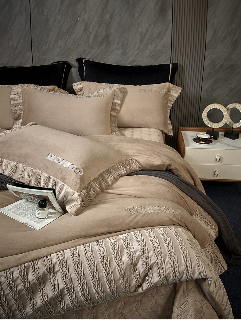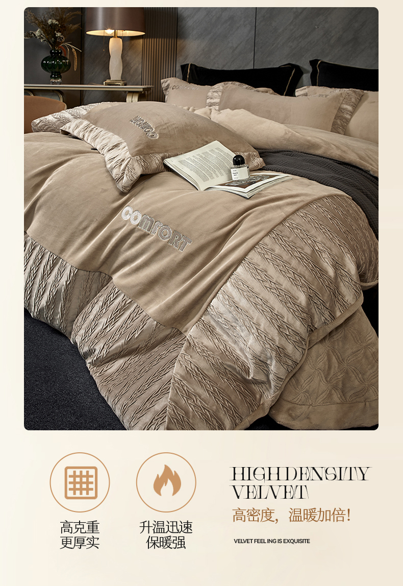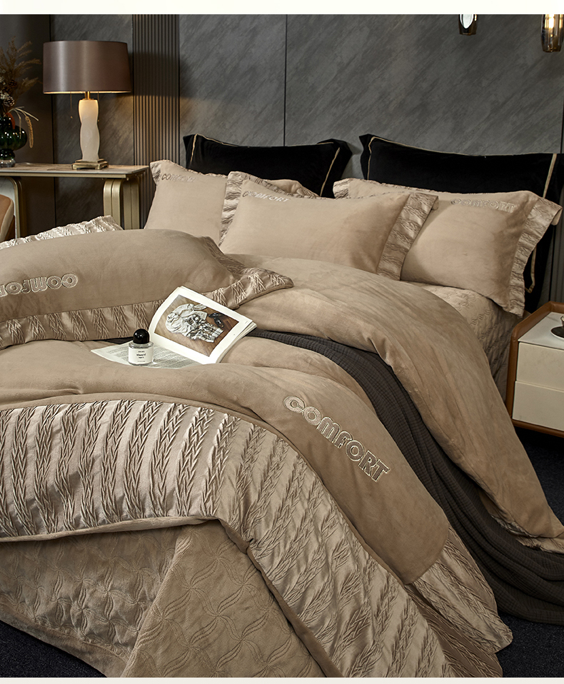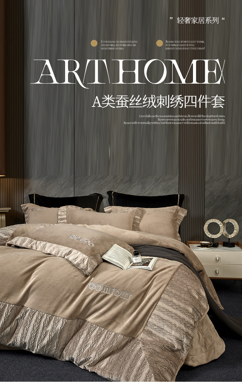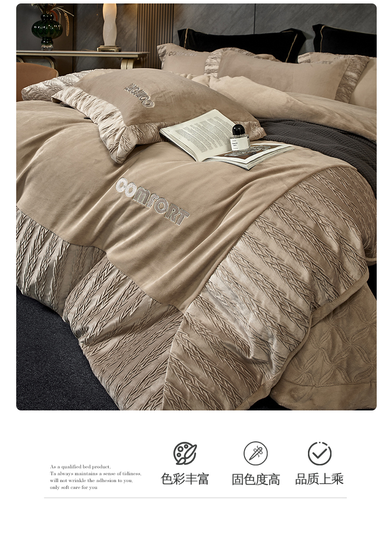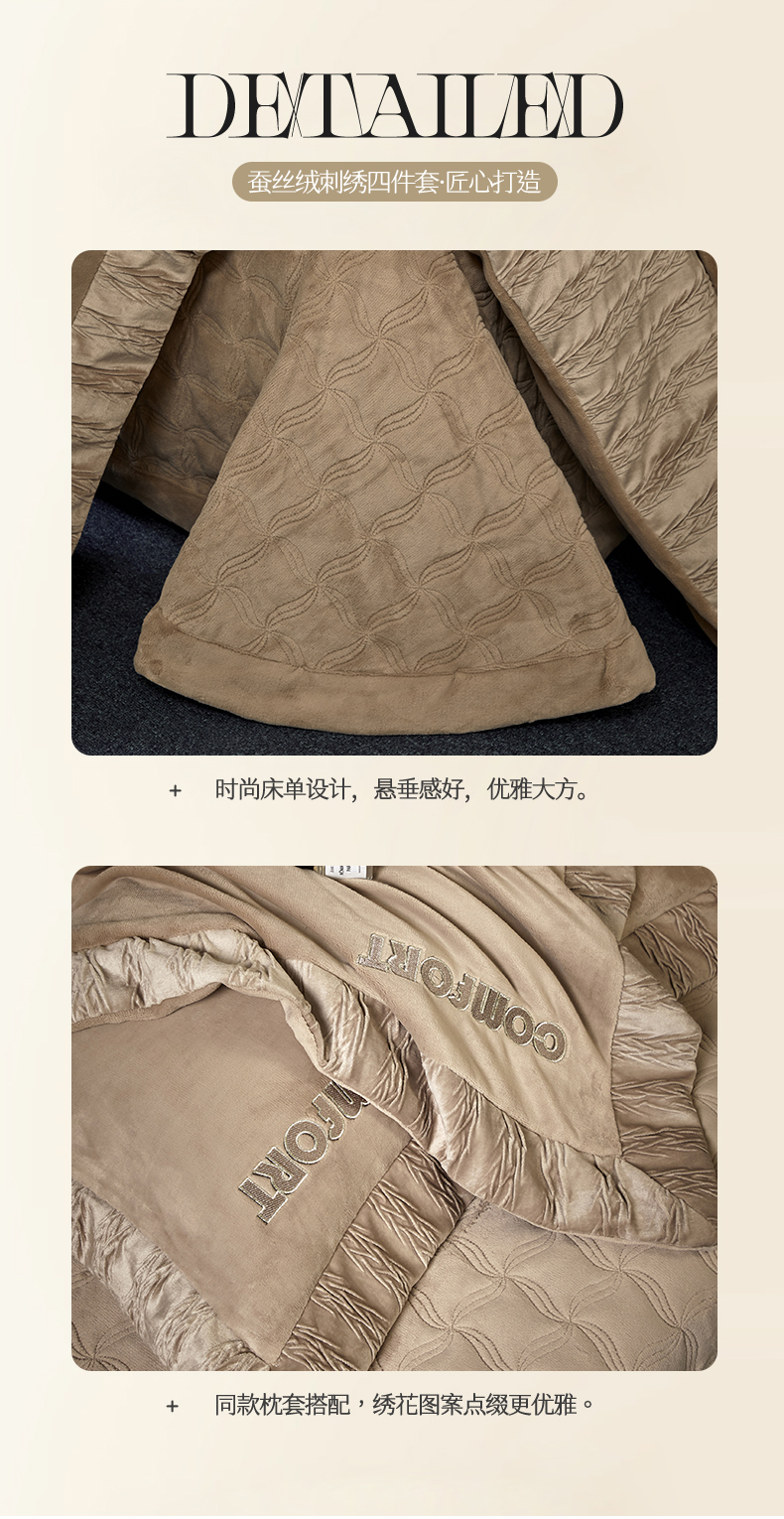 商品名称:2024新款高克重牛奶绒刺绣四件套-巴黎印象 巴黎印象-暖卡其