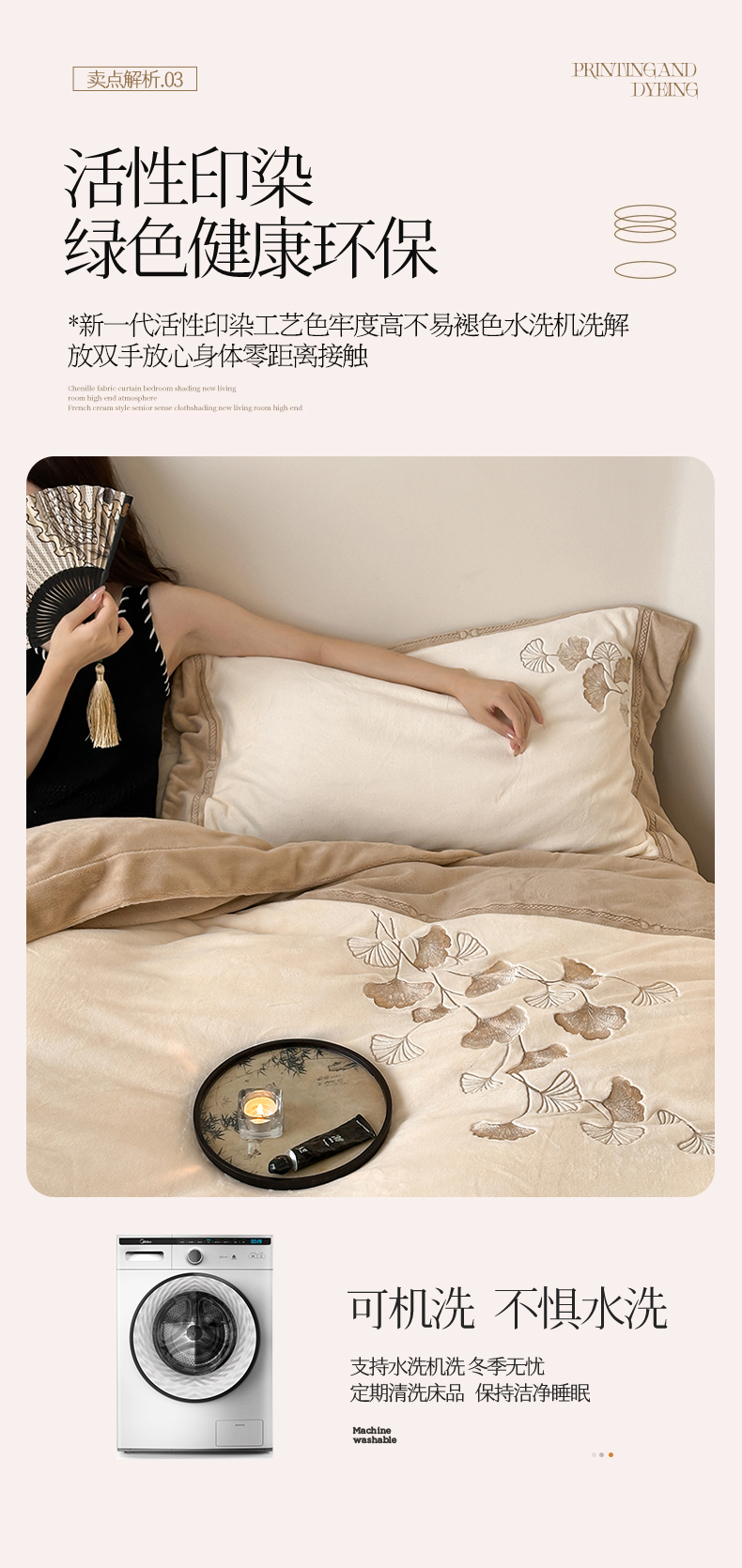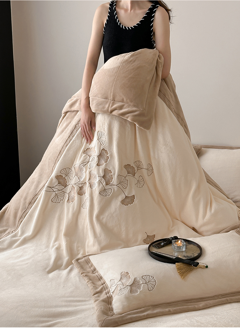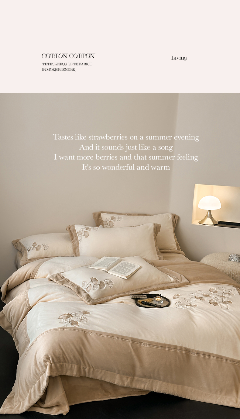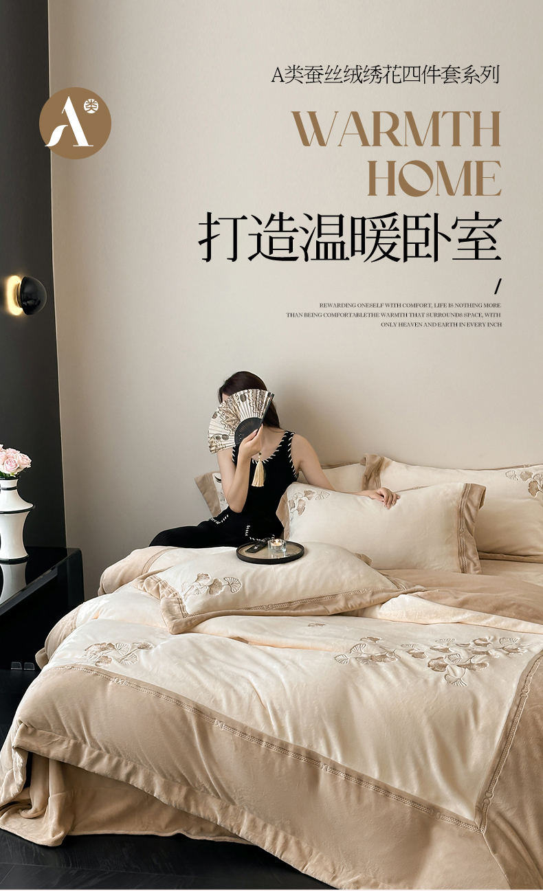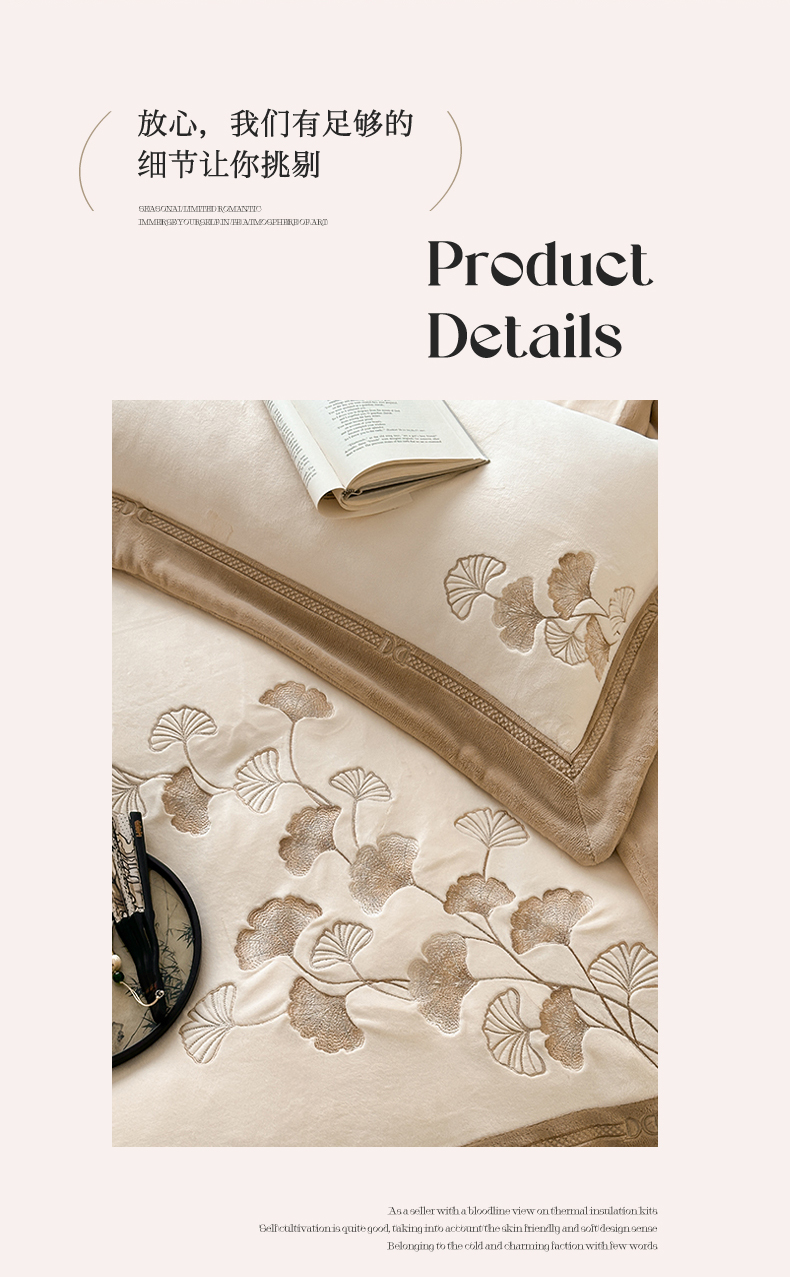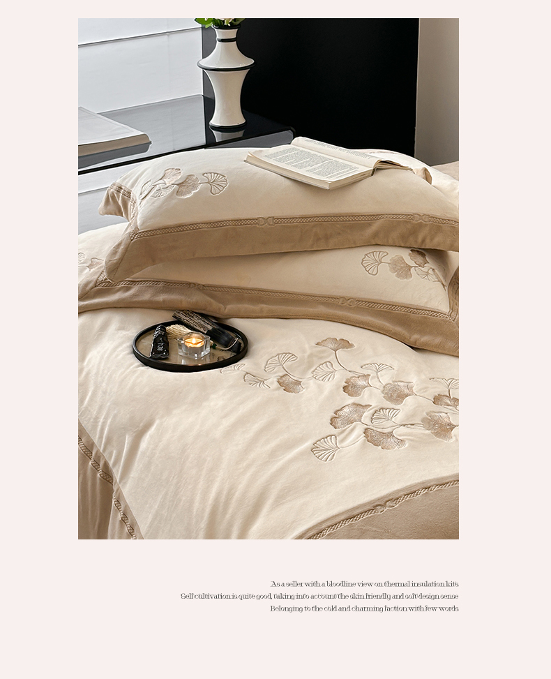 商品名称:2024新款高克重牛奶绒绣花四件套-叶起华裳 星奶油驼