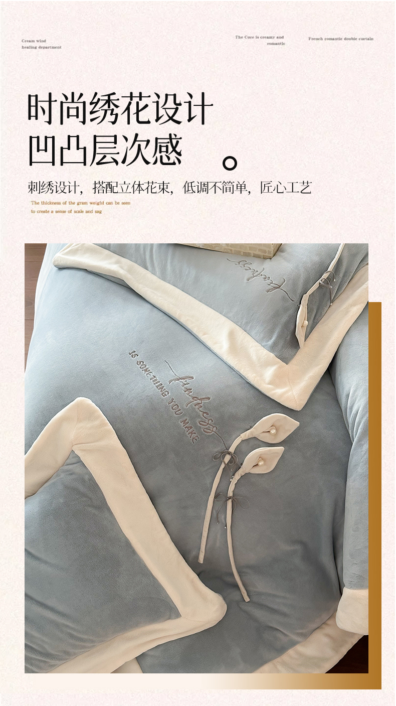 2024新款高克重牛奶绒四件套-辛西娅 梦蓝