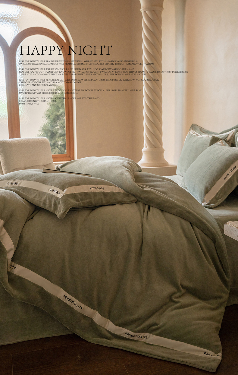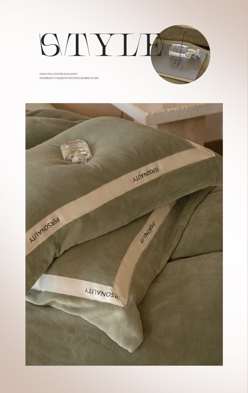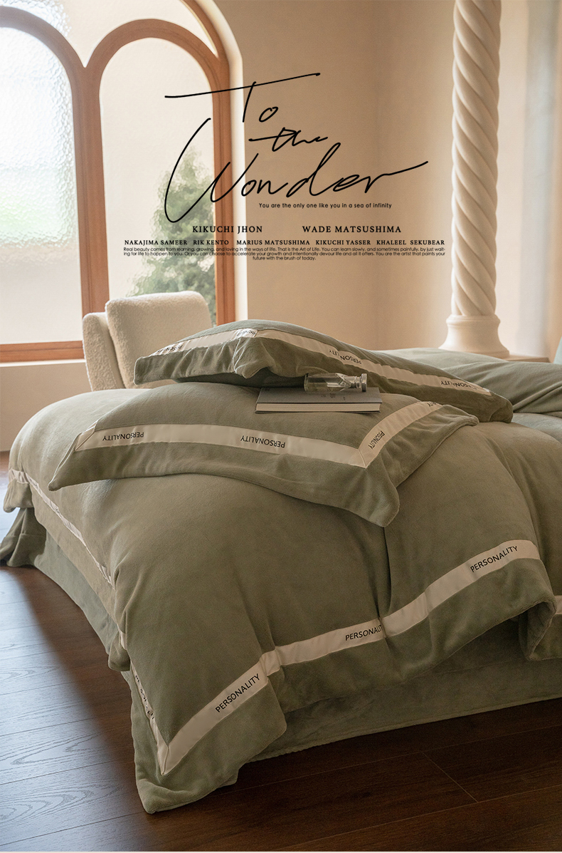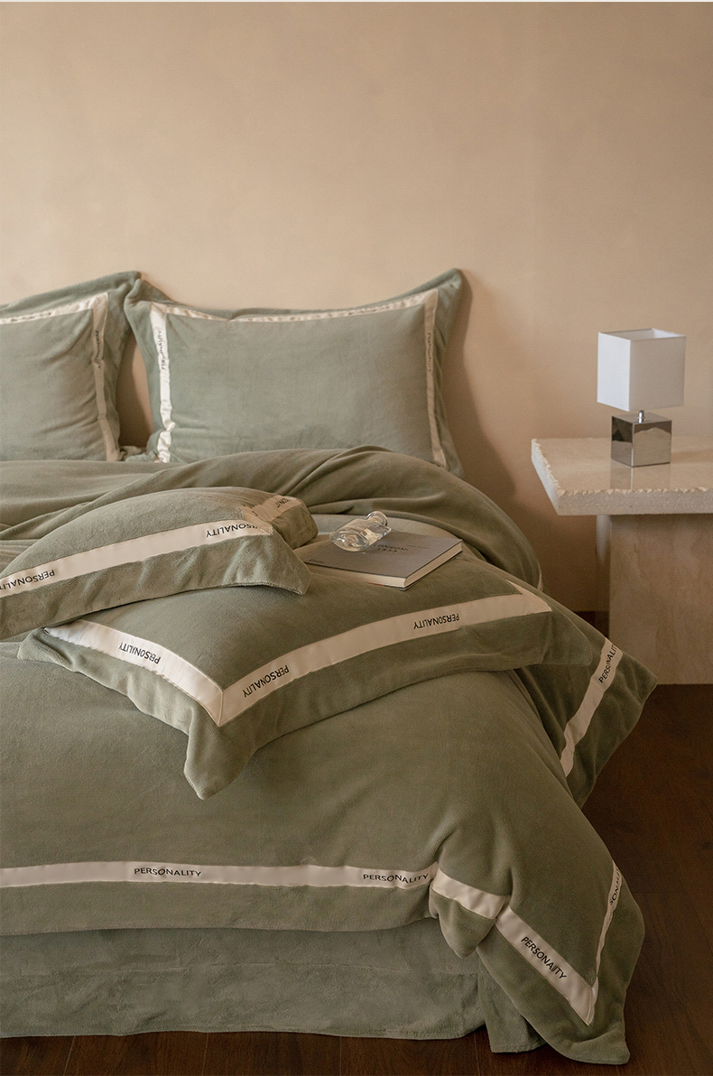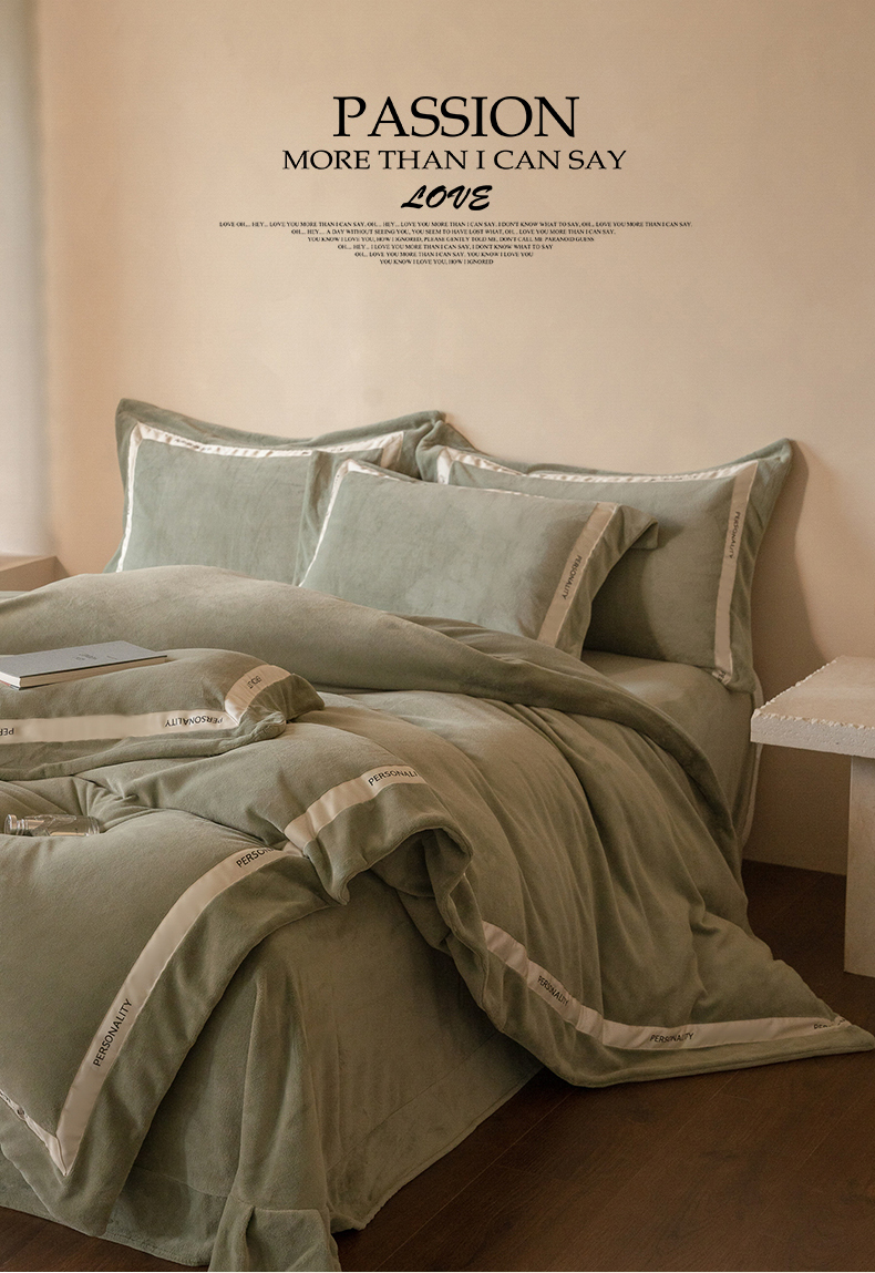 2024新款高克重牛奶绒撞色宽边四件套-时尚格调 绿矾