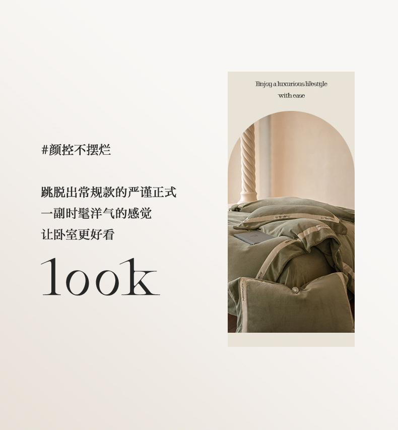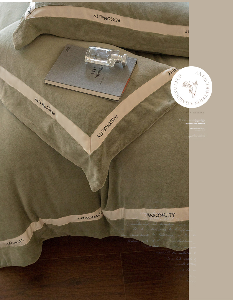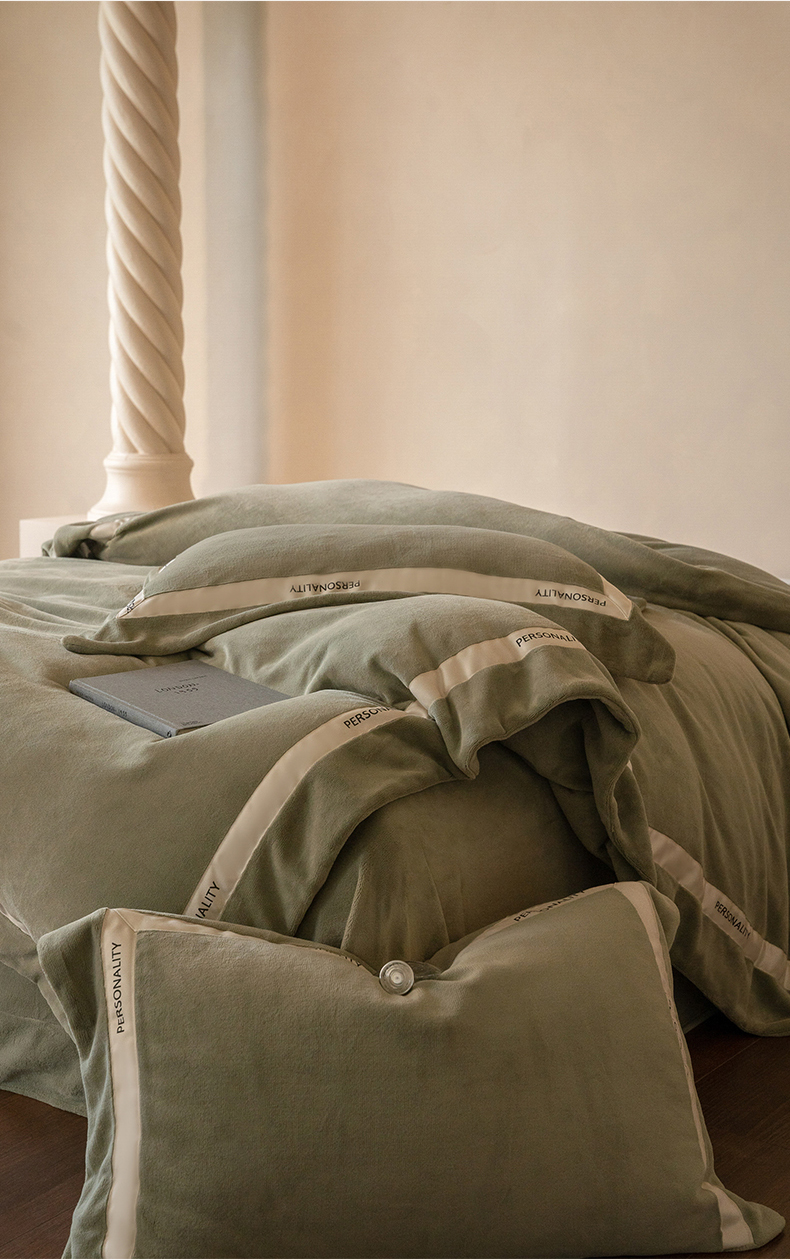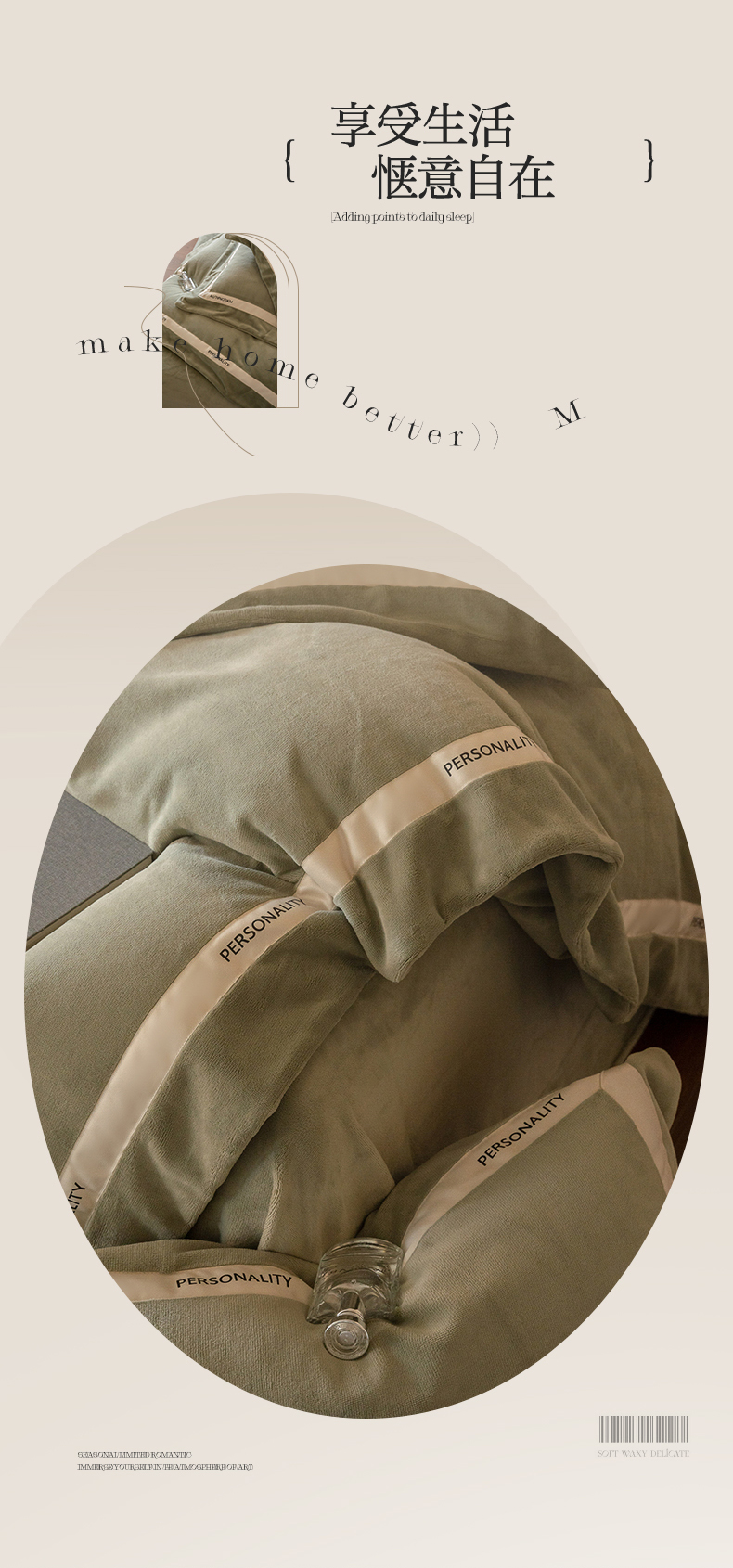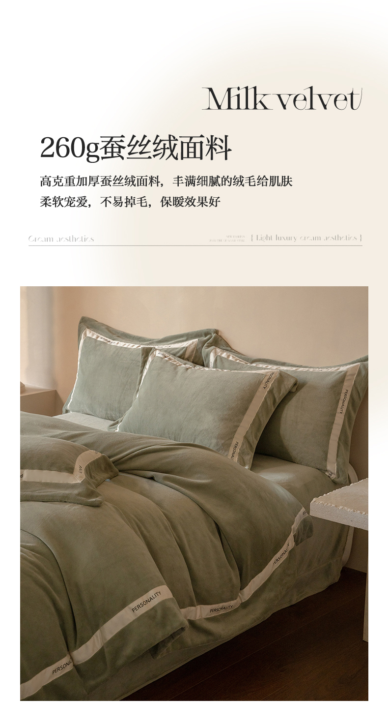 商品名称:2024新款高克重牛奶绒撞色宽边四件套-时尚格调 绿矾