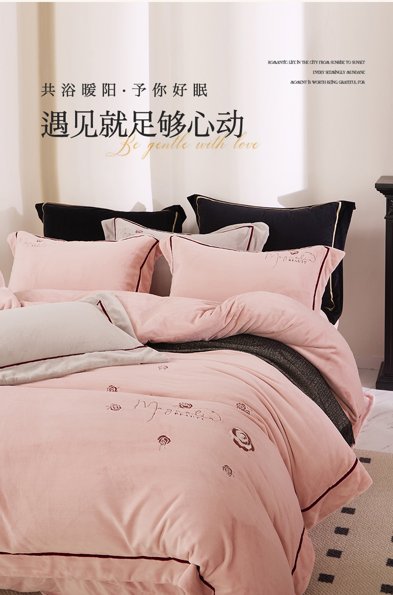 (总)名品优仓 2025新款220克牛奶绒绣花四件套-珊瑚,珊瑚-宝石蓝,珊瑚-粉色,珊瑚-姜黄,珊瑚-米杏,珊瑚-沫粉,珊瑚-杏粉