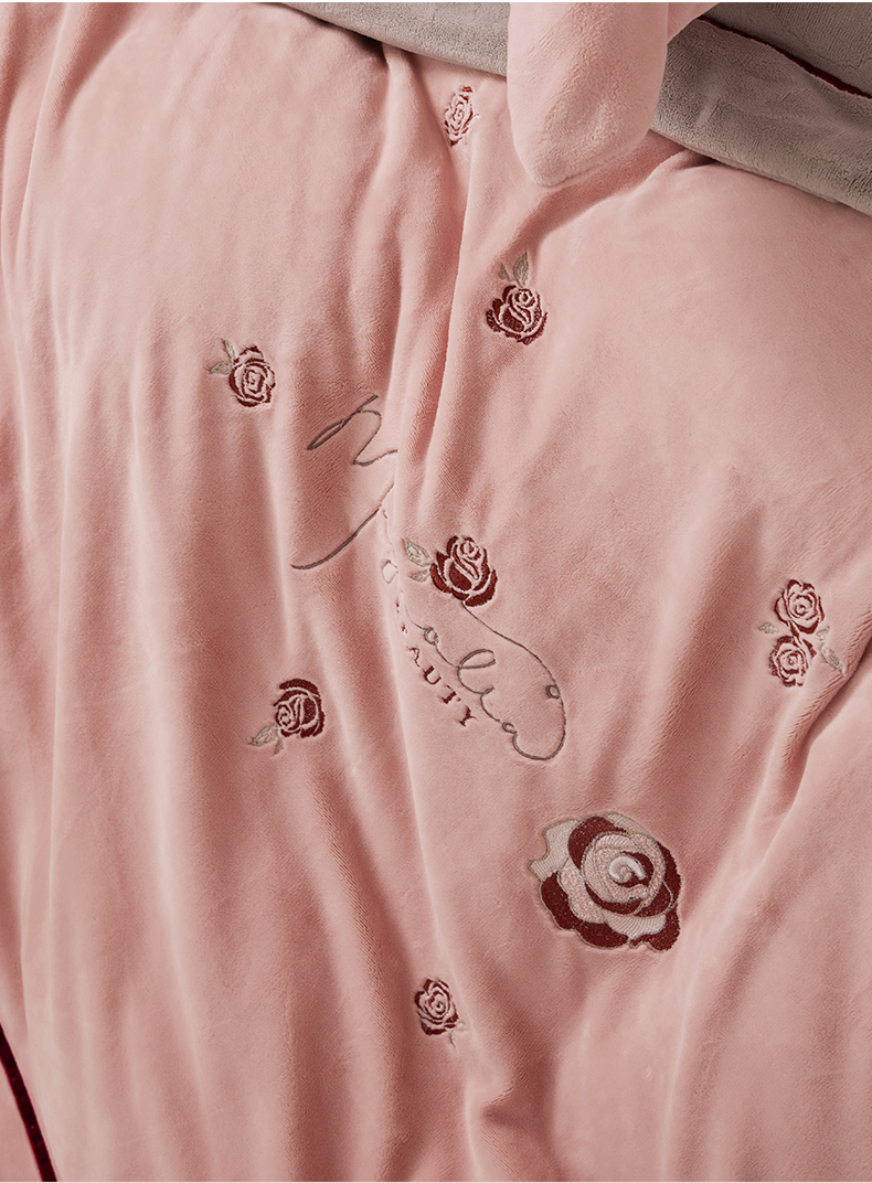 2024新款高克重牛奶绒绣花四件套-奥黛丽 奥黛丽-丹霞红