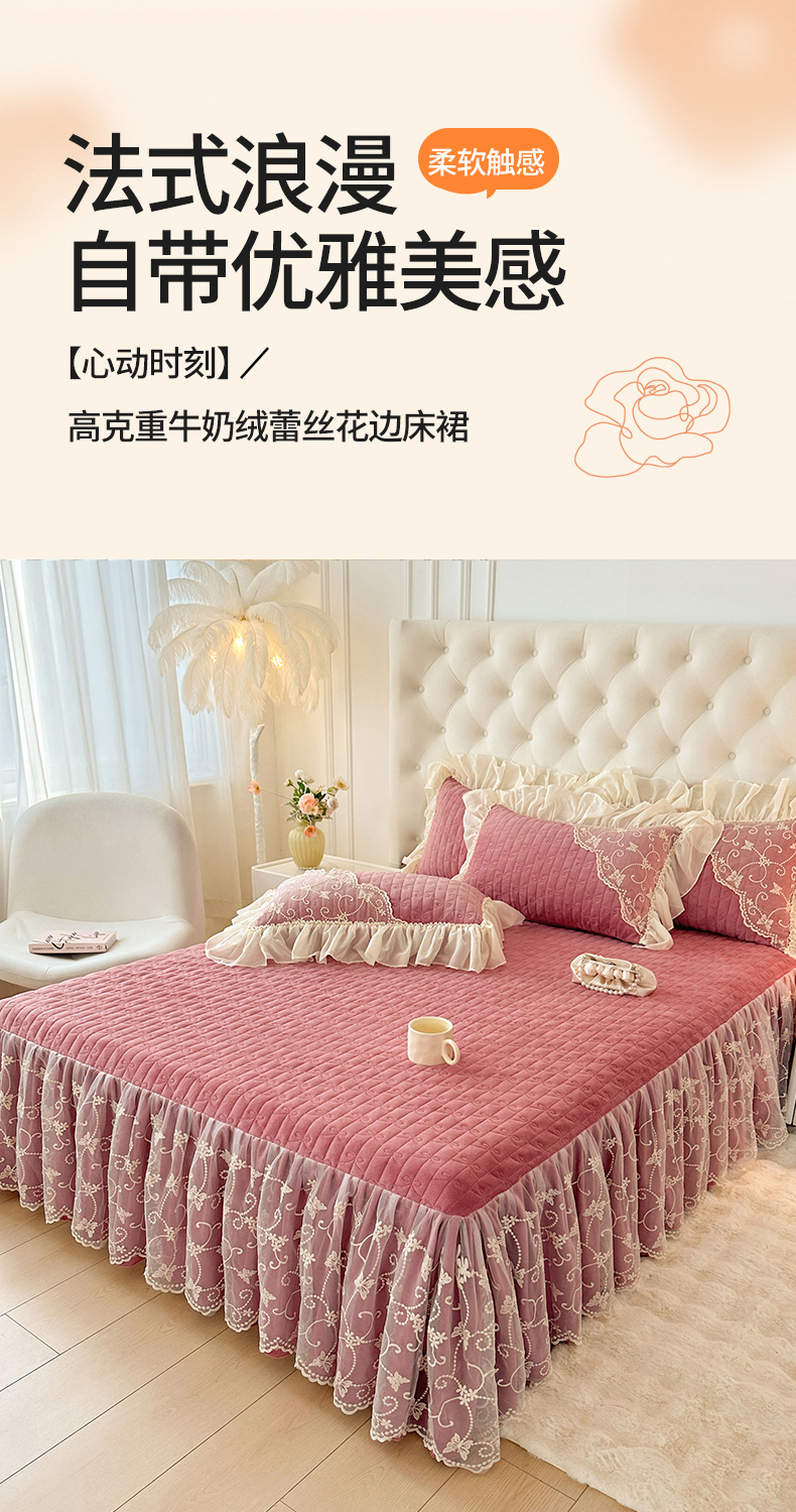 • 91家纺网 家纺一手货源 找家纺 (总)罗艺轩 2025新款牛奶绒浪漫花边床裙款三件套-暖洋洋,暖洋洋-白,暖洋洋-豆沙,暖洋洋-灰,暖洋洋-酒红,暖洋洋-绿,暖洋洋-奶咖