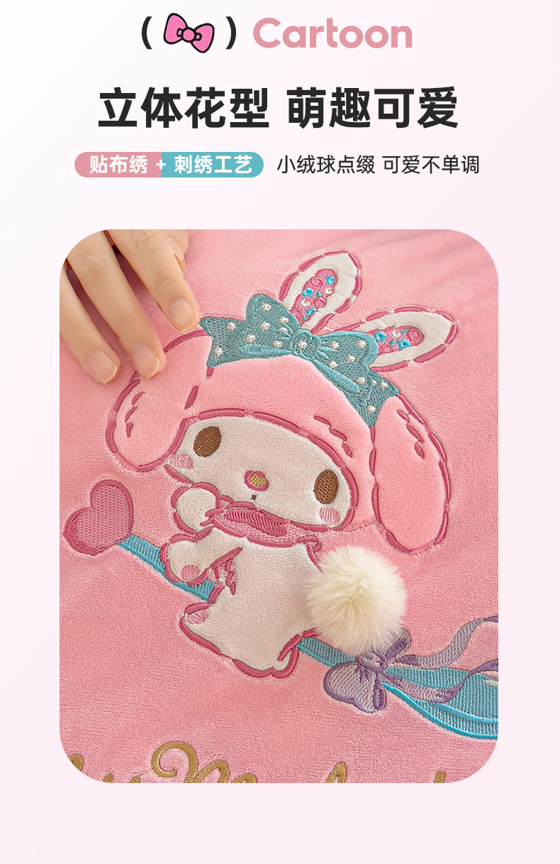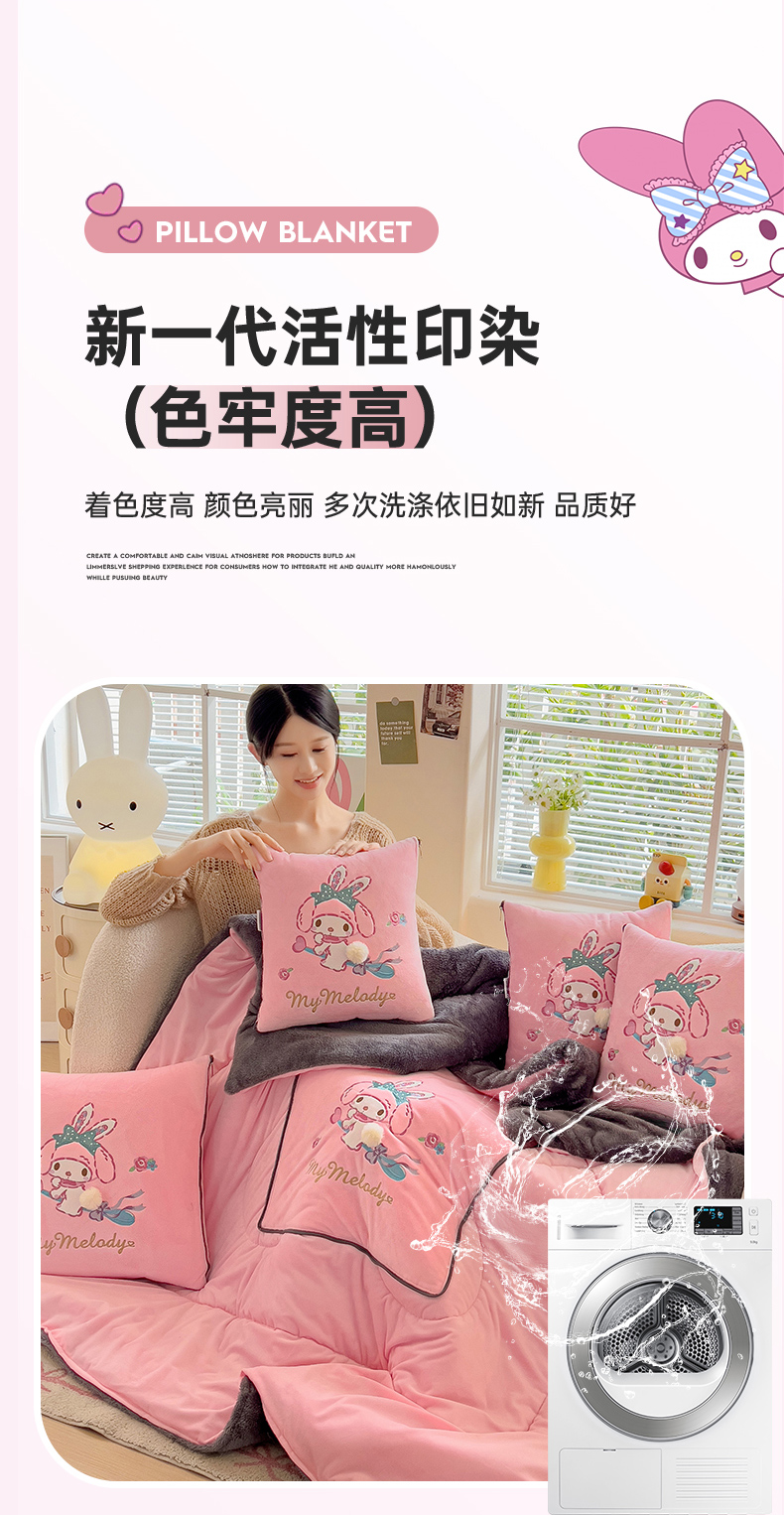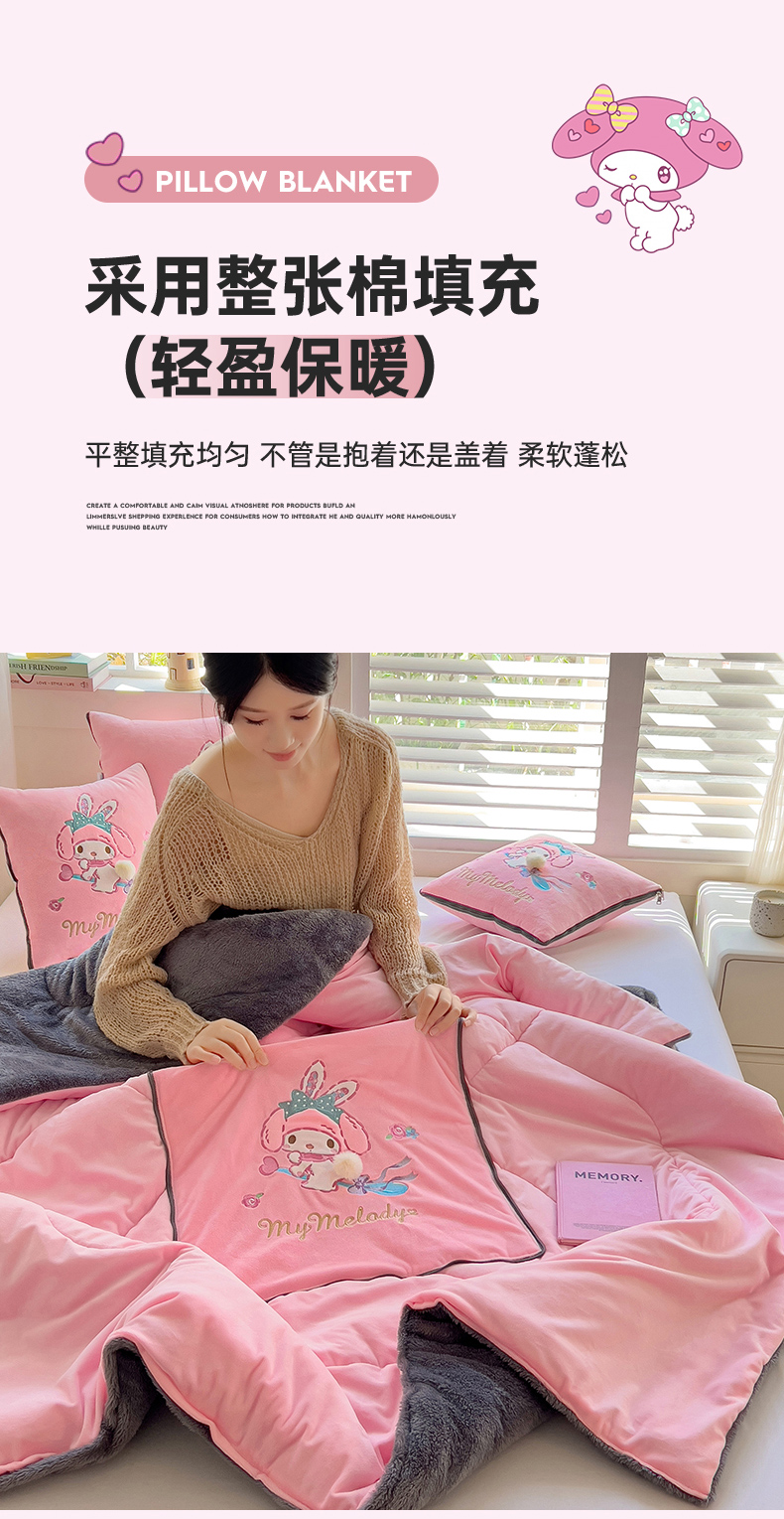(总)铭宣家居 2024新款正版三丽鸥授权加厚AB版婴儿绒和北极绒贴布绣刺绣抱枕被,大耳狗,酷洛米,美乐蒂
