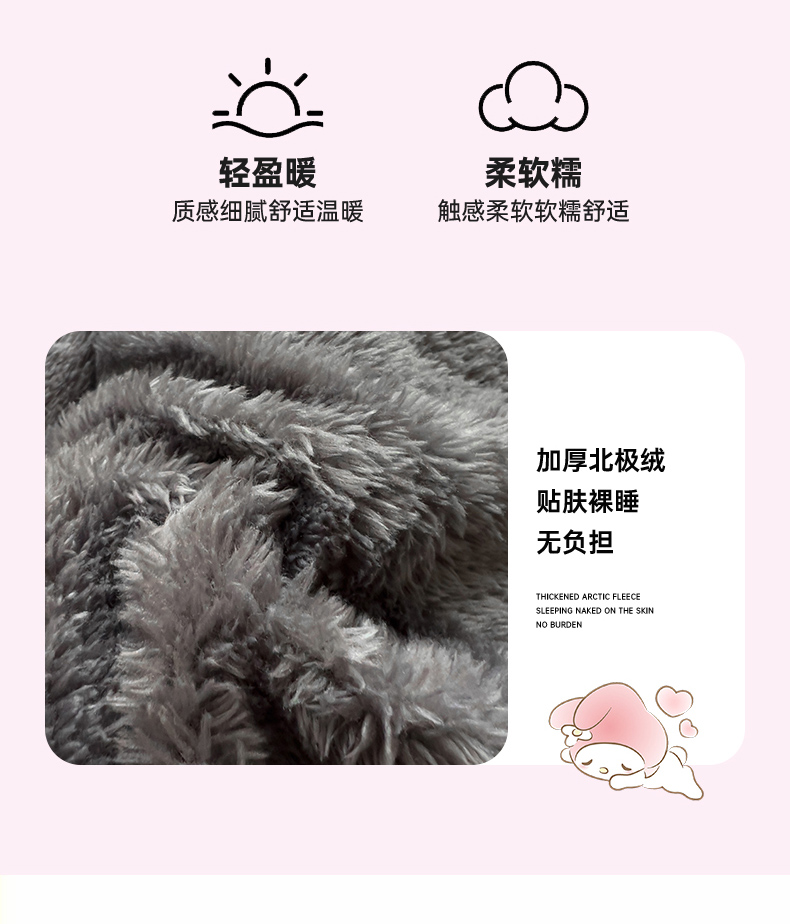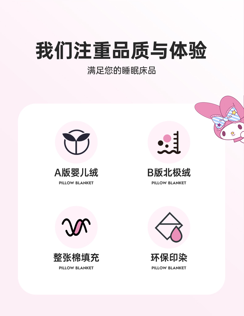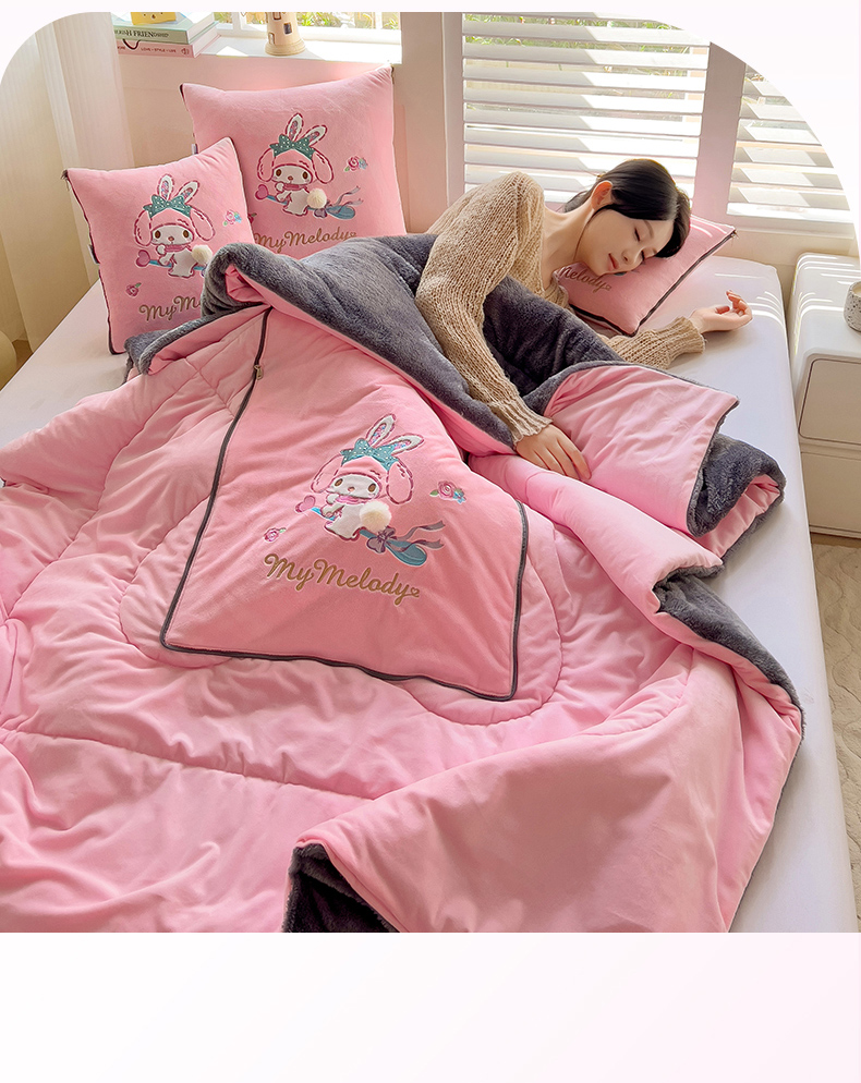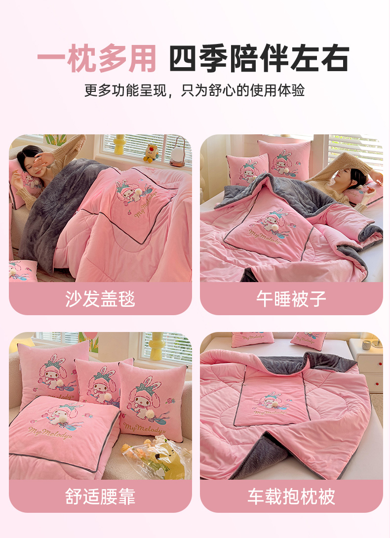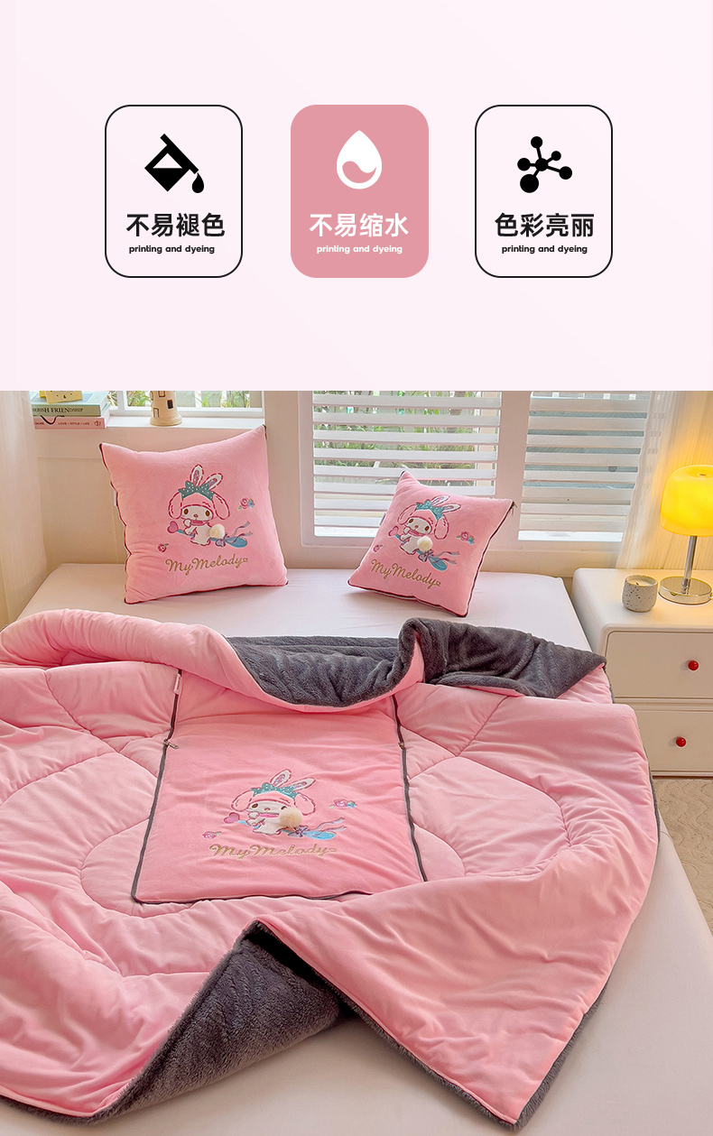 (总)铭宣家居 2024新款正版三丽鸥授权加厚AB版婴儿绒和北极绒贴布绣刺绣抱枕被,大耳狗,酷洛米,美乐蒂