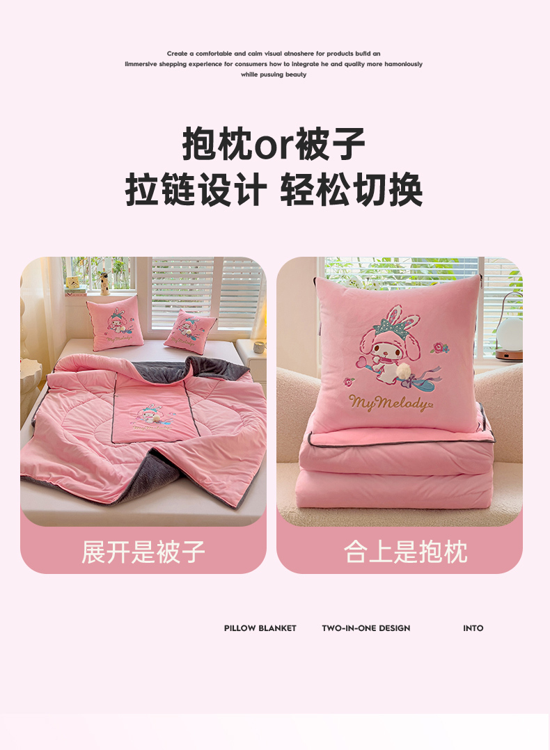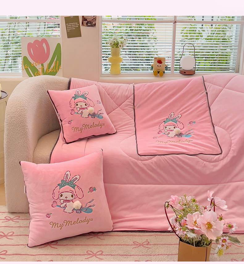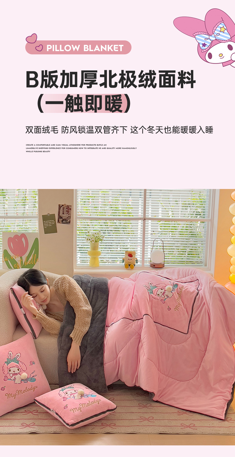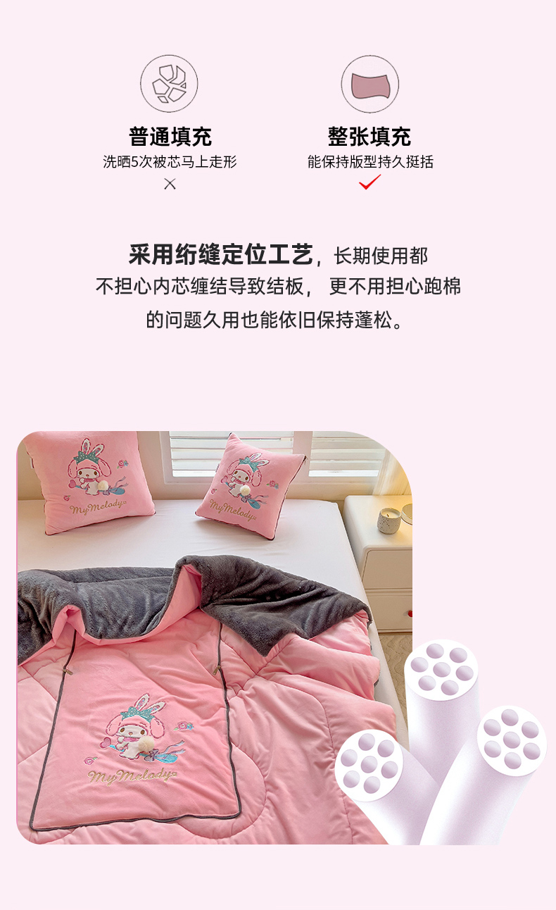铭宣家居 2024新款正版三丽鸥授权加厚AB版婴儿绒和北极绒贴布绣刺绣抱枕被 美乐蒂