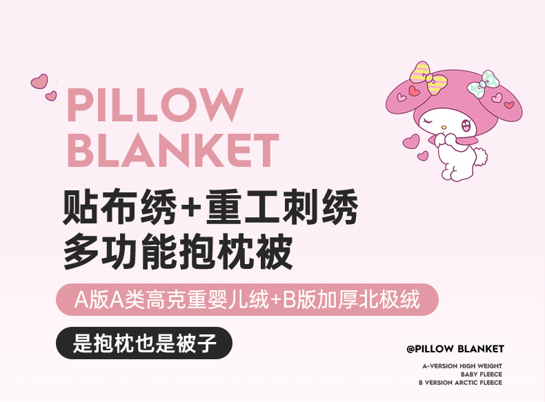 商品名称:铭宣家居 2024新款正版三丽鸥授权加厚AB版婴儿绒和北极绒贴布绣刺绣抱枕被 美乐蒂