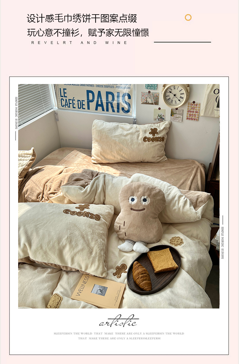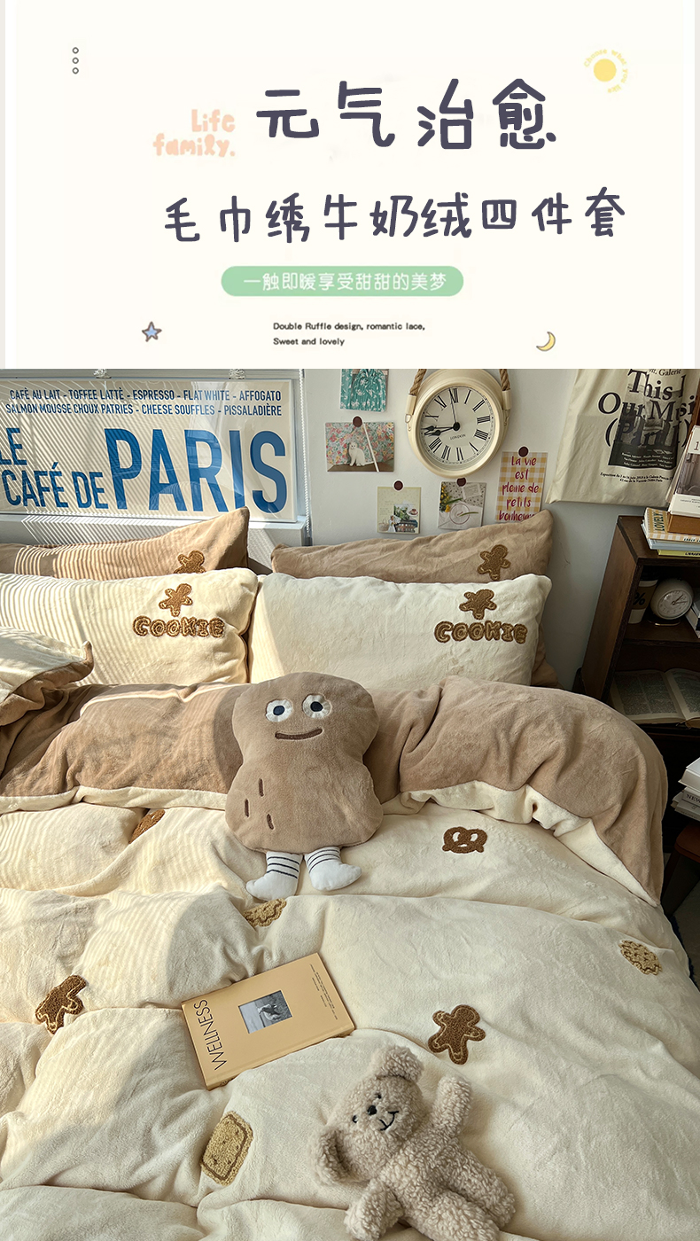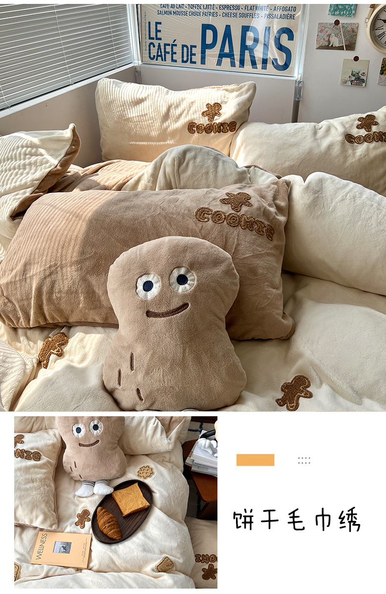 商品名称:原素 2024饼干人毛巾绣牛奶绒四件套 奶白巧克力