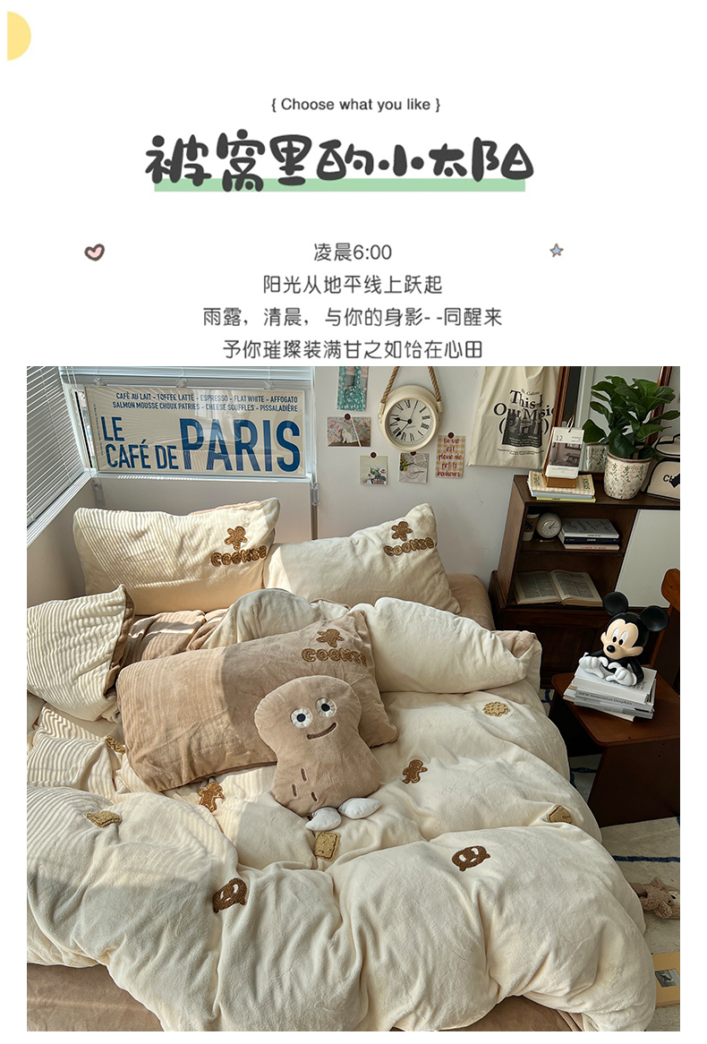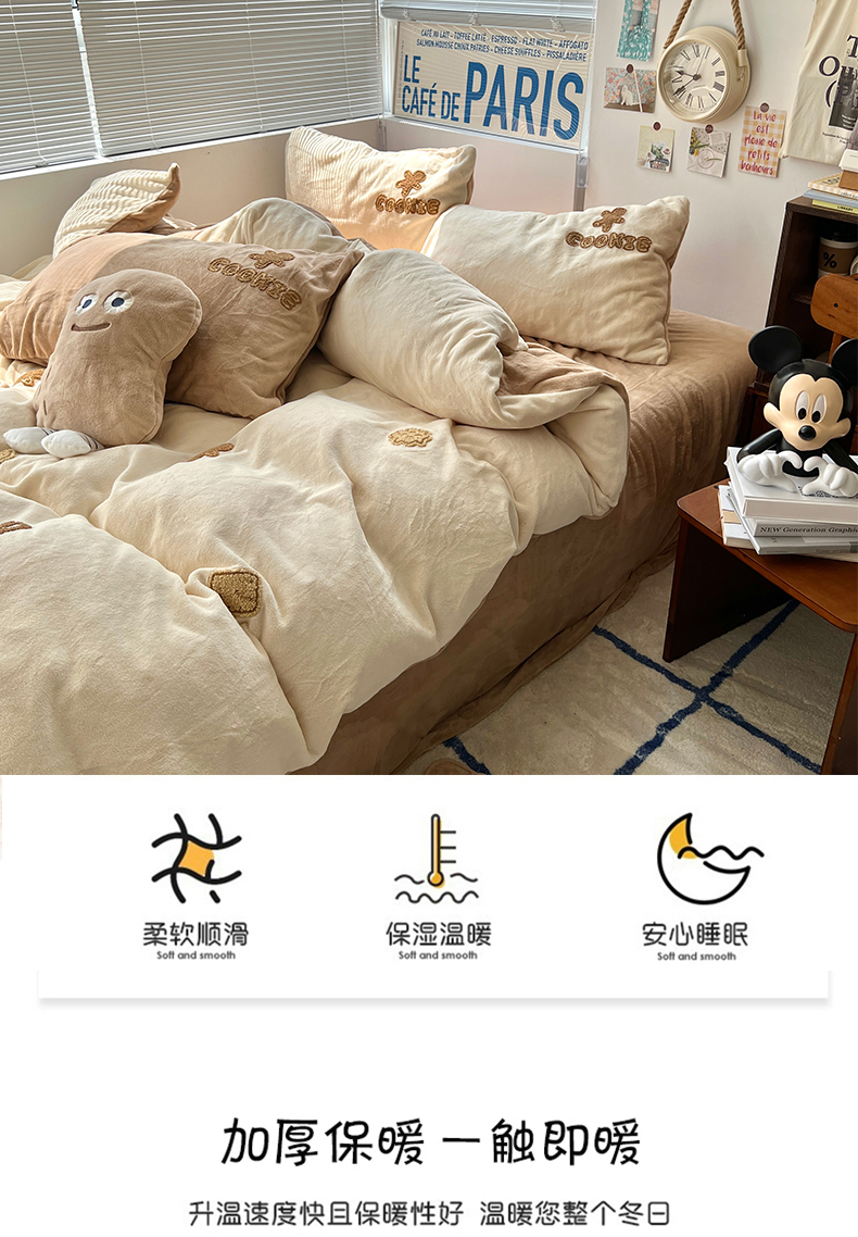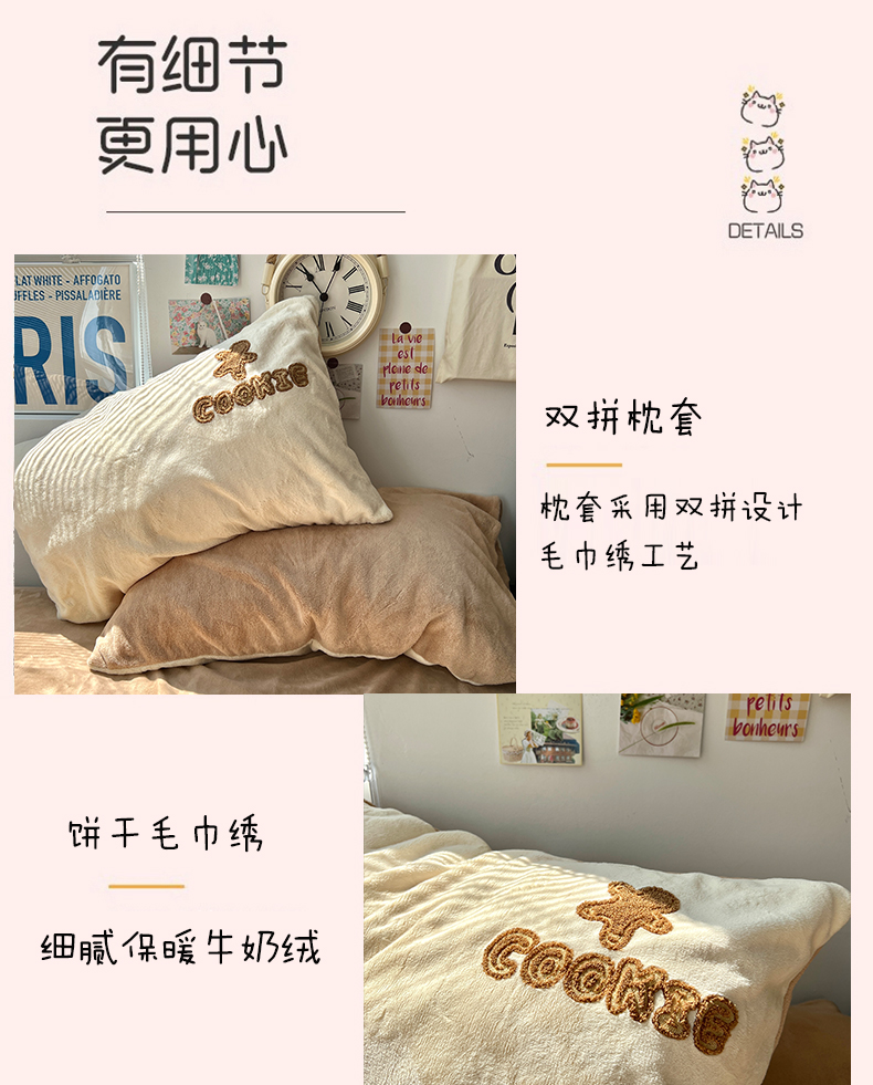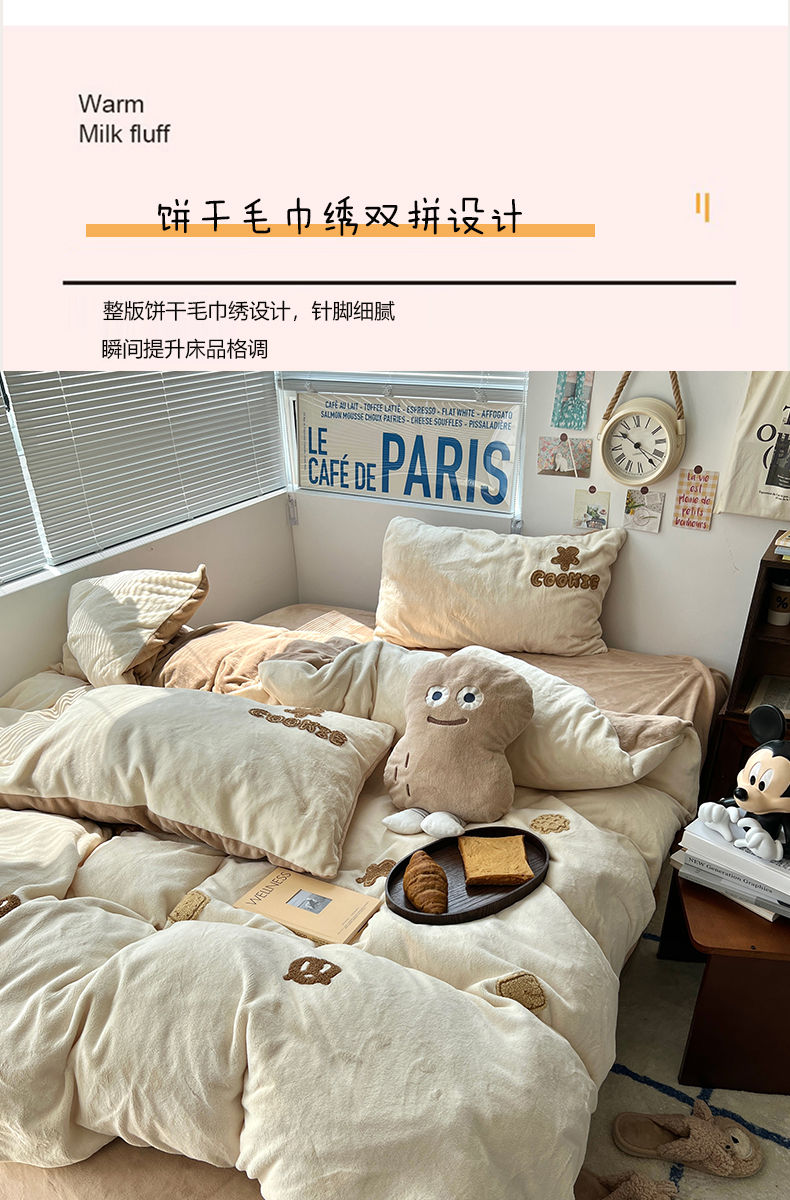 商品名称:原素 2024饼干人毛巾绣牛奶绒四件套 奶白巧克力