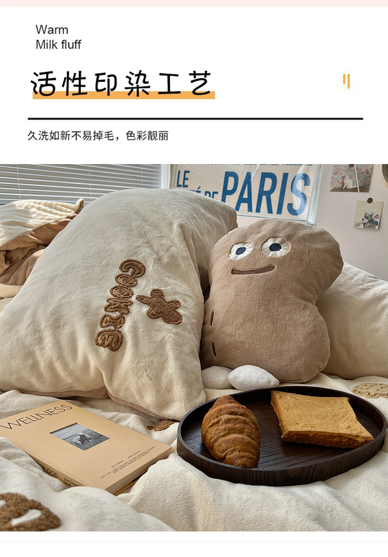 原素 2024饼干人毛巾绣牛奶绒四件套 奶白巧克力