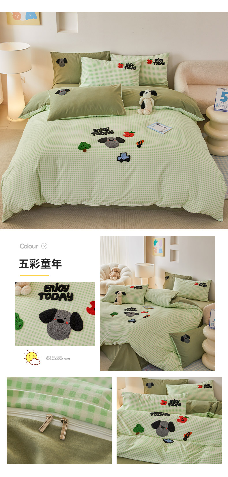 (总)怡家居 2025新款全棉双层纱毛巾绣夏被四件套,夏被-点点小淘气,夏被-耳机猫,夏被-欢乐狗,夏被-灰格小淘气,夏被-可爱曲奇,夏被-萌趣猫,夏被-晚安熊,夏被-小熊猫