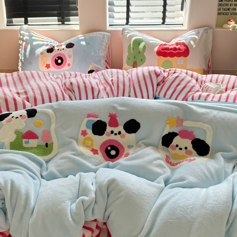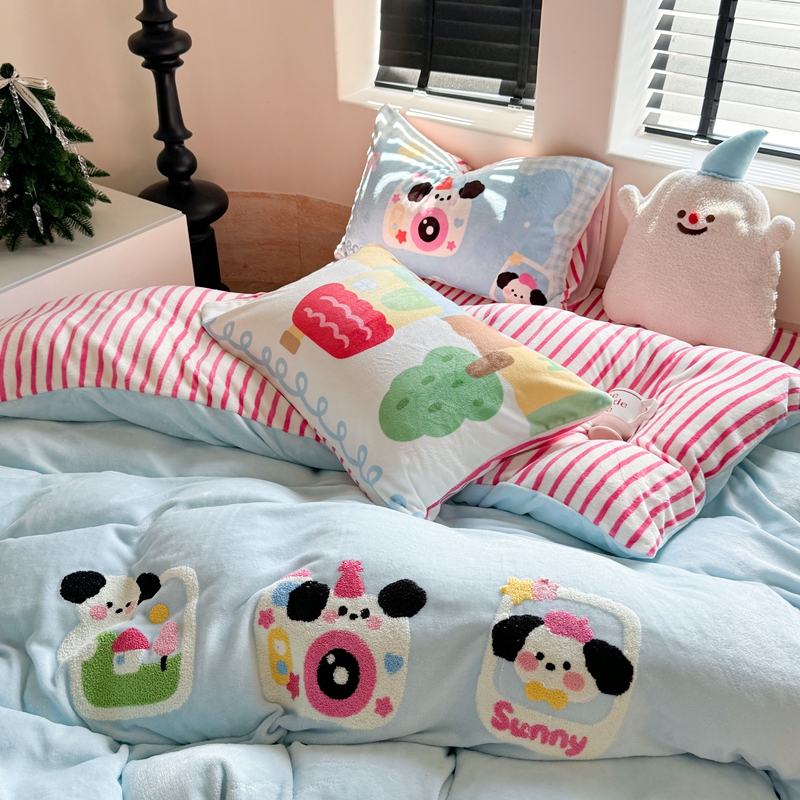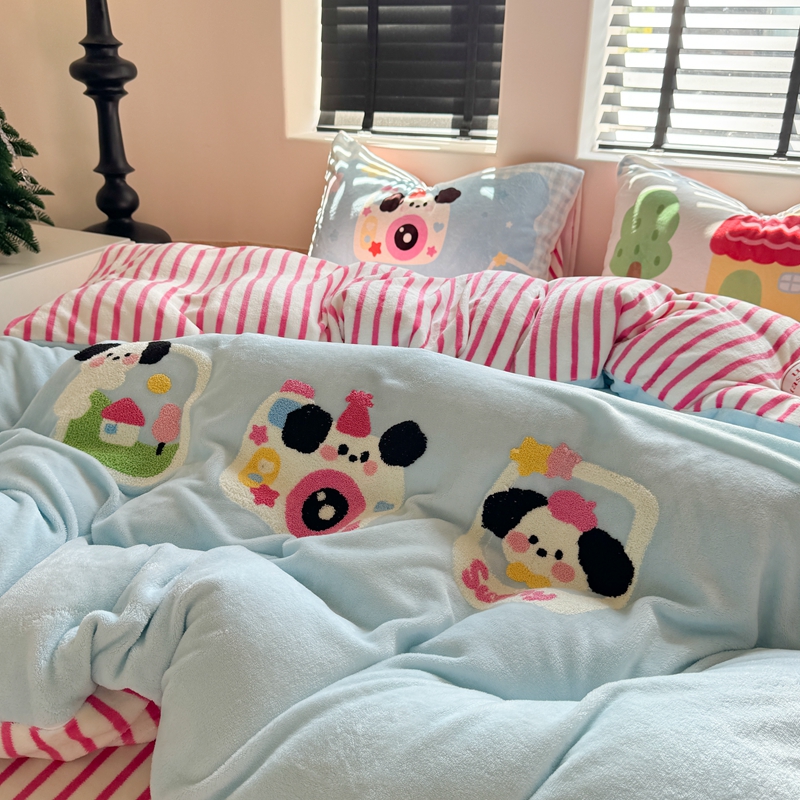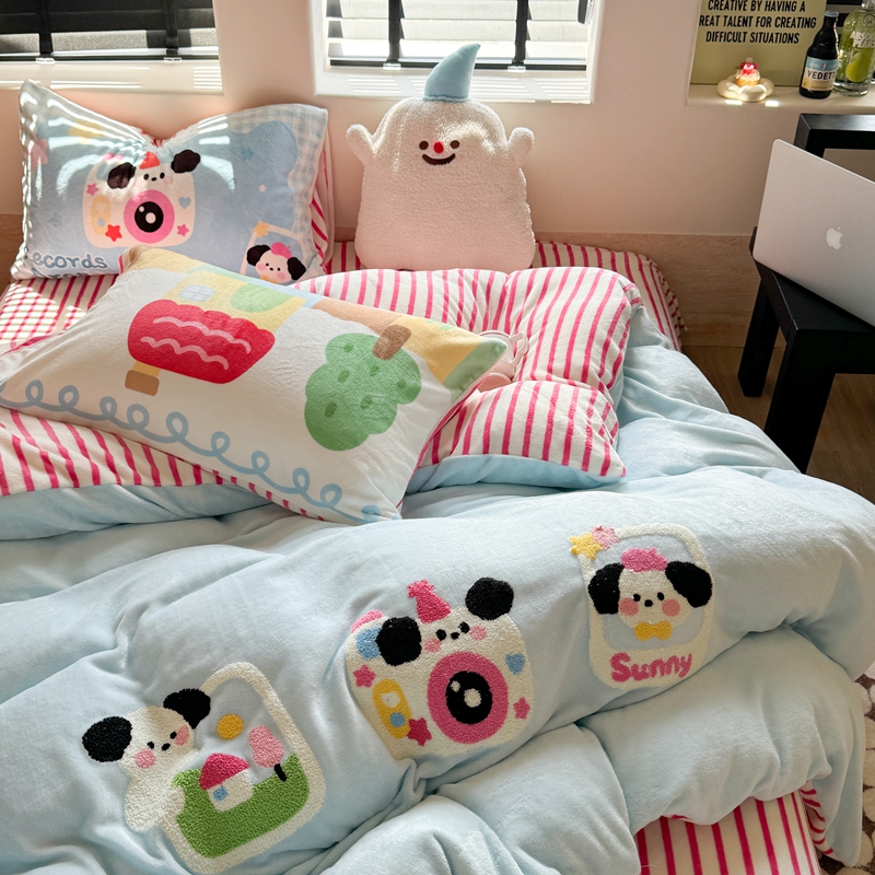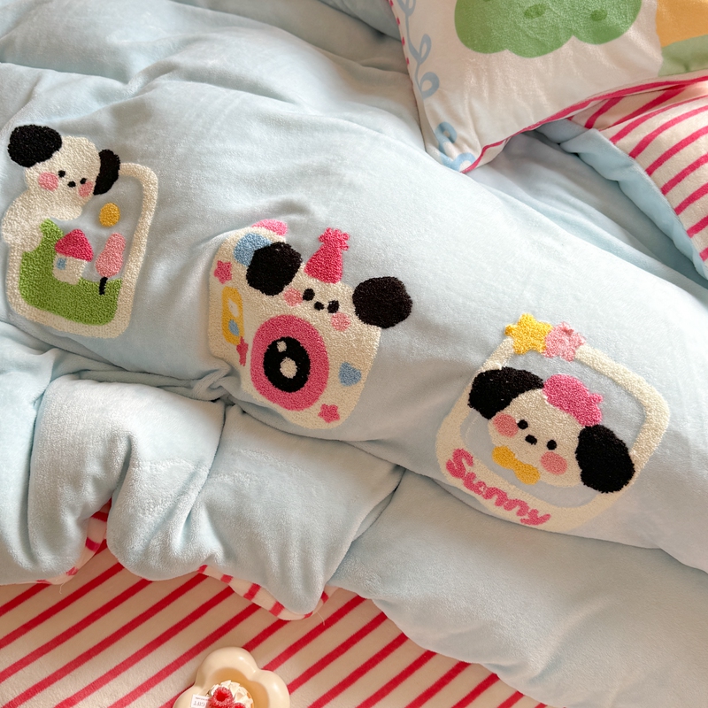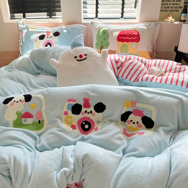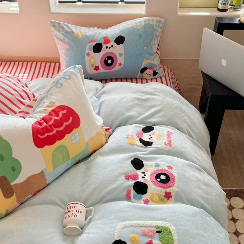 柚子YOUTH 2024新款牛奶绒四件套-三小只毛巾绣系列 照相机