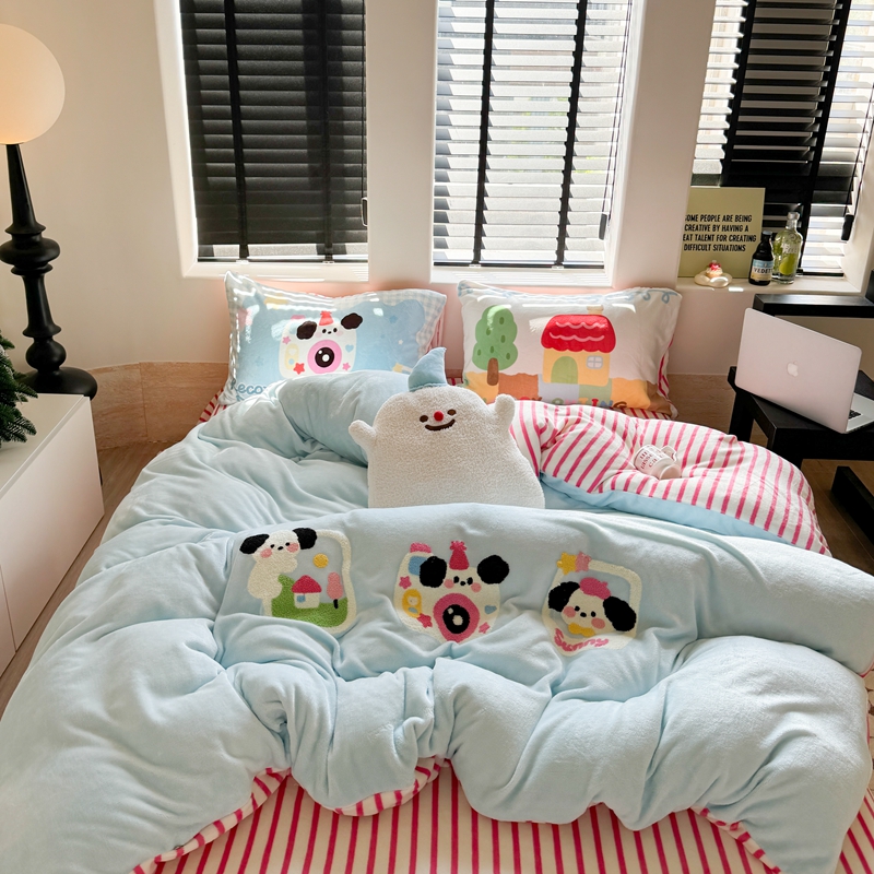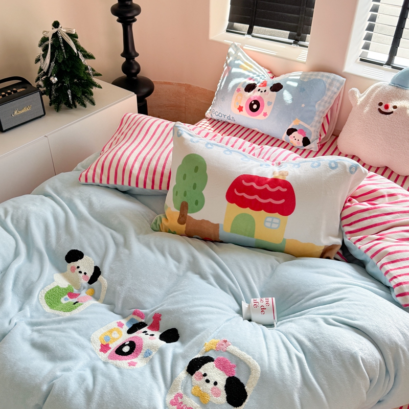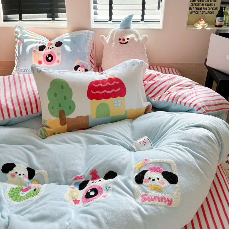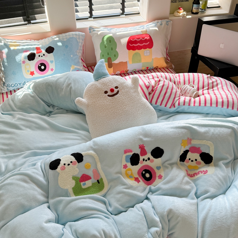 (总)柚子YOUTH 2025新款加厚牛奶绒卡通毛巾绣四件套-印加绣送同款毛毯,蛋糕小狗,公主猫,头套猫,兔兔花园,小伙伴,雪纳瑞