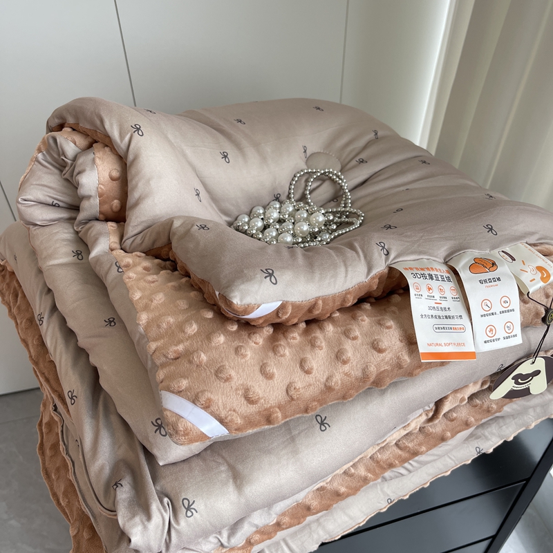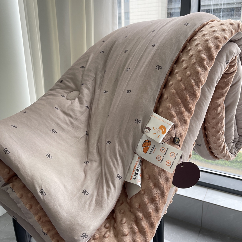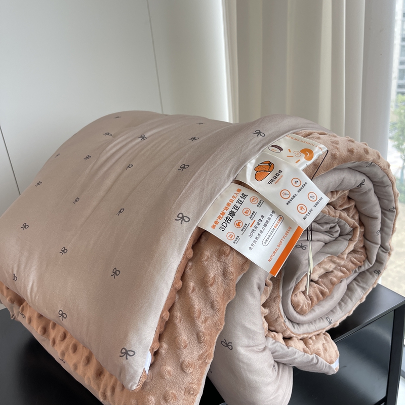 商品名称:奈萝家纺 2024新款秋冬印花针织棉豆豆绒春秋被冬被 蝴蝶结咖