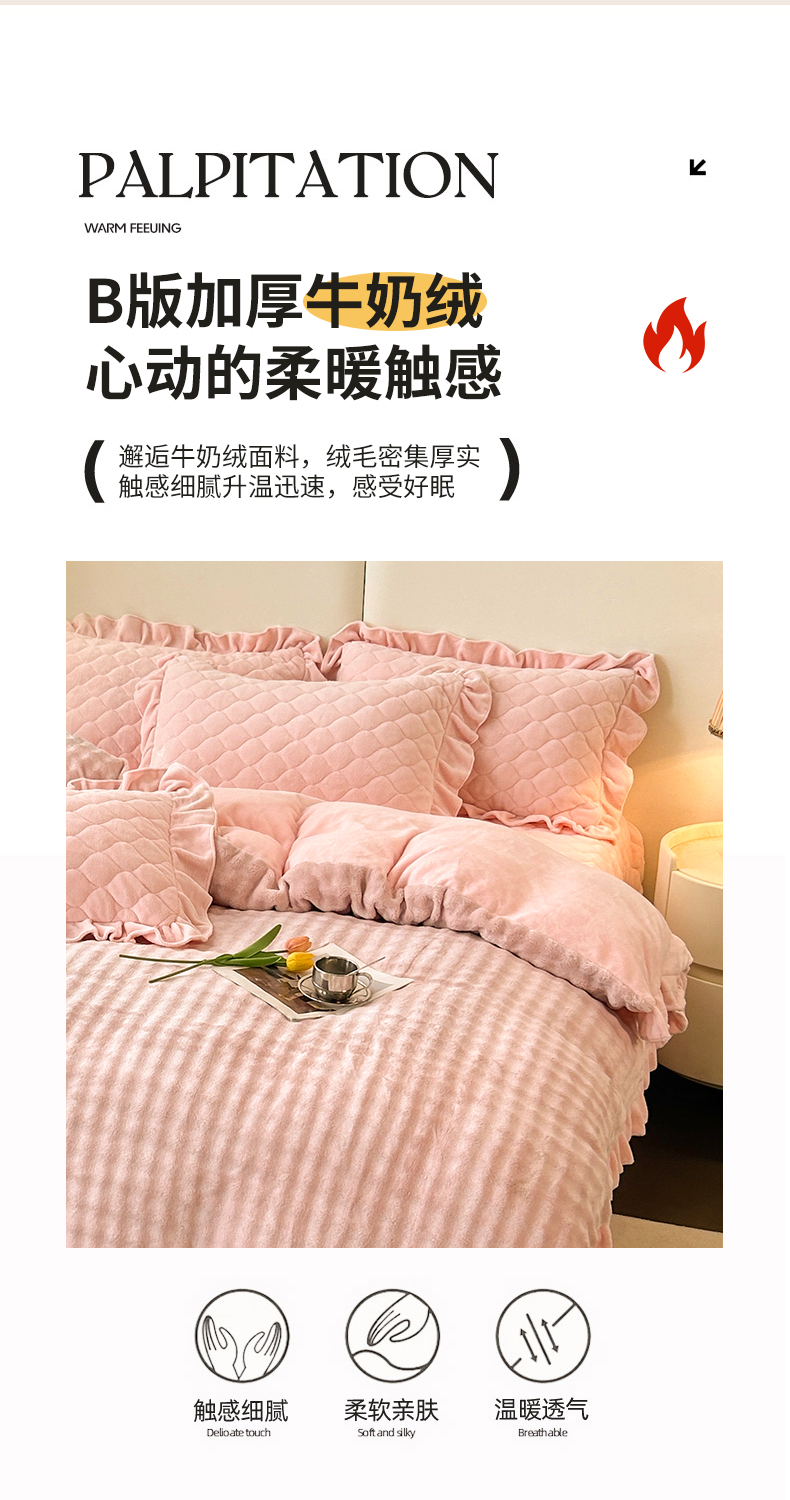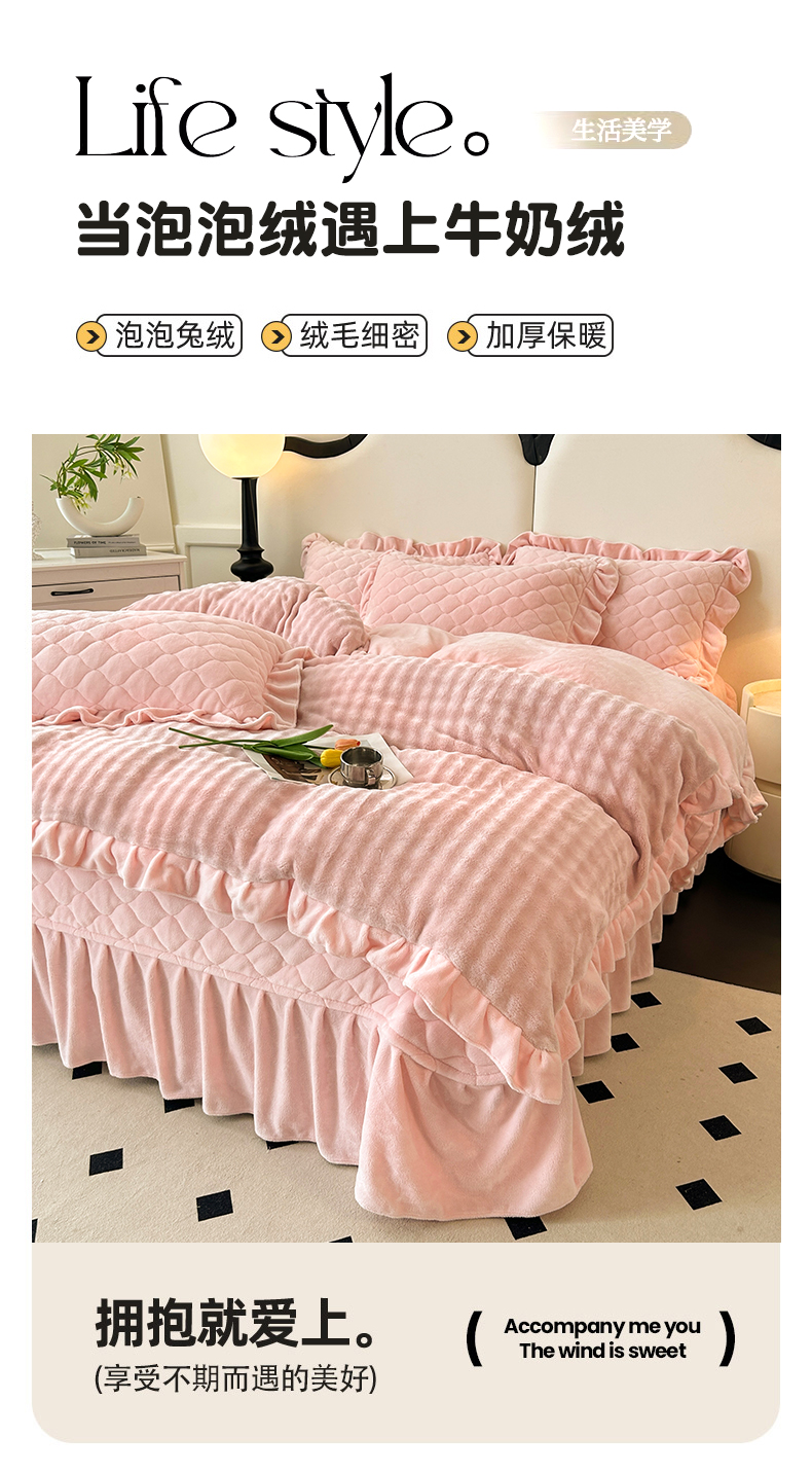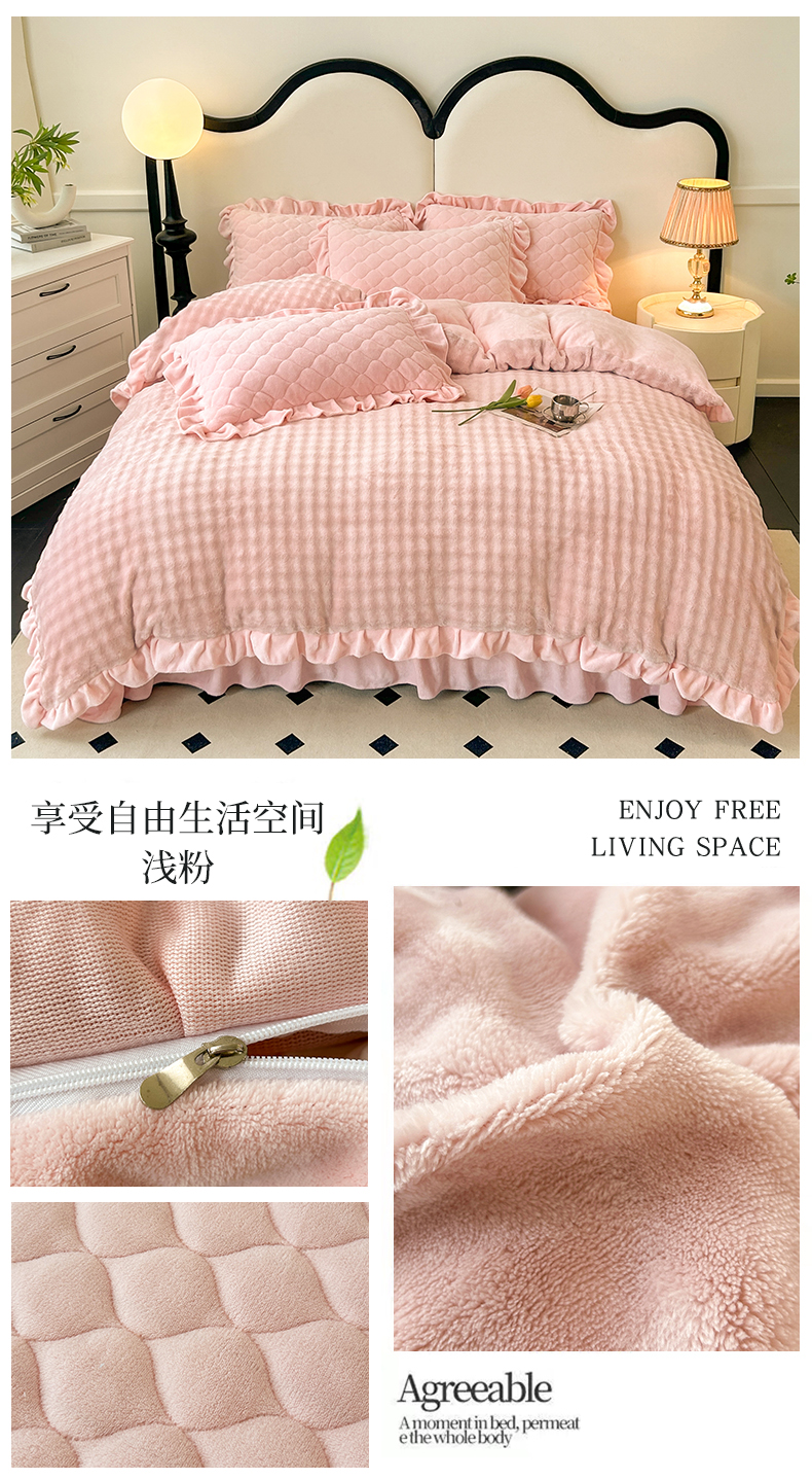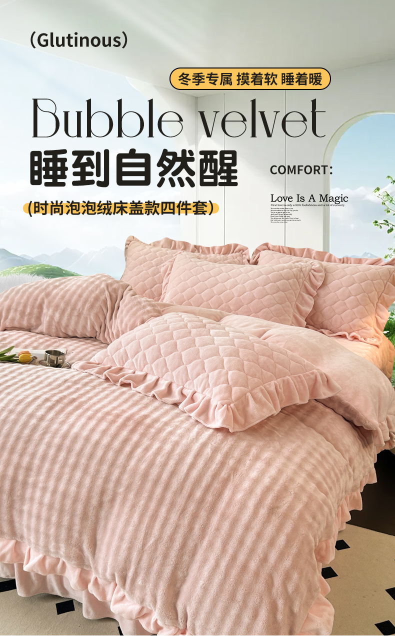 商品名称:屹成家纺 2024新款牛奶绒泡泡款床盖四件套 泡泡款-浅粉