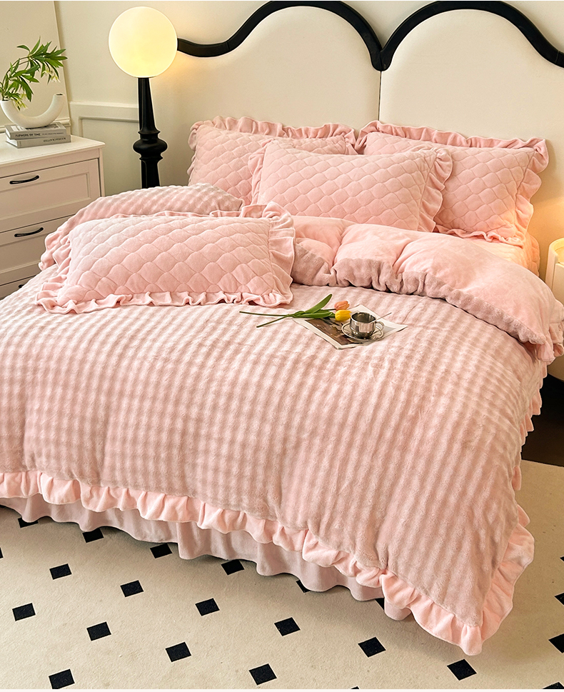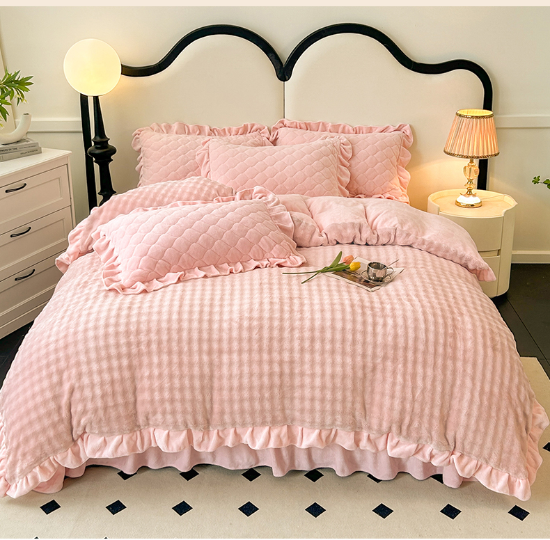 屹成家纺 2024新款牛奶绒泡泡款床盖四件套 泡泡款-浅粉