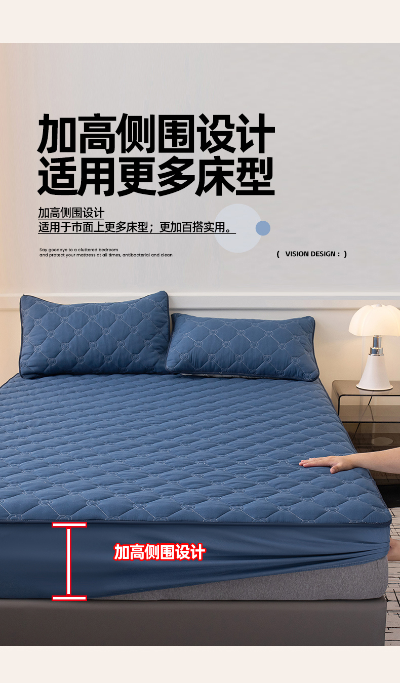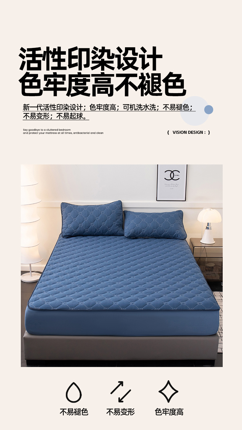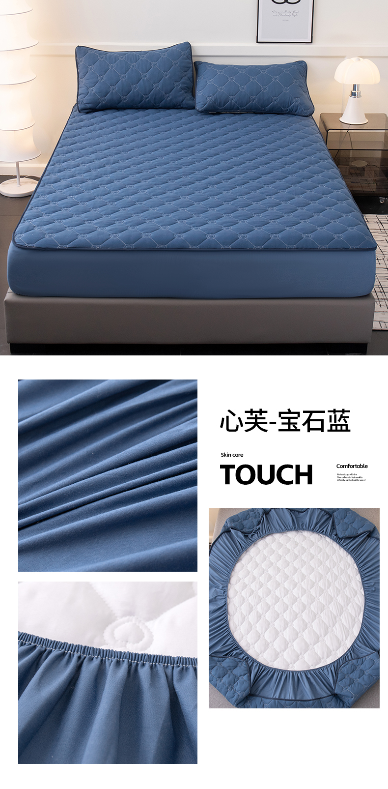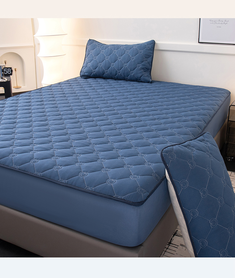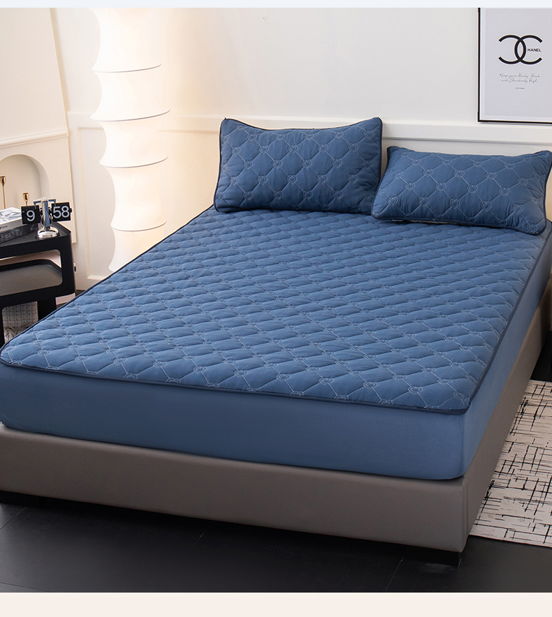 商品名称:暖季家纺 2025新款心芙系列夹棉防水床笠成人款 心芙-宝石蓝