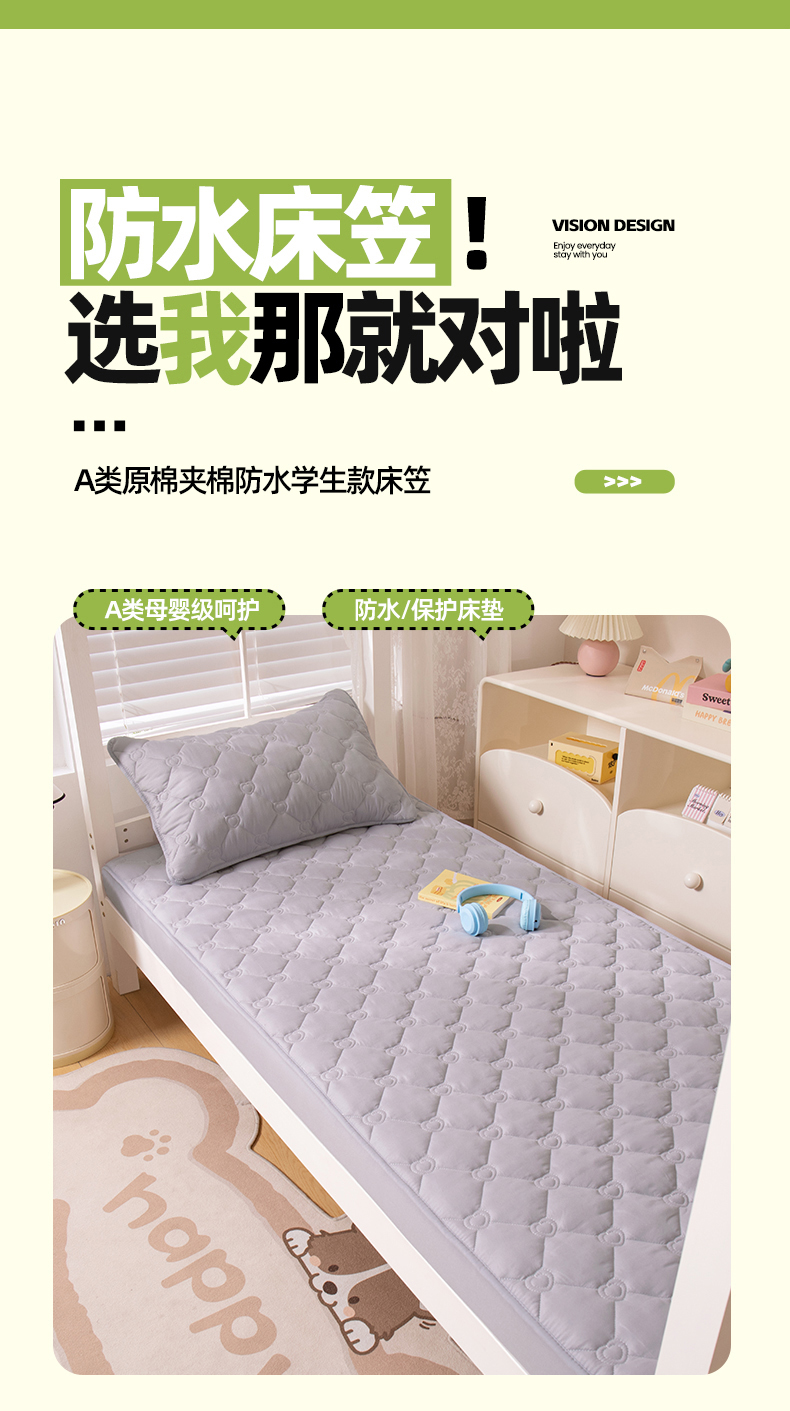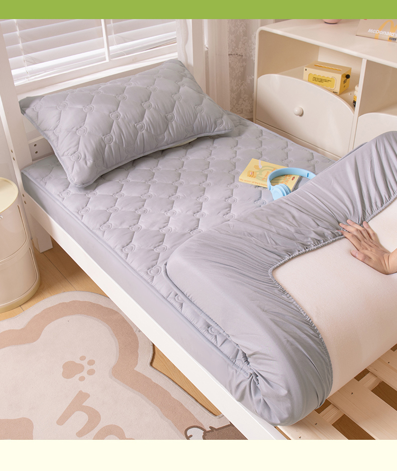 暖季家纺 2025新款心芙系列夹棉防水床笠学生款 心芙-浅灰
