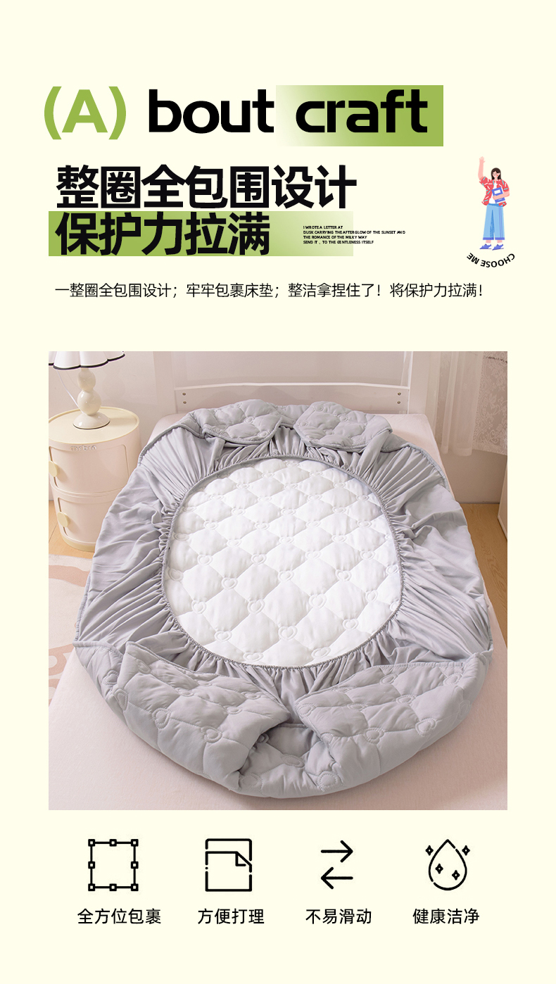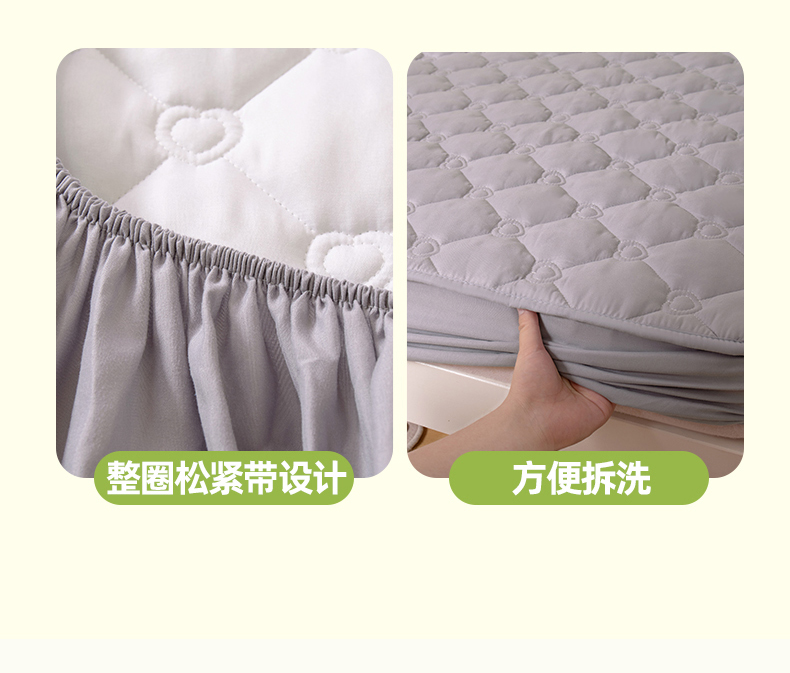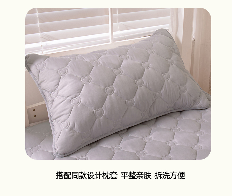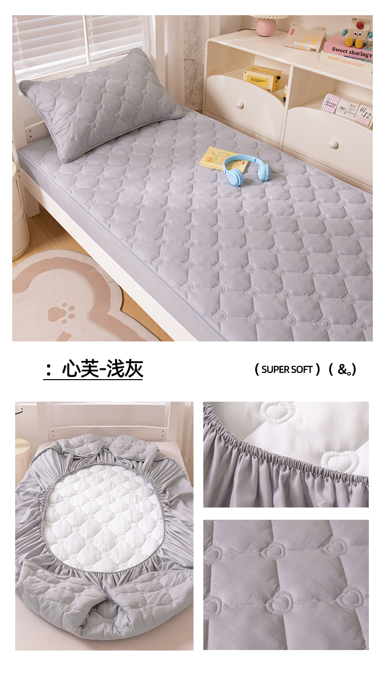商品名称:暖季家纺 2025新款心芙系列夹棉防水床笠学生款 心芙-浅灰