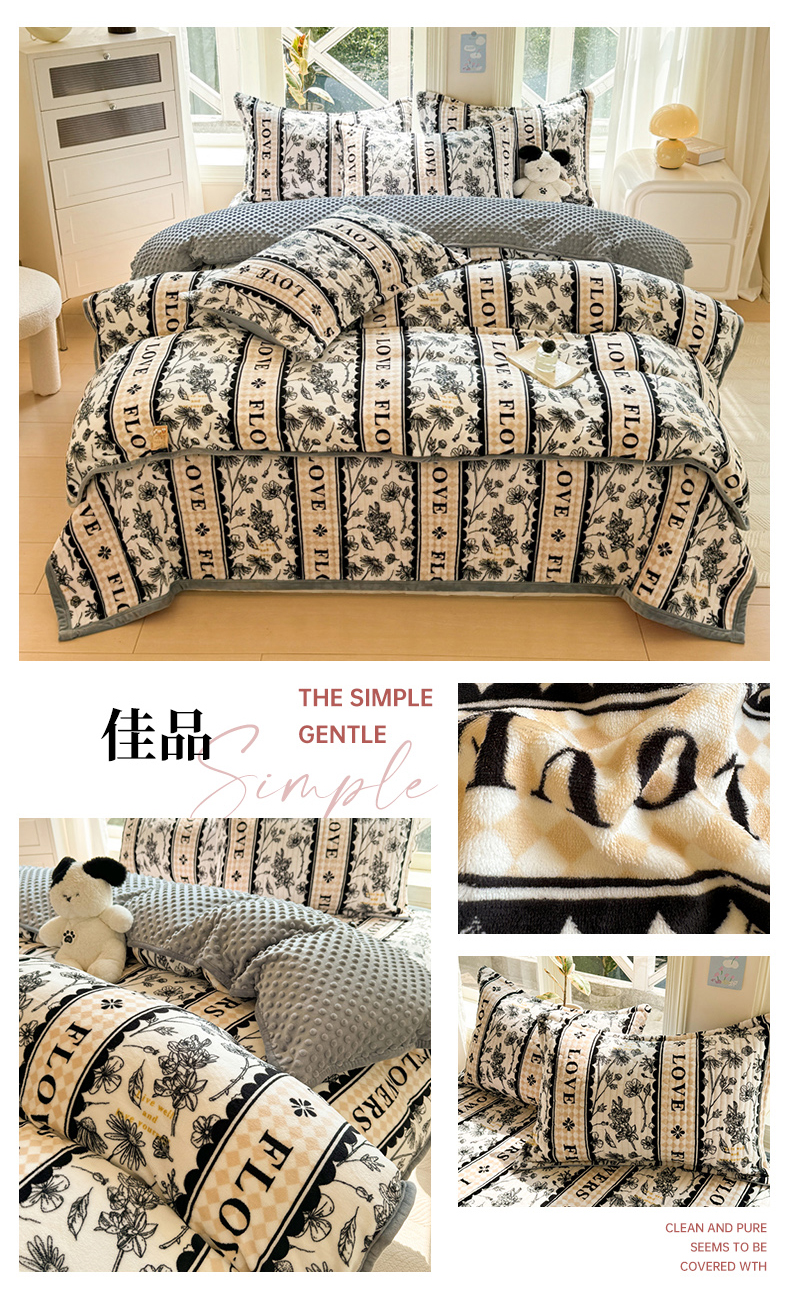 梦可莱家居 2024新款牛奶豆豆绒印花床盖四件套 佳品